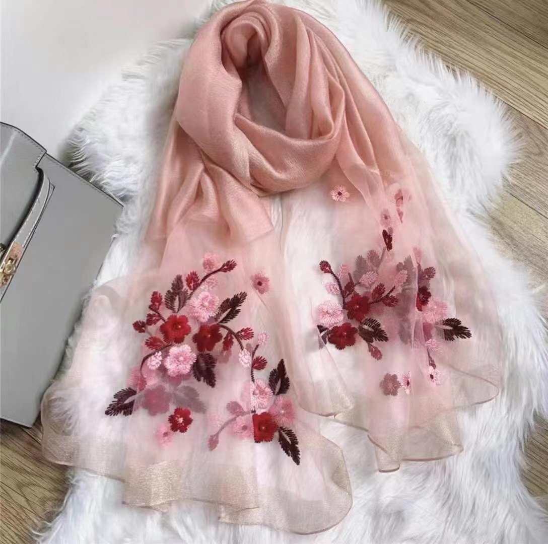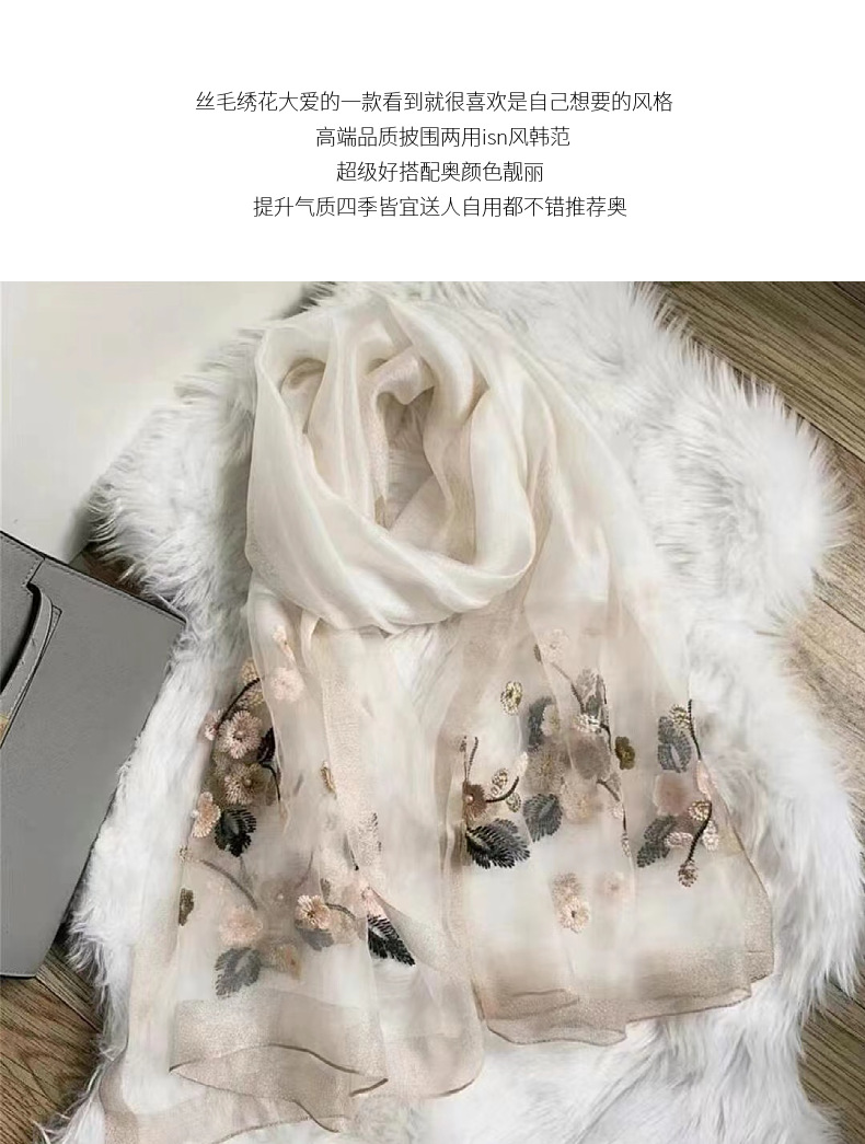 Шелковый шарф тутового дерева с вышивкой Летний Шелковый шерстяной платок невесты в этническом стиле Винтаж Мода Вышитый Шелковый шарф оптом