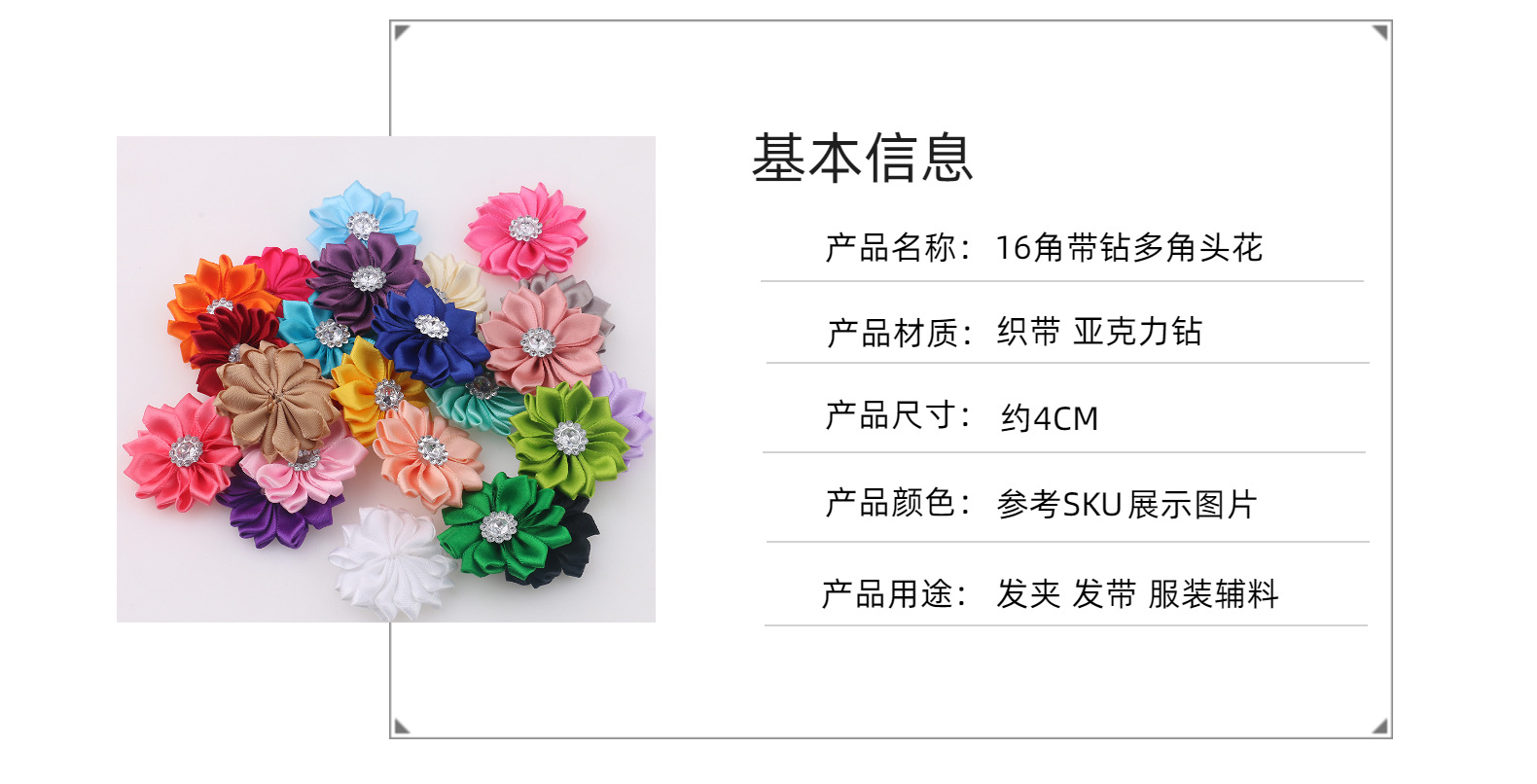 Полиэстер 16 угол ручной работы многоугольный цветок с бриллиантом Детские аксессуары для головных уборов DIY детская шпилька аксессуары для волос