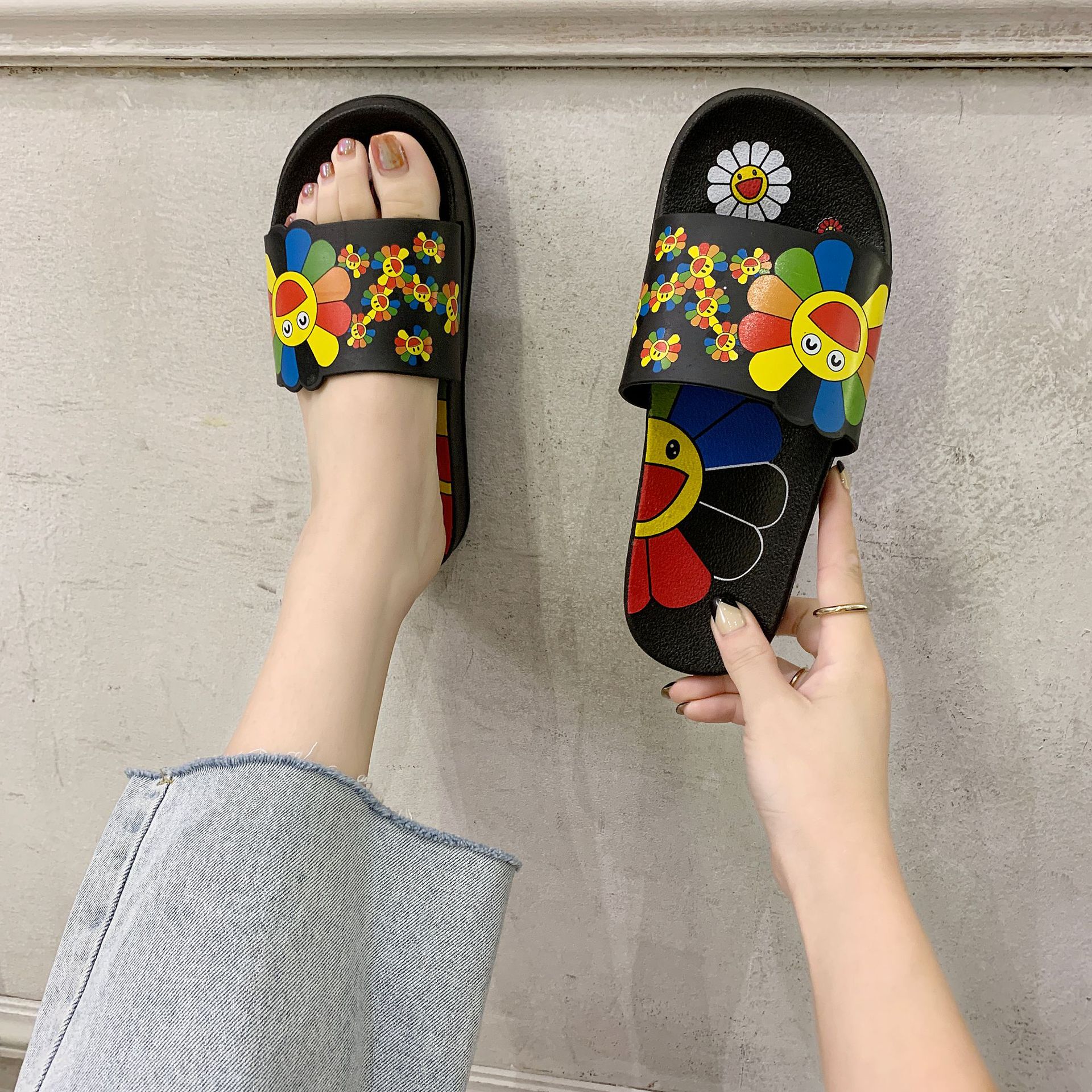Горячие тапочки с подсолнухом, женские летние домашние Нескользящие домашние тапочки для пар, верхняя одежда с мягкой подошвой, пластиковые внутренние Тапочки для ванной