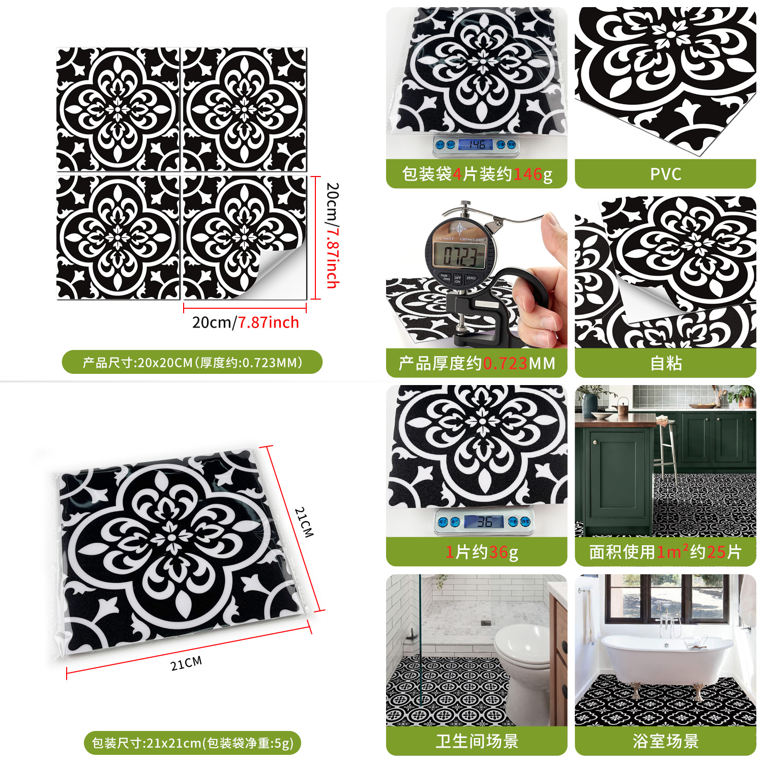 本款产品为单片出售,支持定制包装数量;默认尺寸为30CM*30CM;支持定制产品尺寸;您可以选择任意尺寸和片数包装自由组合,详询客服.