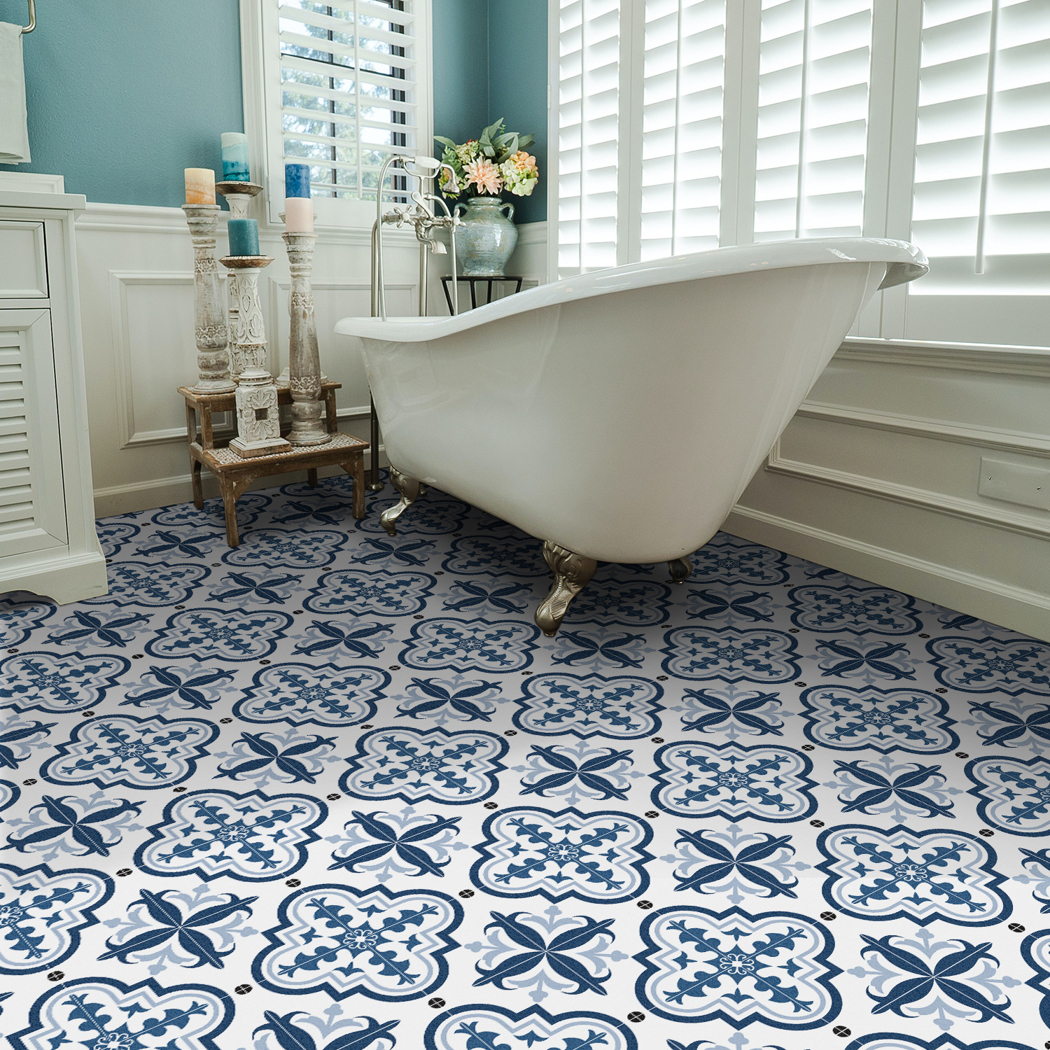 Португальская традиционная наклейка на пол с плиткой, кухня, ванная комната, украшение для пола, самоклеящаяся утолщенная матовая противоскользящая наклейка, водонепроницаемая