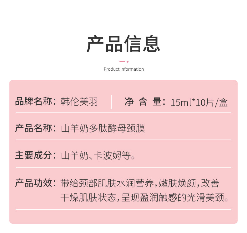 Han Lun Meiyu Маска для шеи с козьим молоком и дрожжами Улучшает увлажняющий уход за шеей Маска для шеи Патч-лифтинг и увлажняющая маска для шеи Оптовая продажа