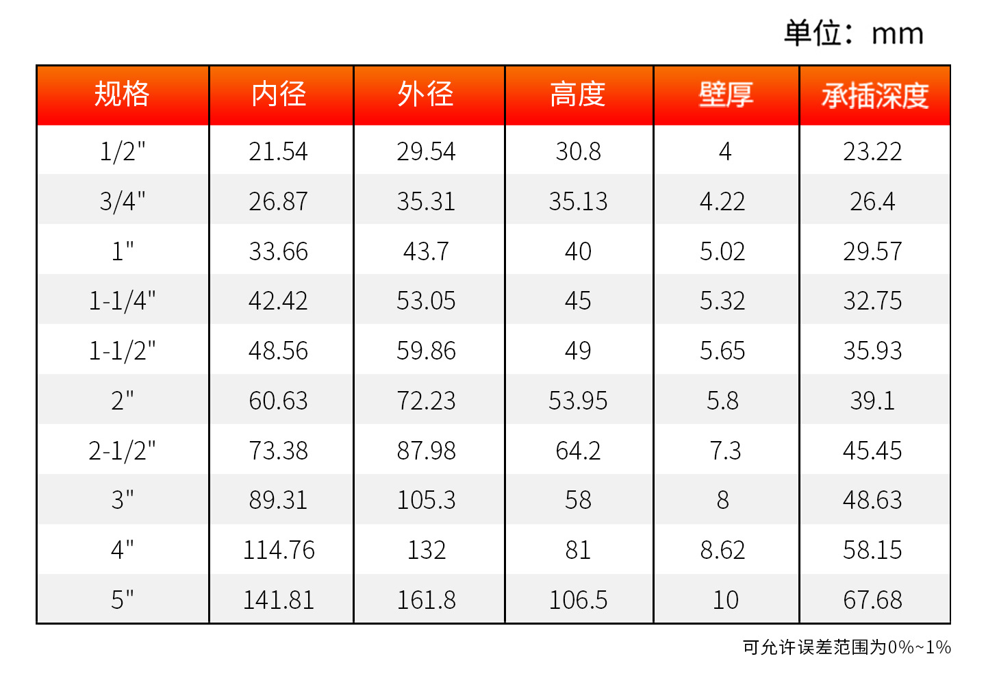 SCH80 1/2'' (внутренний диаметр 21,33 мм); SCH80 3/4'' (внутренний диаметр 26,65 мм); SCH80 1'' (внутренний диаметр 33,4 мм); SCH80 1-1/4'' (внутренний диаметр 42,2 мм); SCH80 1-1/2'' (внутренний диаметр 48,25 мм); SCH80 2'' (внутренний диаметр 60,3 мм); SCH80 2-1/2'' (внутренний диаметр 73 мм); SCH80 3'' (внутренний диаметр 88,9 мм); SCH80 4'' (ID 114.3 мм); SCH80 5'' (внутренний диаметр 141,3 мм); SCH80 6'' (внутренний диаметр 168,3 мм); SCH80 8'' (внутренний диаметр 219,08 мм)