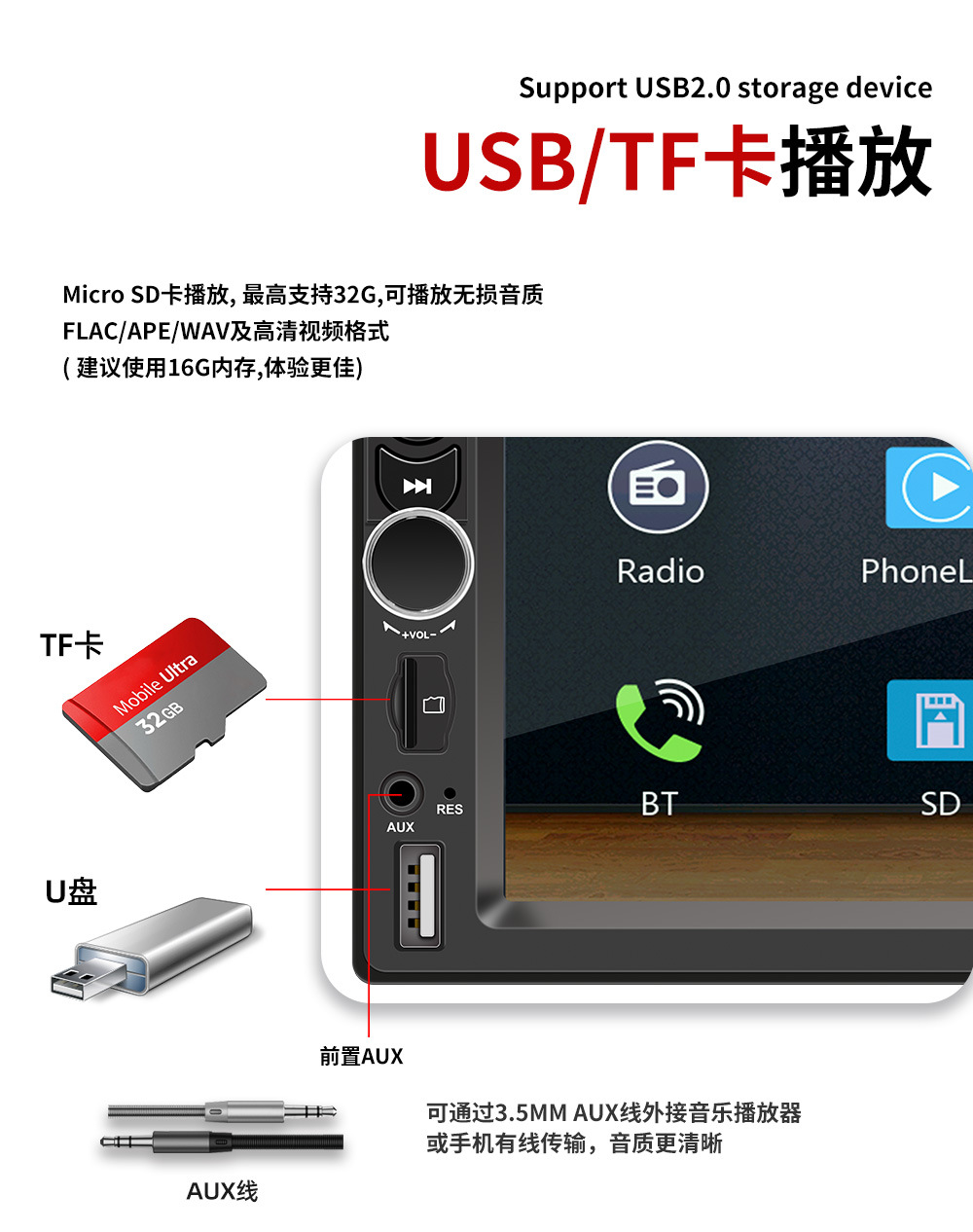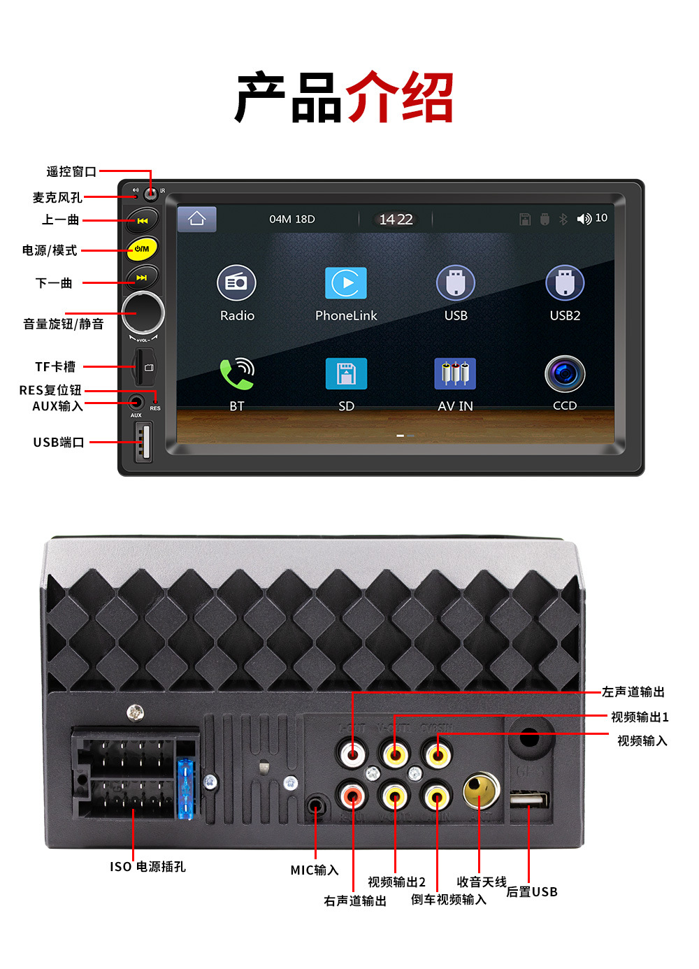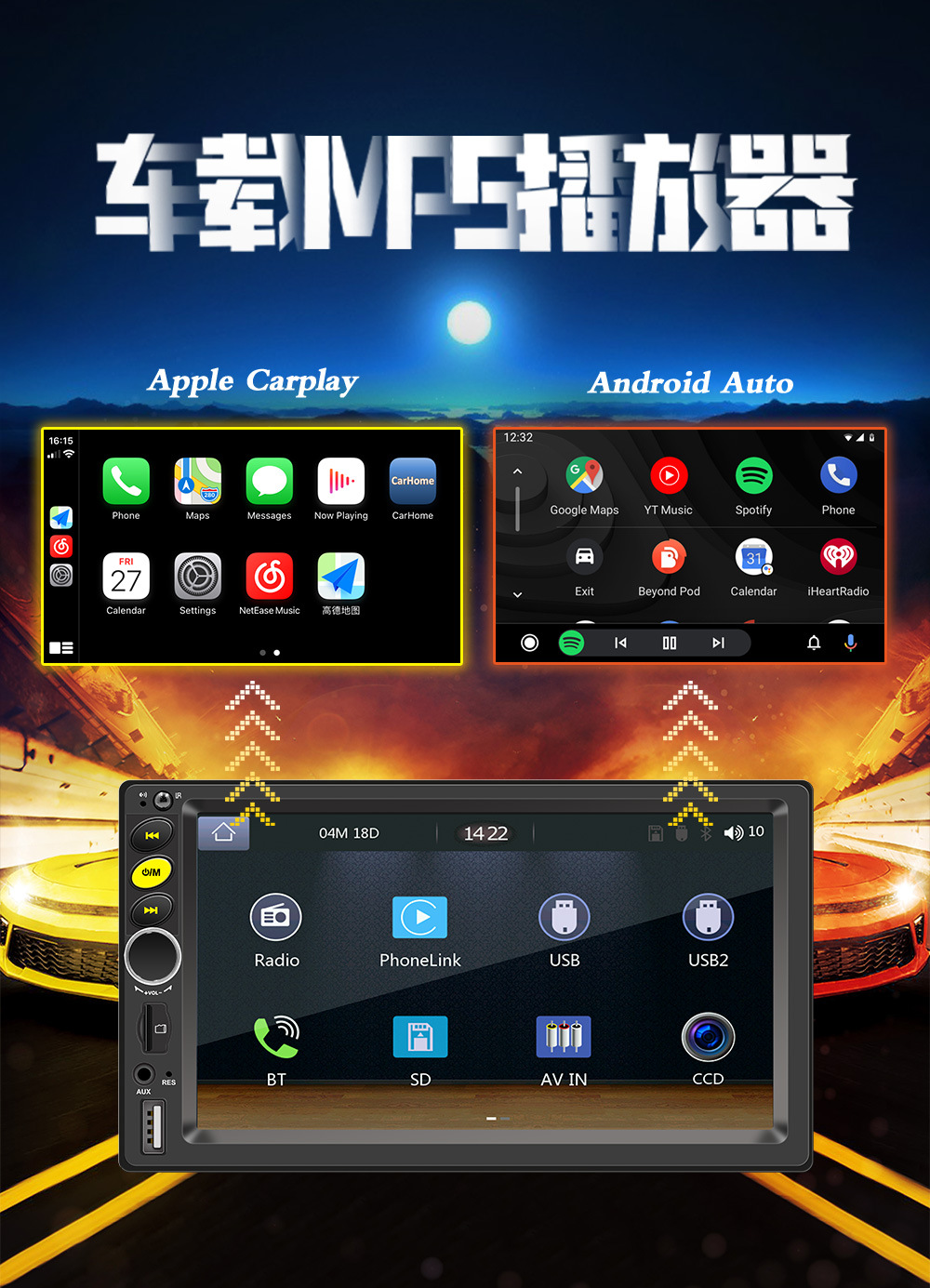 7-дюймовый HD сенсорный экран автомобильный Bluetooth MP5-плеер Apple CarPlay соединение мобильного телефона автомобильное радио