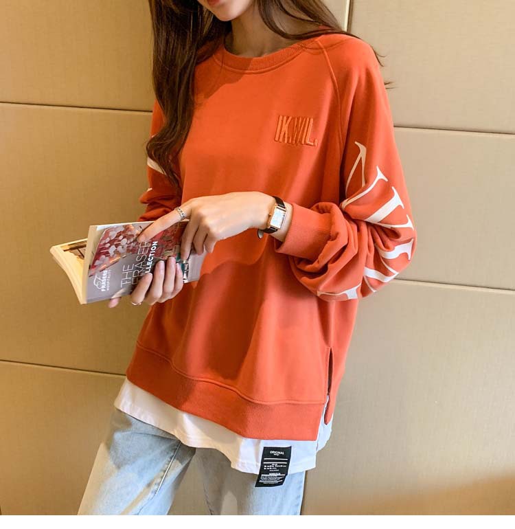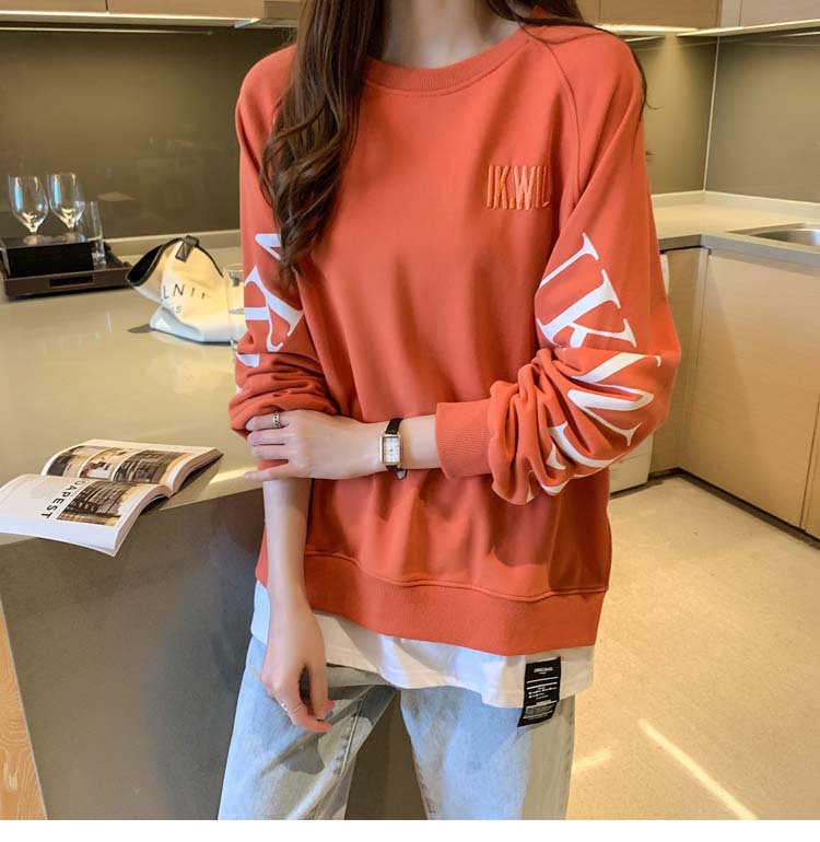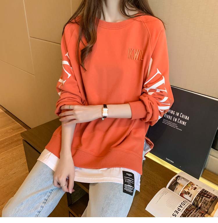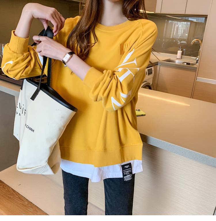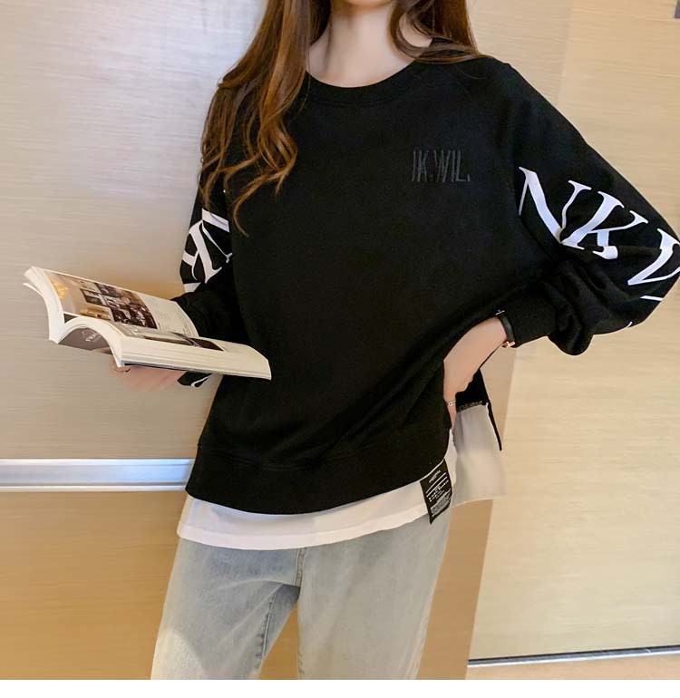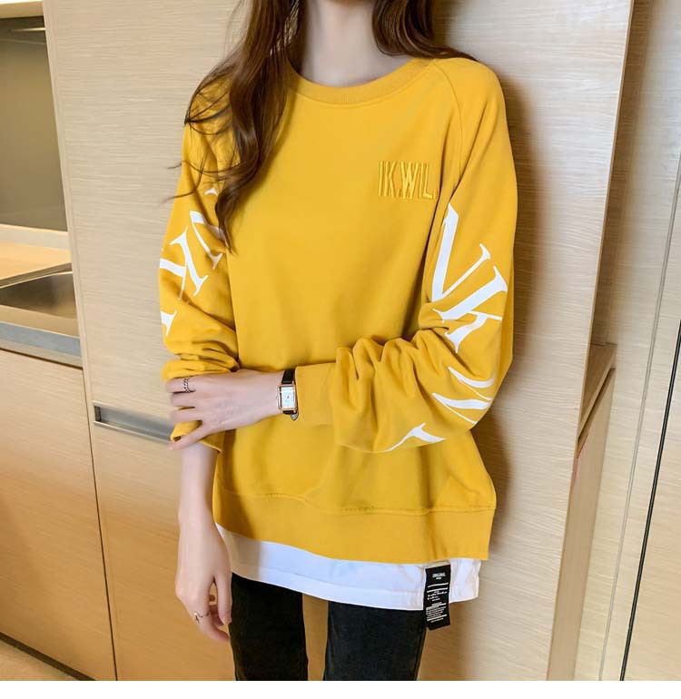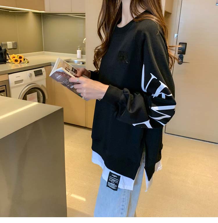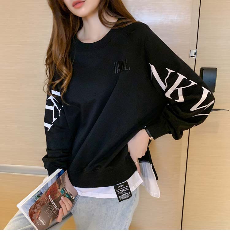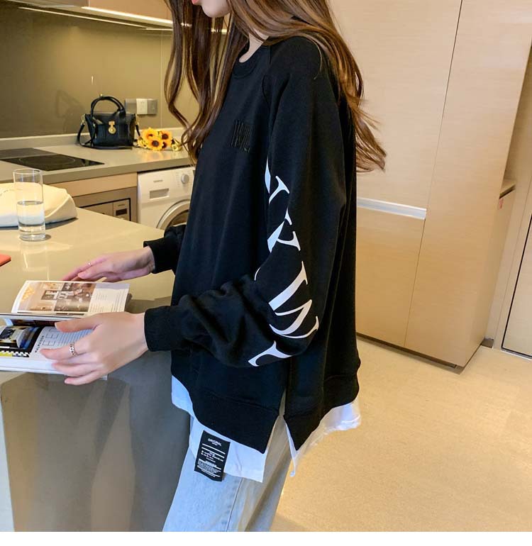 Новая трансграничная поддельная двухсекционная толстовка с длинными рукавами для женщин, свободная тонкая толстовка в корейском стиле, лето 2025, модная женская толстовка с круглым вырезом и надписью