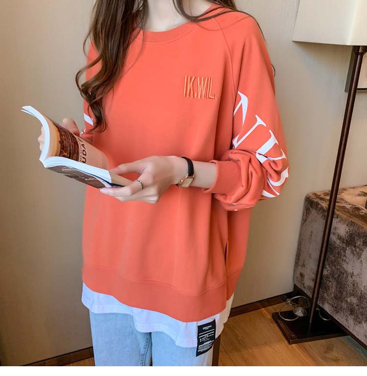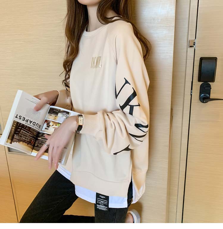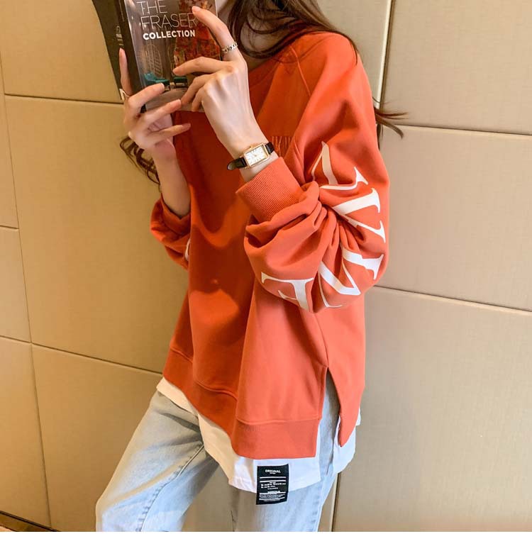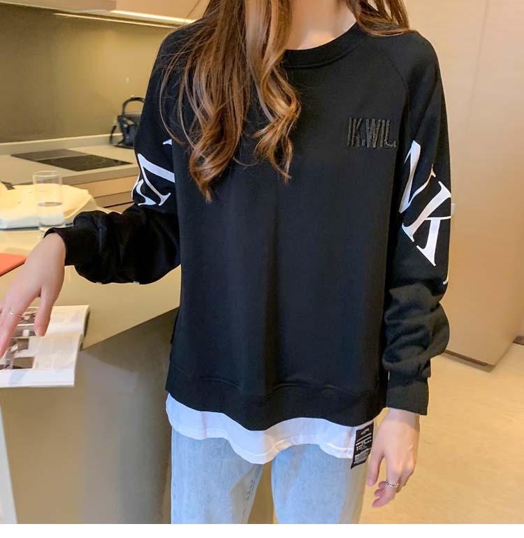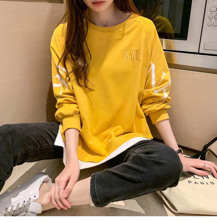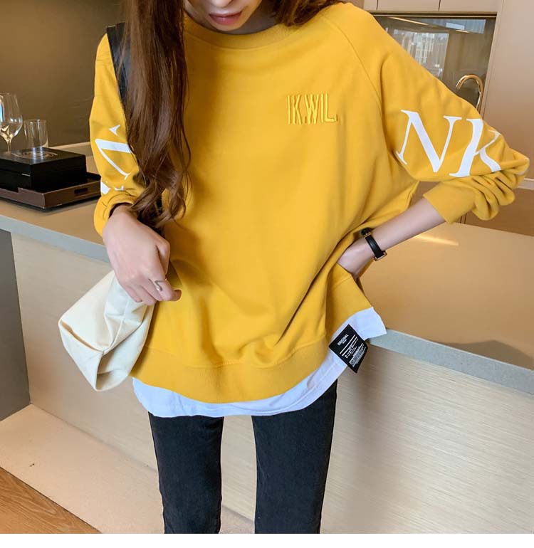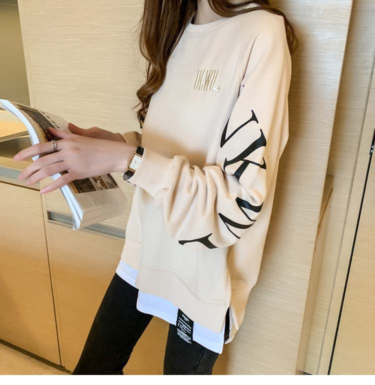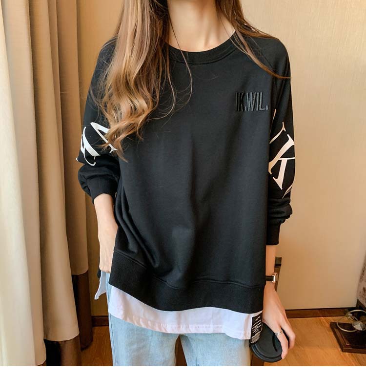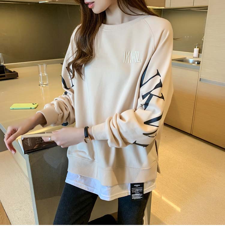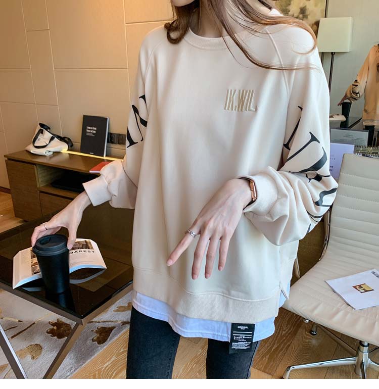 Новая трансграничная поддельная двухсекционная толстовка с длинными рукавами для женщин, свободная тонкая толстовка в корейском стиле, лето 2025, модная женская толстовка с круглым вырезом и надписью