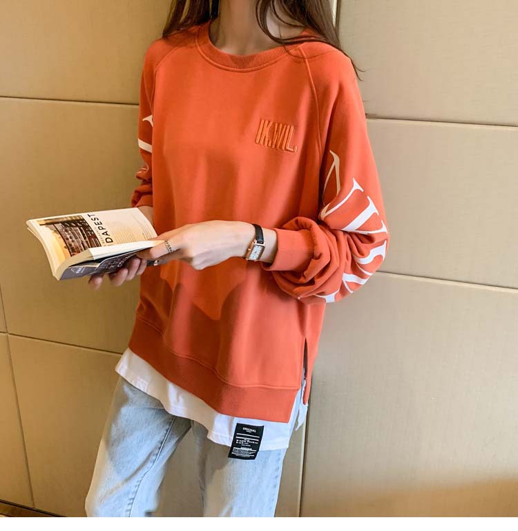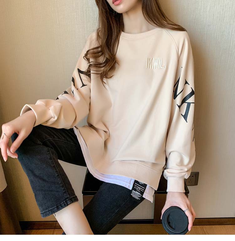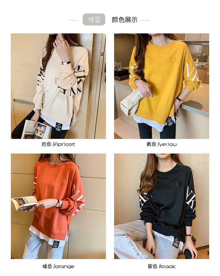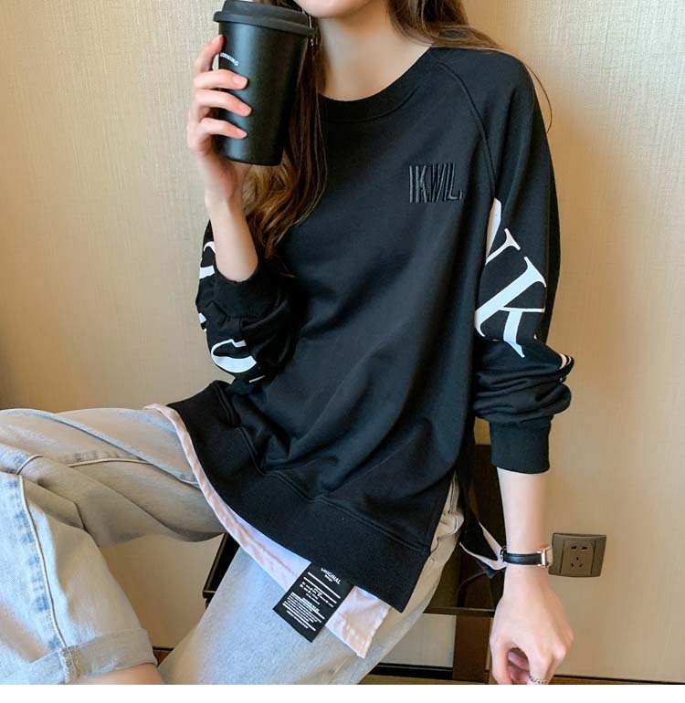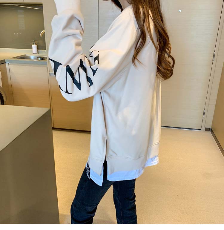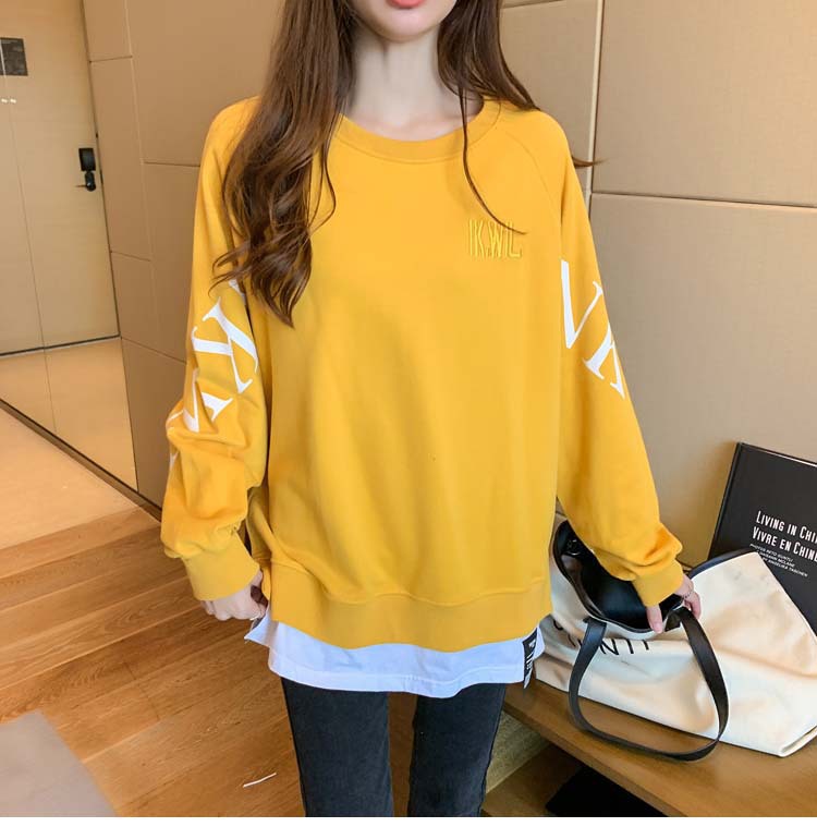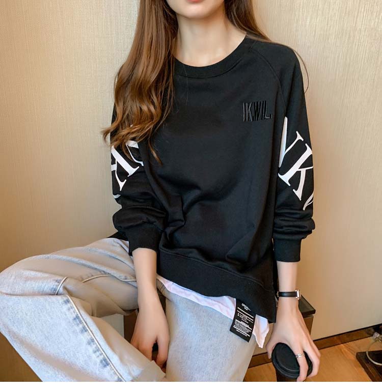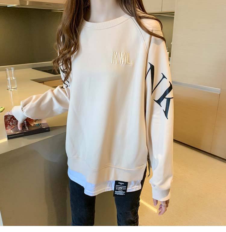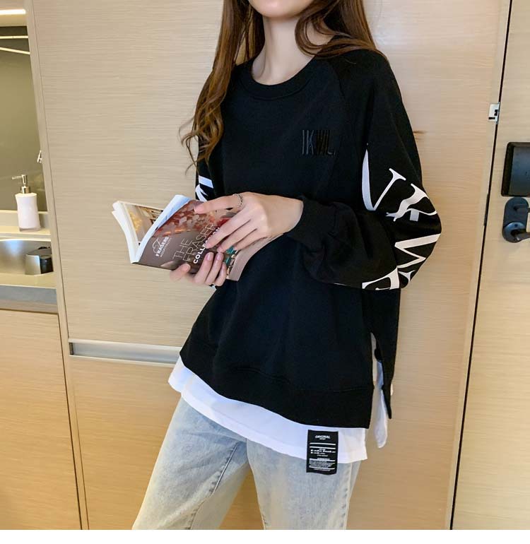 Новая трансграничная поддельная двухсекционная толстовка с длинными рукавами для женщин, свободная тонкая толстовка в корейском стиле, лето 2025, модная женская толстовка с круглым вырезом и надписью