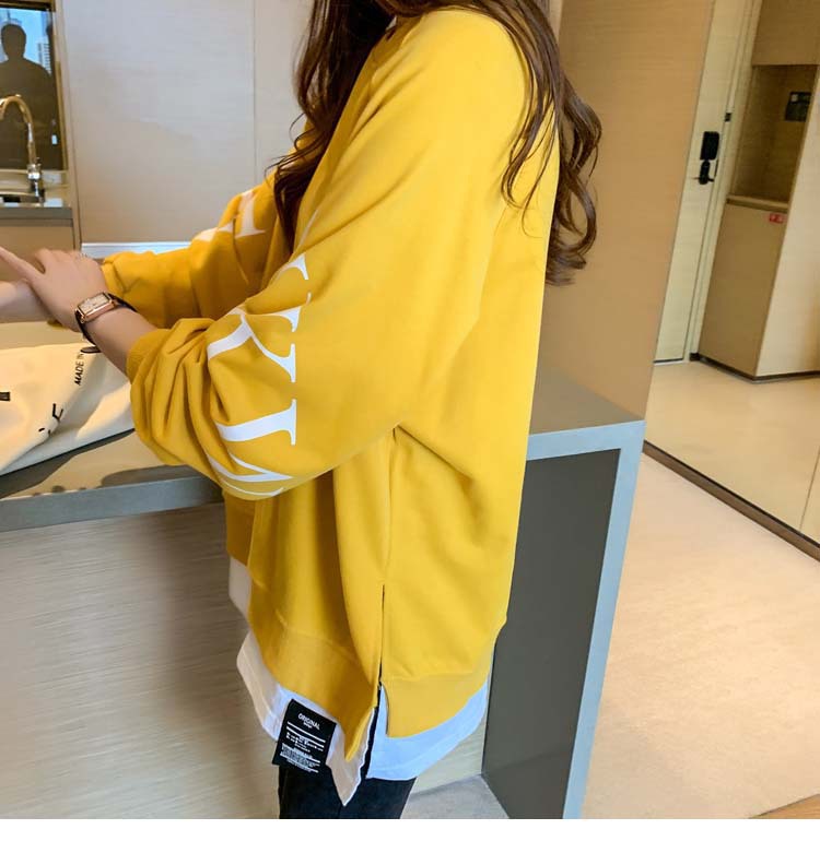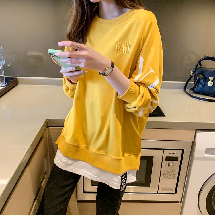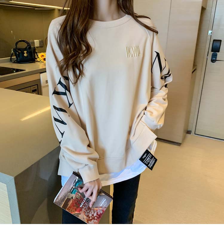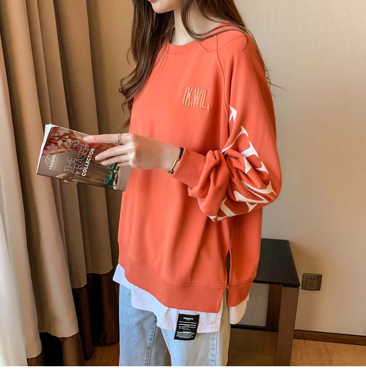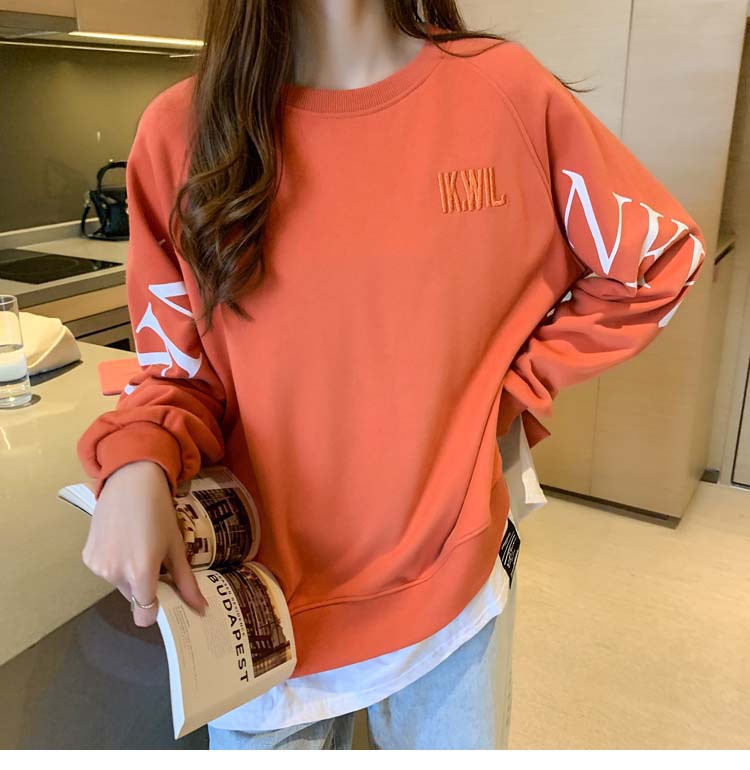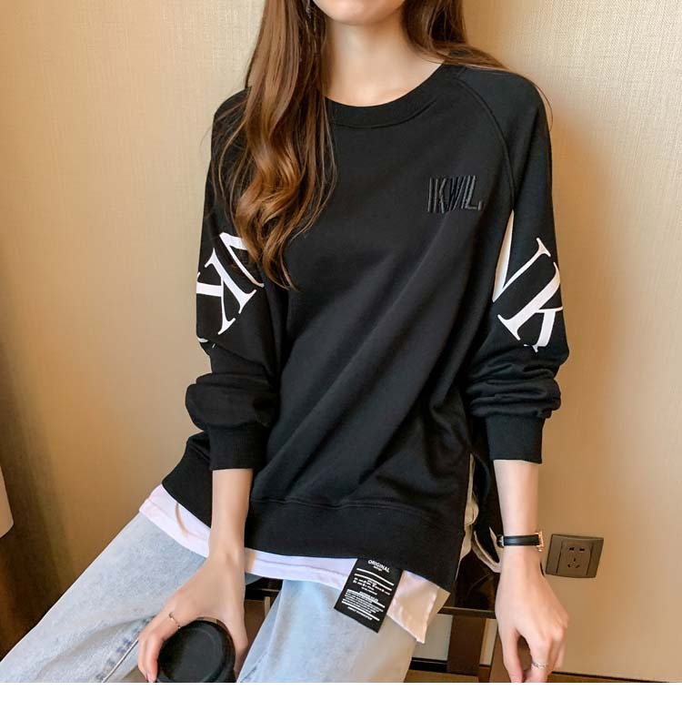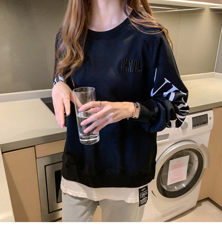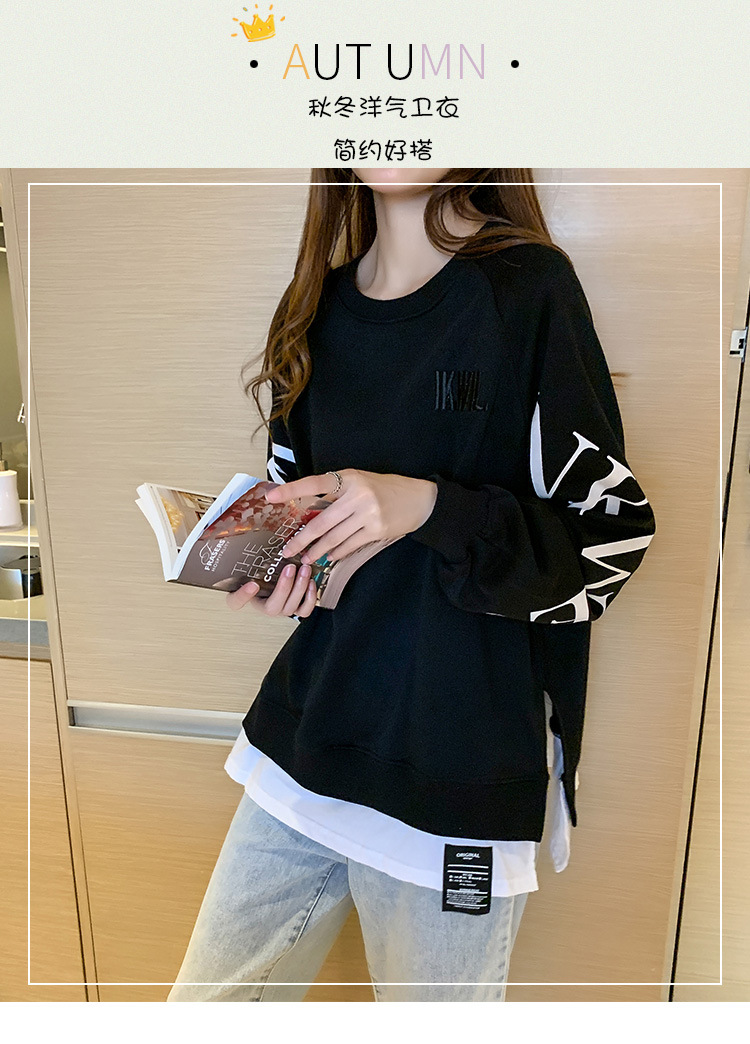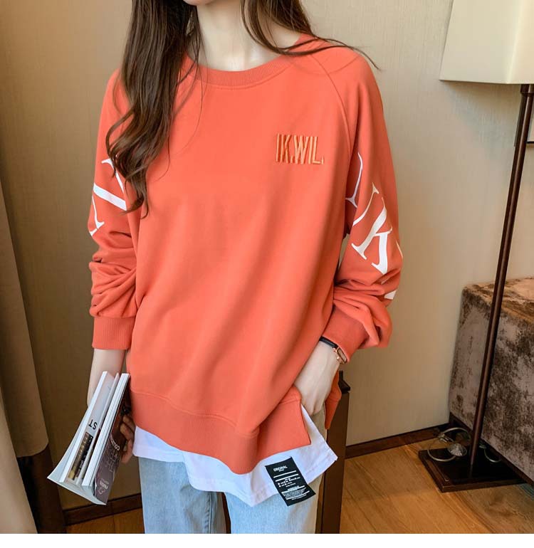 Новая трансграничная поддельная двухсекционная толстовка с длинными рукавами для женщин, свободная тонкая толстовка в корейском стиле, лето 2025, модная женская толстовка с круглым вырезом и надписью