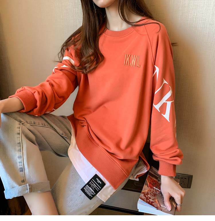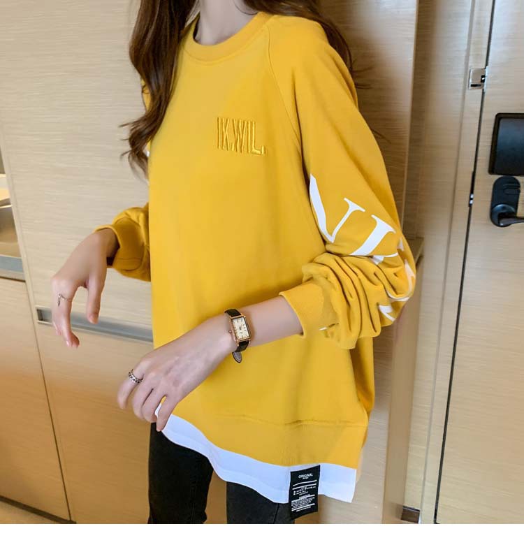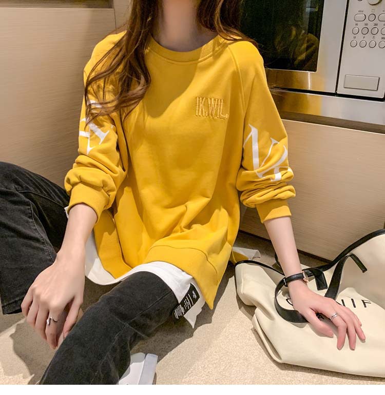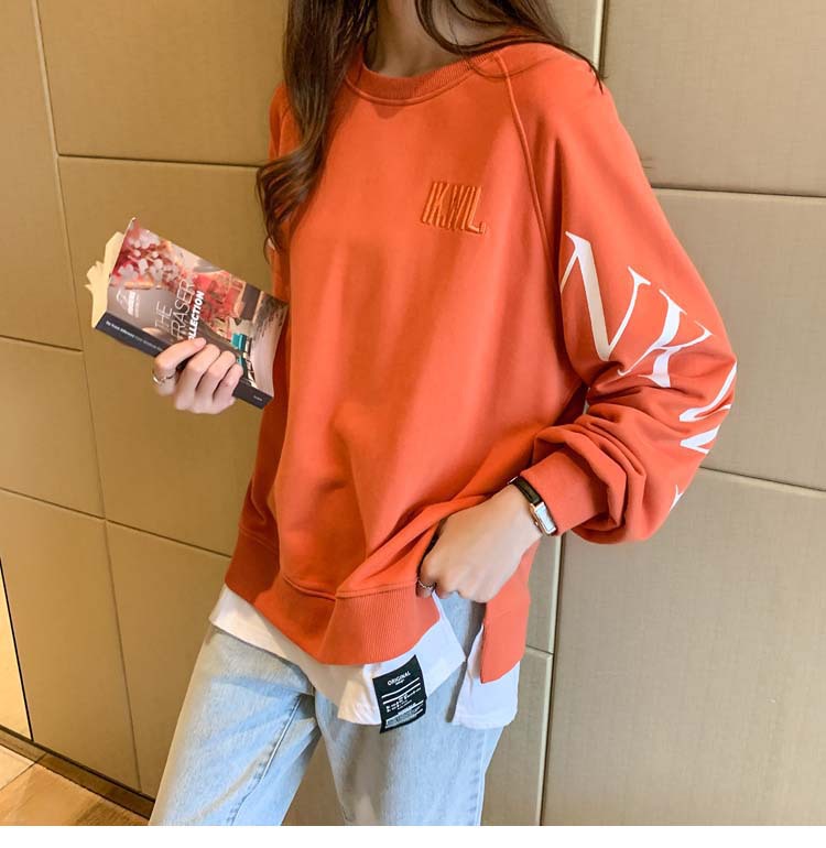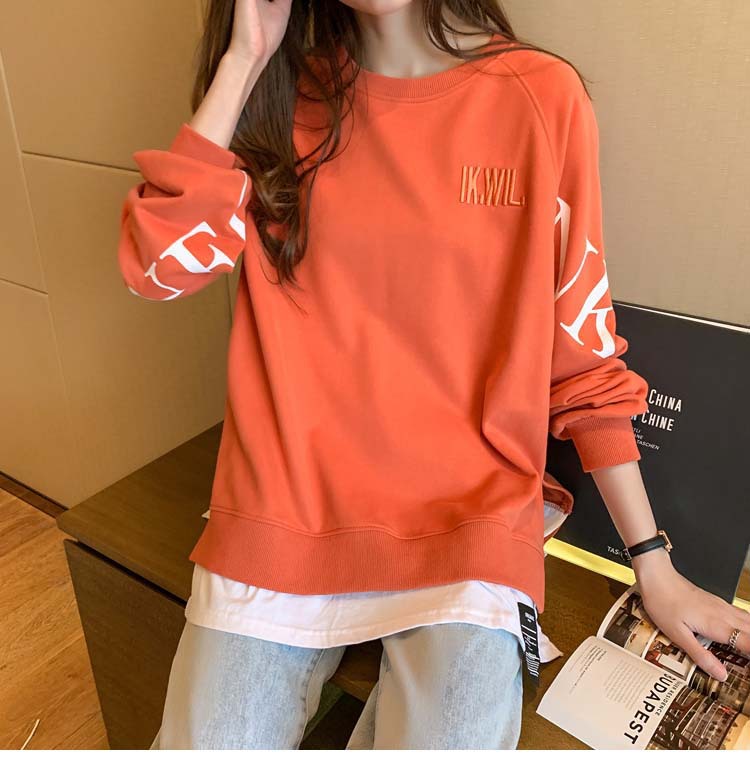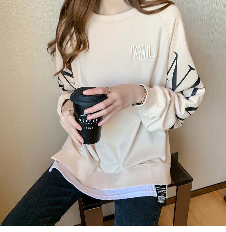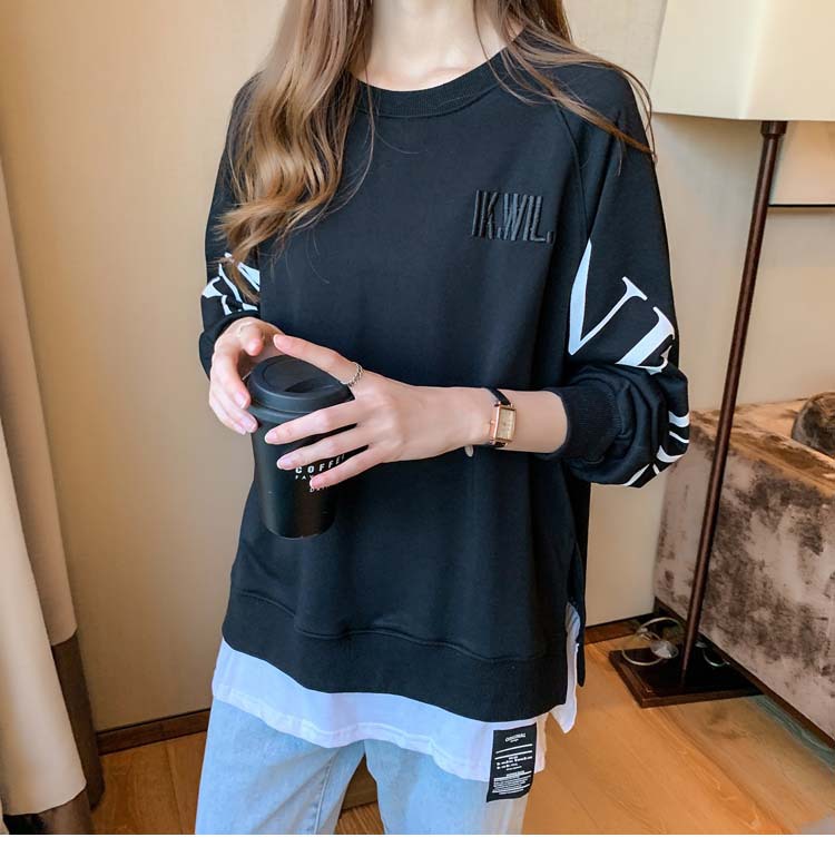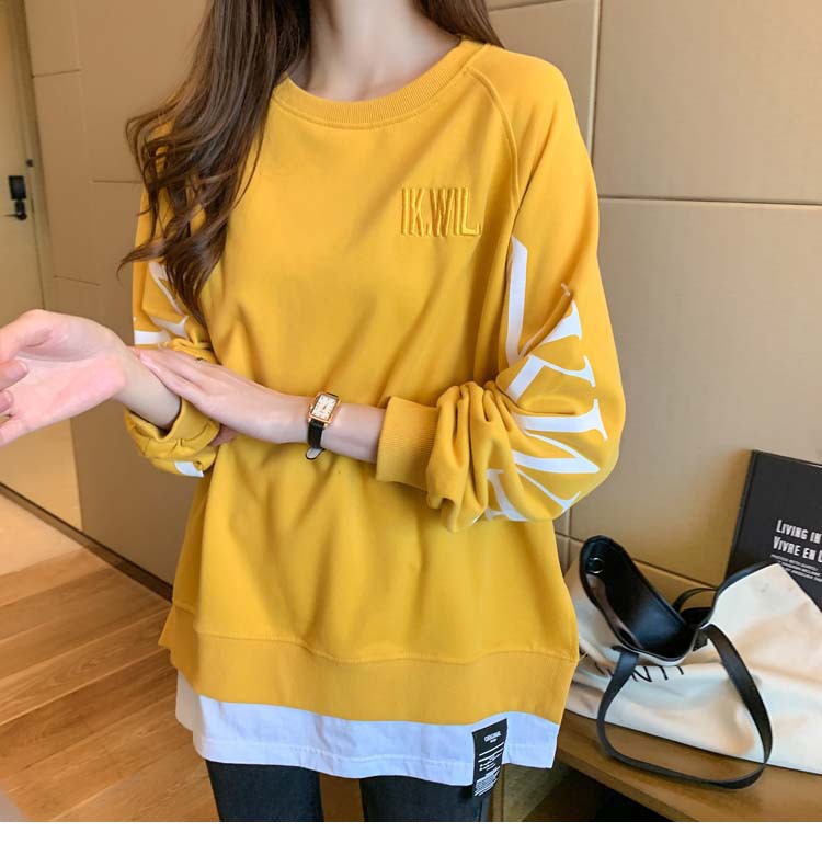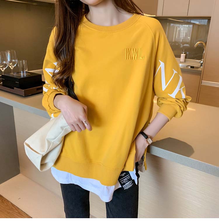 Новая трансграничная поддельная двухсекционная толстовка с длинными рукавами для женщин, свободная тонкая толстовка в корейском стиле, лето 2025, модная женская толстовка с круглым вырезом и надписью