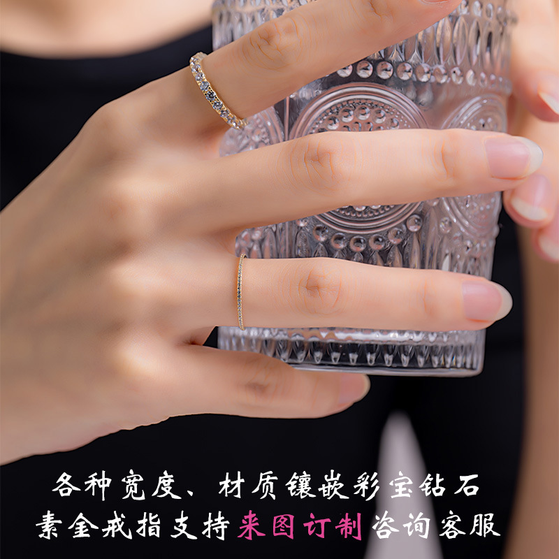 支持各种镶嵌彩宝钻石素金戒指来图定制