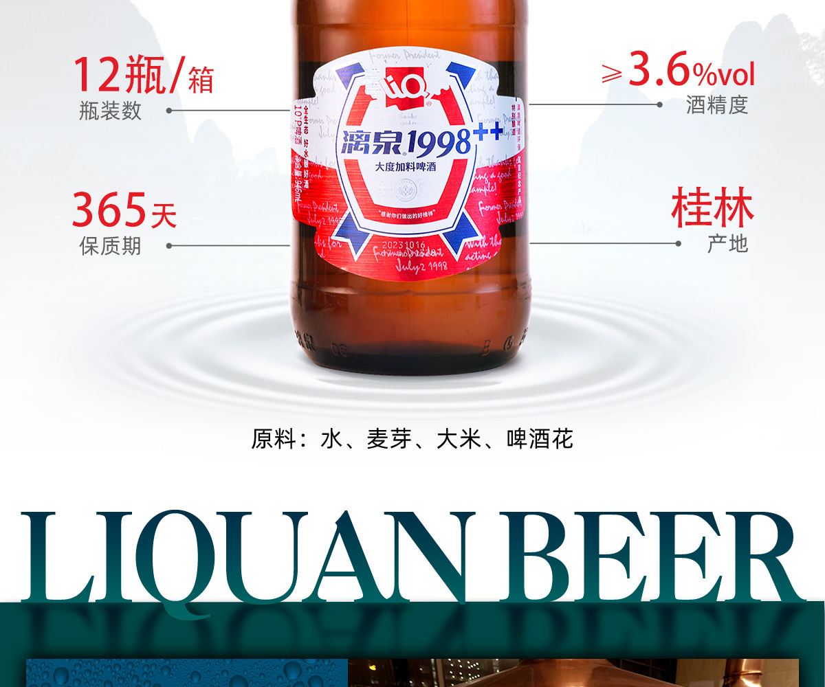 Гуанси специальное пиво Liquan 1998, полная коробка 946 мл * 12 Liquan Dadiu, минимум 10 коробок
