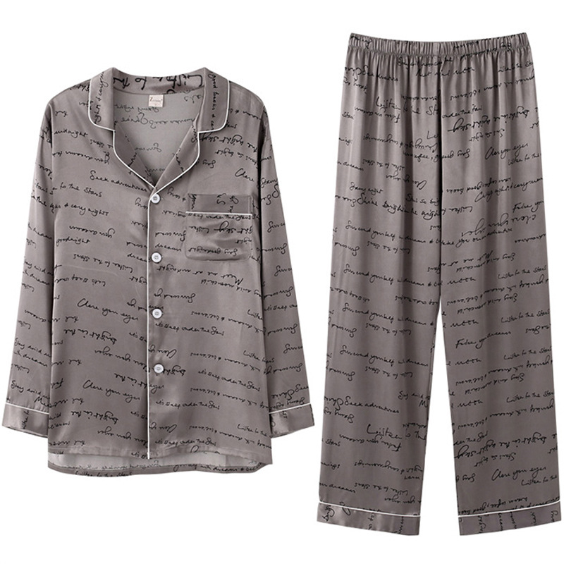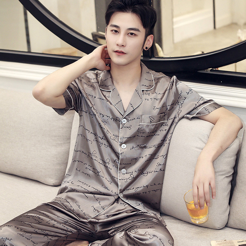 Классическая Пижама, Мужская весенне-осенняя летняя Домашняя одежда из ледяного шелка, мужская Тонкая шелковая одежда с длинным рукавом, летний мужской костюм больших размеров