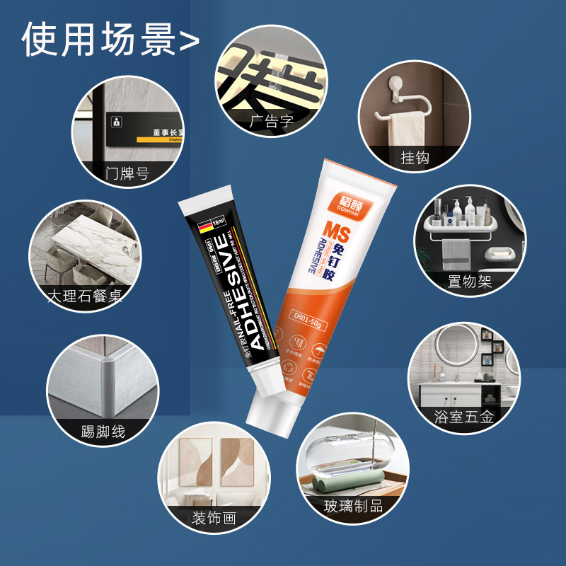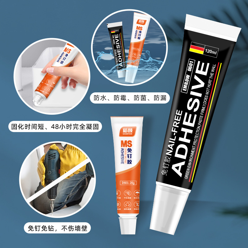 MS Маленькая быстросохнущая стойка для хранения клея без гвоздей Подвеска для ванной комнаты Универсальный клей без гвоздей Прочный прозрачный клей без гвоздей