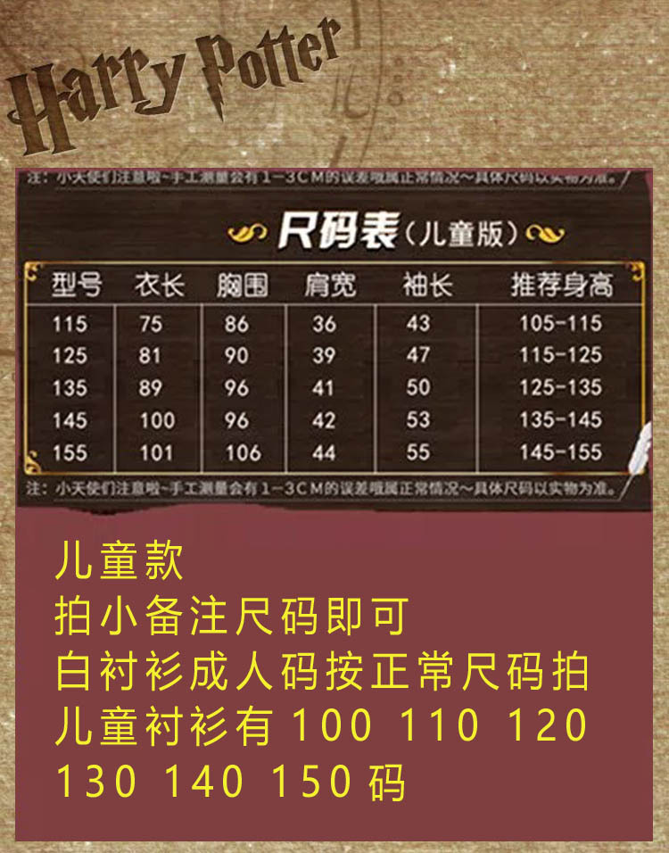 Гриффиндорская накидка красная; Слейтер (зеленый); Пуховка (желтый); Когтевран (темно-синий); Гриффиндор Танк Свитер; Слизерин жилет свитер; Когтевран жилет свитер; Hudge Патч Жилет Свитер; Гриффиндорский шарф свободного размера; Слизерин Шарф свободного размера; Когтевран Шарф свободного размера; Шарф Hufflepudge свободного размера; Шляпа Ведьмы; Гриффиндорский галстук свободного размера; Слизерин галстук свободного размера; Hufflepudge галстук свободного размера; Галстук Когтевран свободного размера; Ни света, ни звука волшебной палочки; Светящийся звук Волшебная палочка; Мужская рубашка с длинным рукавом; Рубашка женская с длинными рукавами; Серая юбка; Черные брюки; Колье; Значок; Оправа для очков свободного размера