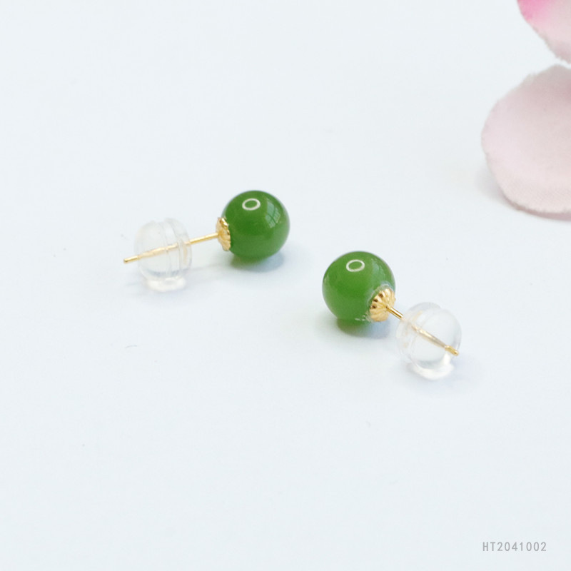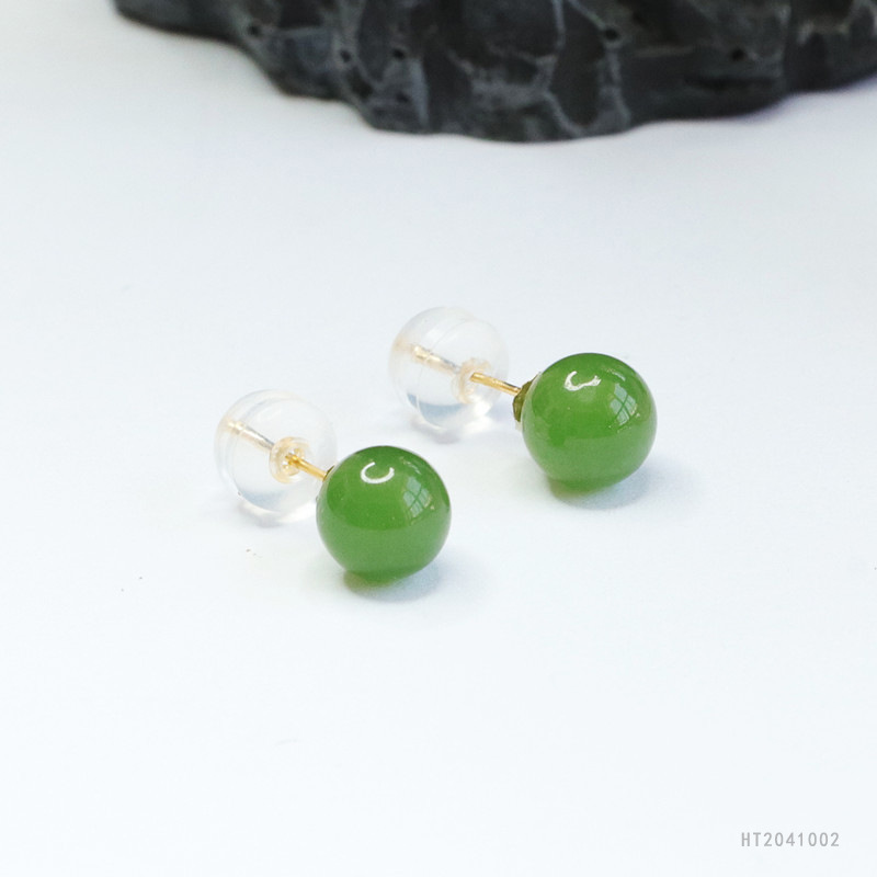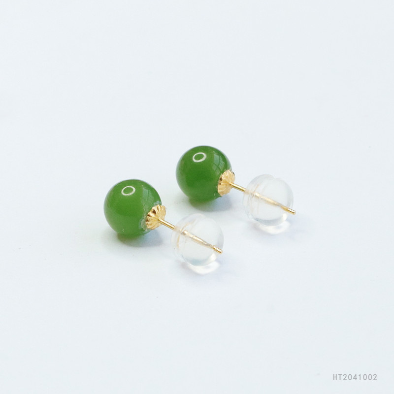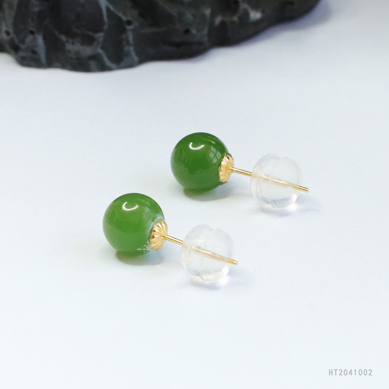 Круглые бусины из натурального нефрита Хэтянь, яшмы Хуан Ю, серьги с инкрустацией из 18-каратного золота, зеленые ювелирные изделия из шпината, дропшиппинг HT2041002.