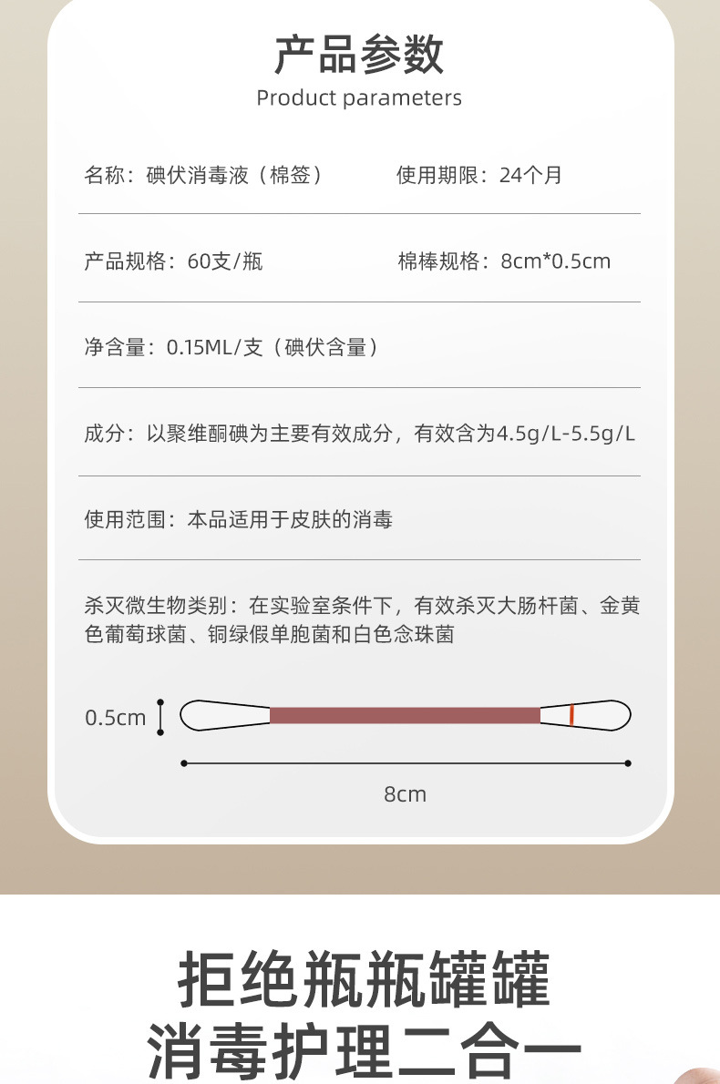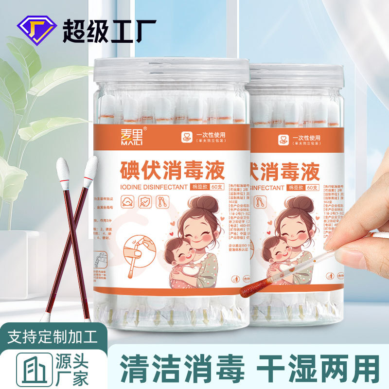 Оптовая продажа 60 одноразовых тампонов с йодофором для дезинфекции и стерилизации кожи, ломающихся дезинфицирующих ватных тампонов для медицинского применения.