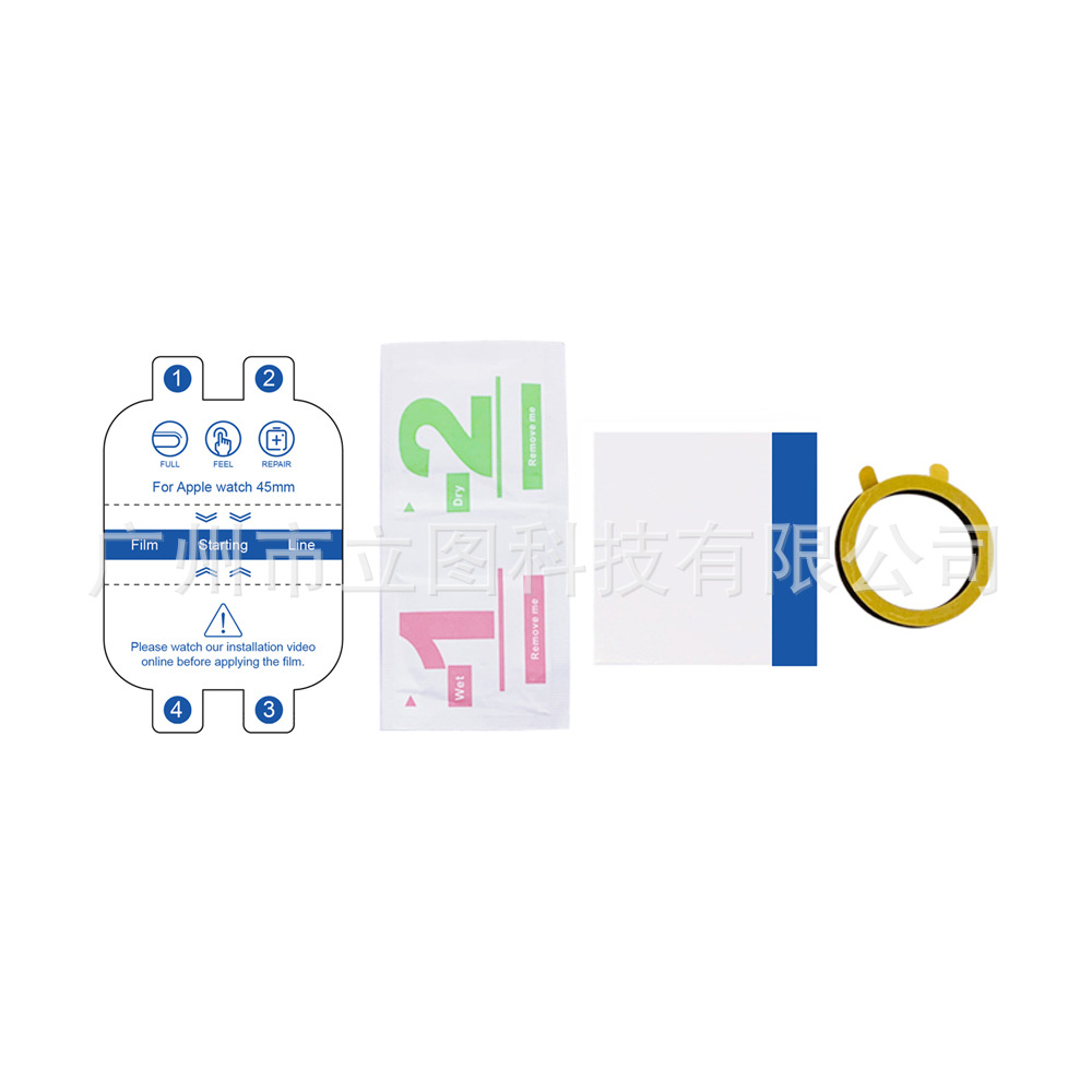 裸片标准配置:水凝膜+酒精包+贴膜配件刮卡/固定胶圈(如下图)