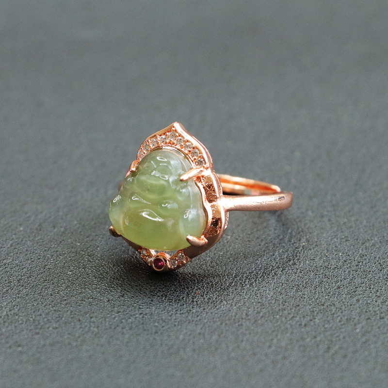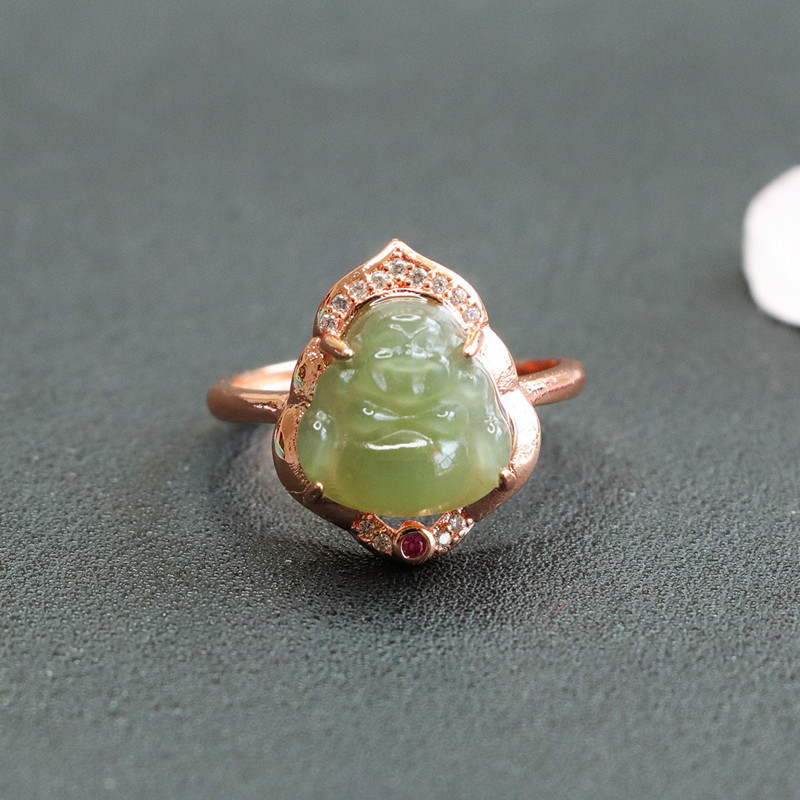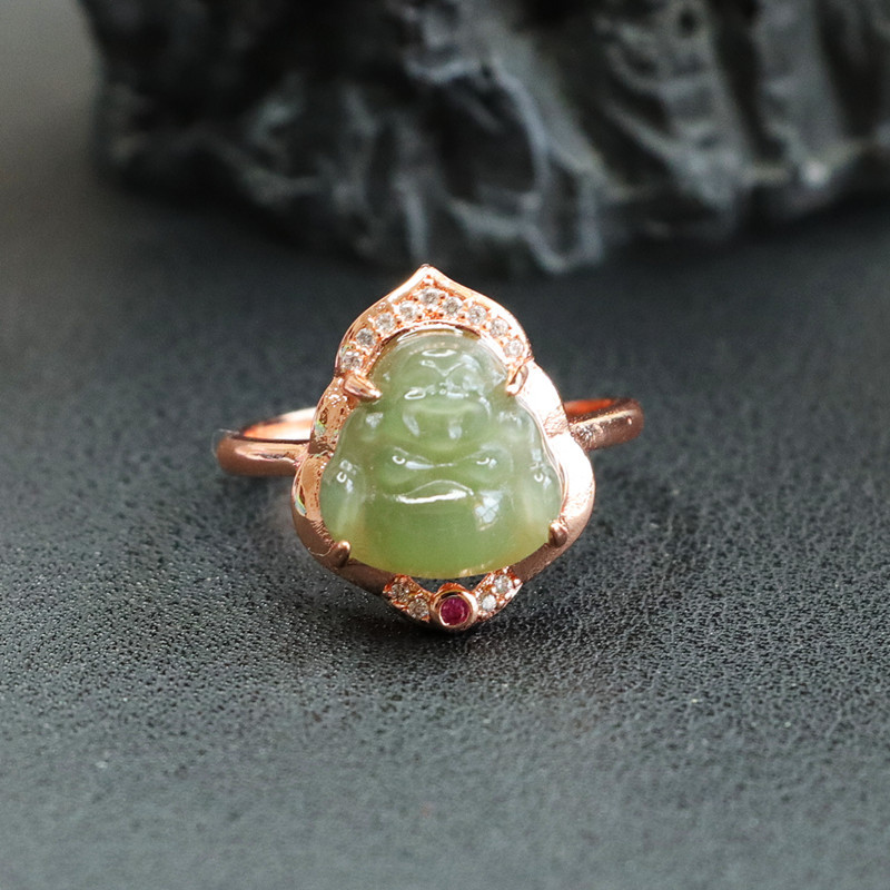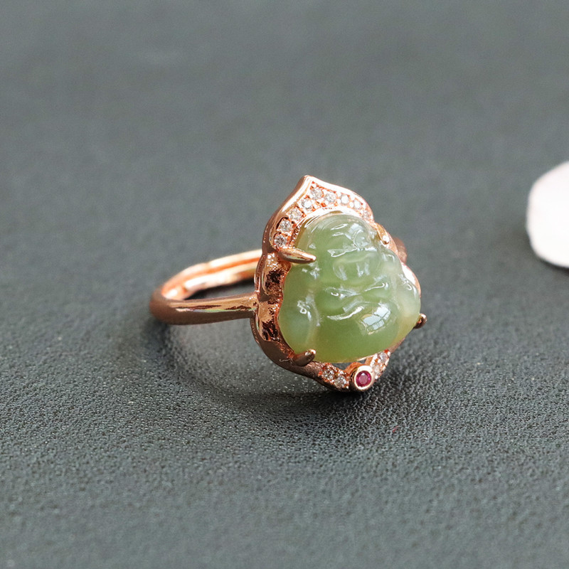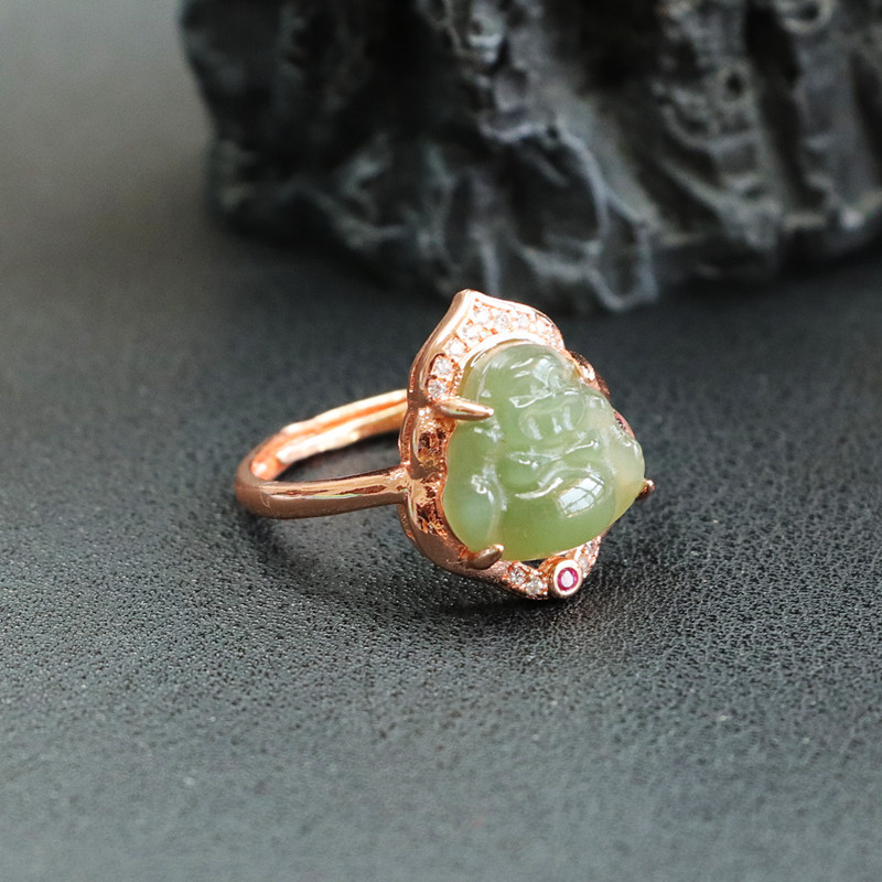 Jiyu натуральный Хотан Нефритовое озеро вода зеленый Будда кольцо Майтрейя Будда кольцо ювелирные изделия живые 2041503