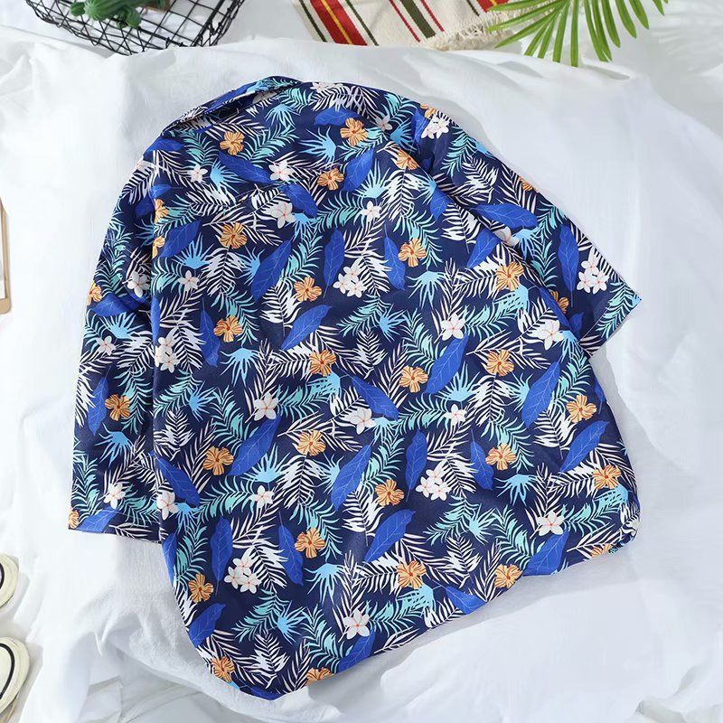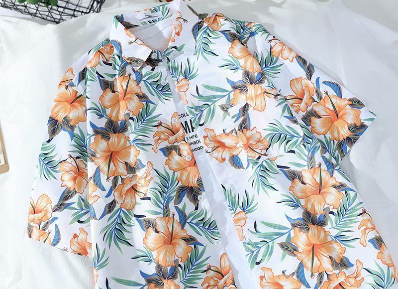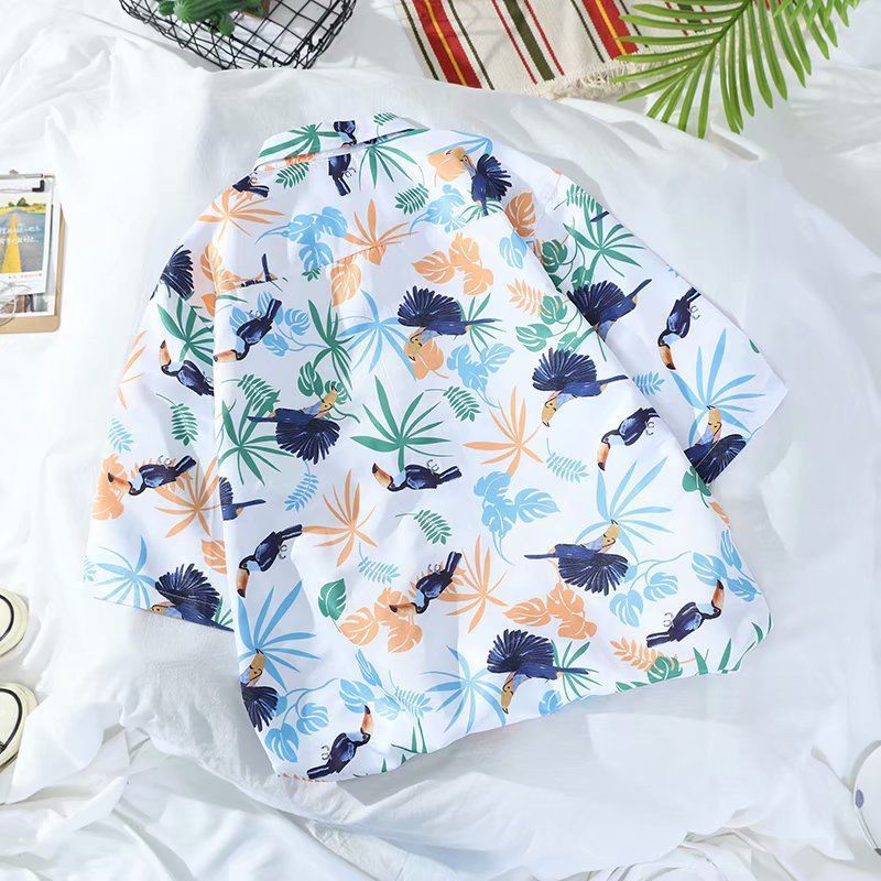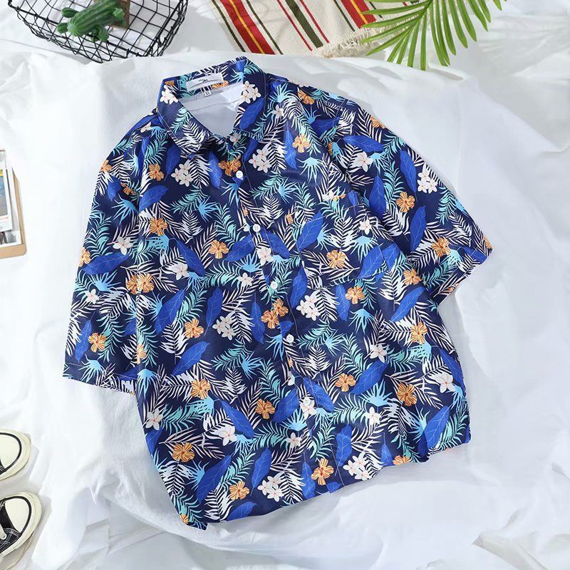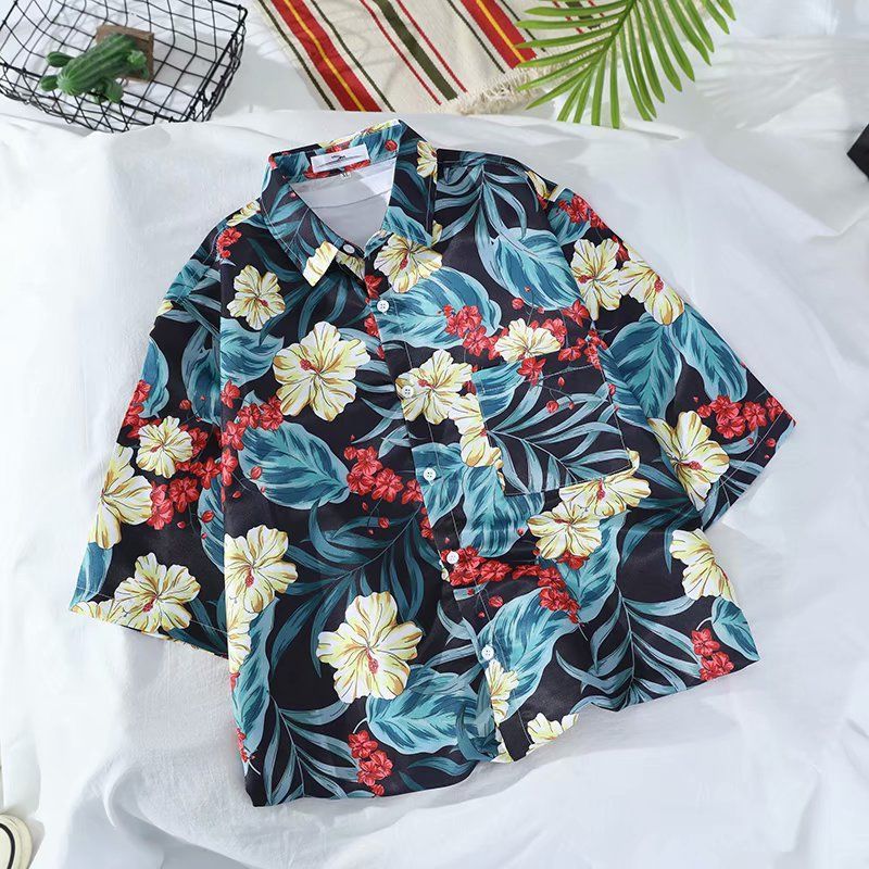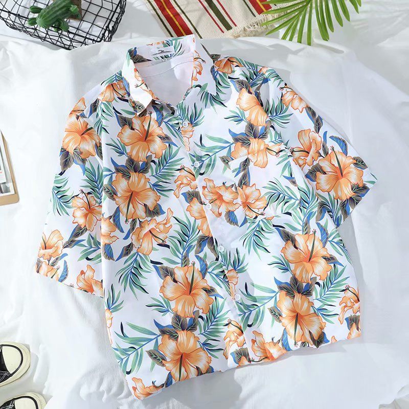 Летняя корейская рубашка с короткими рукавами в гонконгском стиле, свободная рубашка в стиле ретро для отдыха на море, гавайская рубашка с цветочным принтом, пляжная пара, стильный тренд