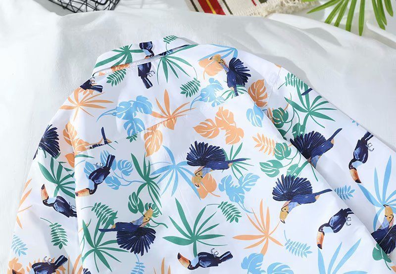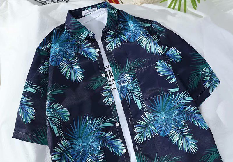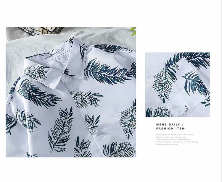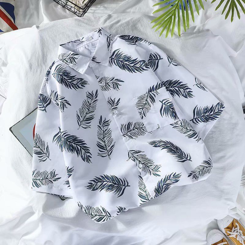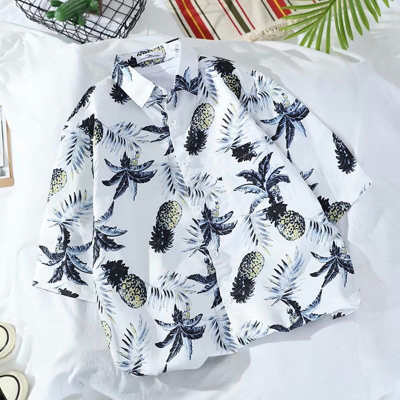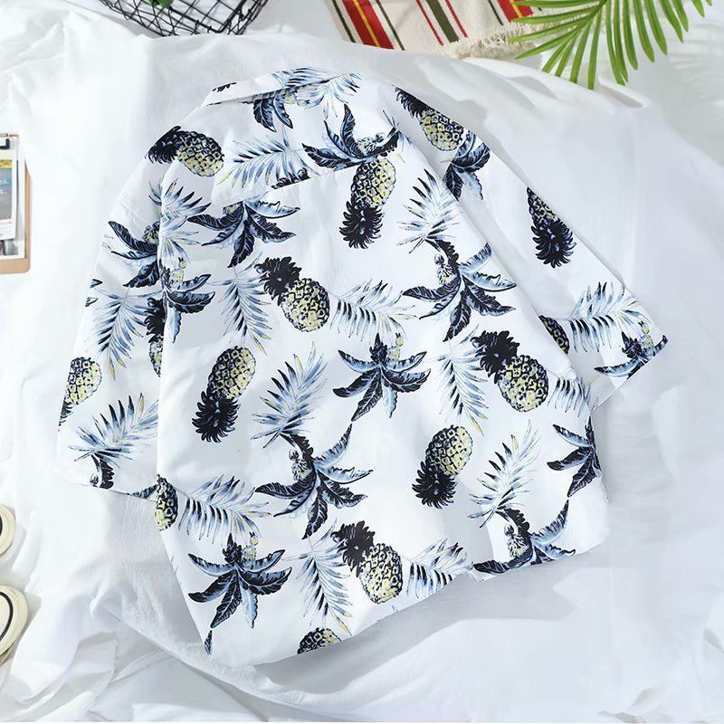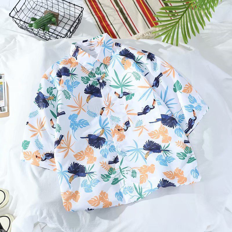 Летняя корейская рубашка с короткими рукавами в гонконгском стиле, свободная рубашка в стиле ретро для отдыха на море, гавайская рубашка с цветочным принтом, пляжная пара, стильный тренд