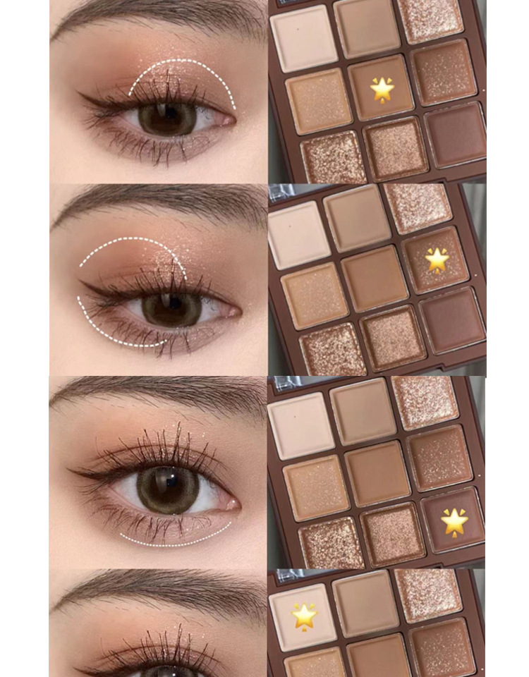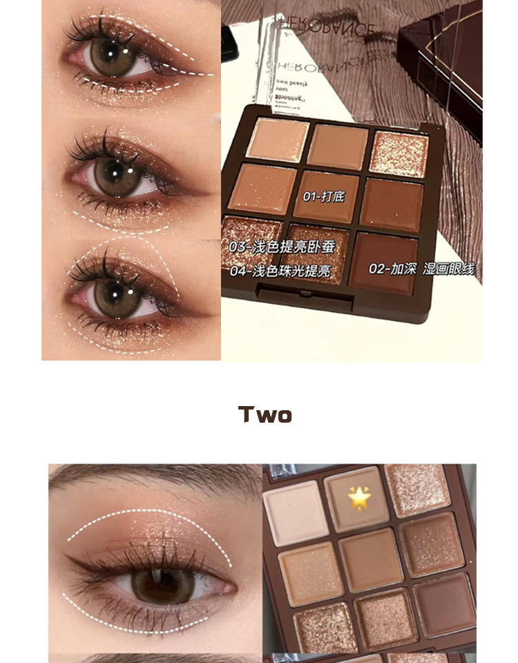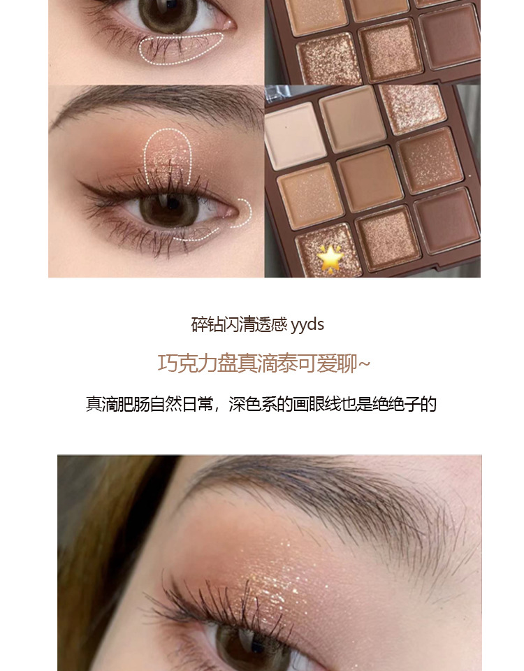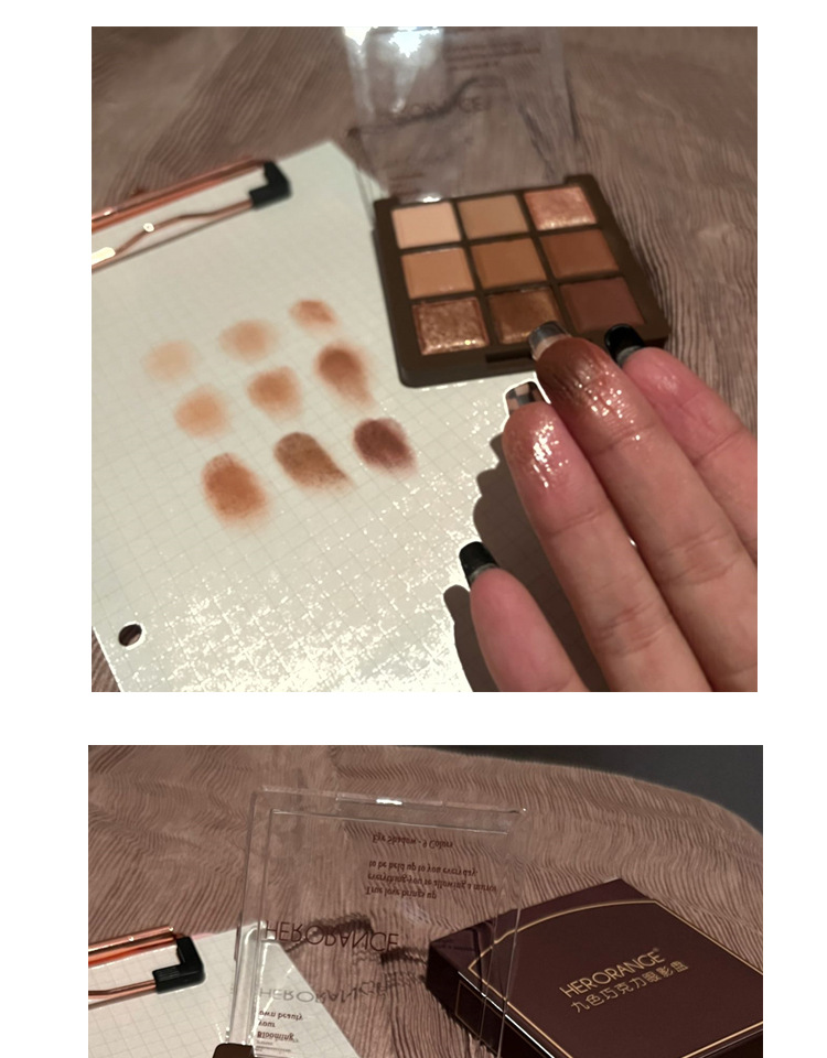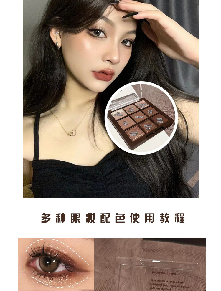 Палитра теней для век HERORANGE из девяти оттенков шоколадных оттенков с перламутровым и матовым финишем, крупными блестками и мелким шиммером, доступная для начинающих.