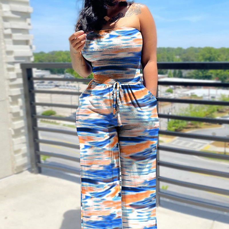В наличии 2022 Amazon tube top Европейский и американский повседневный элегантный тонкий комбинезон без рукавов с высокой талией и принтом
