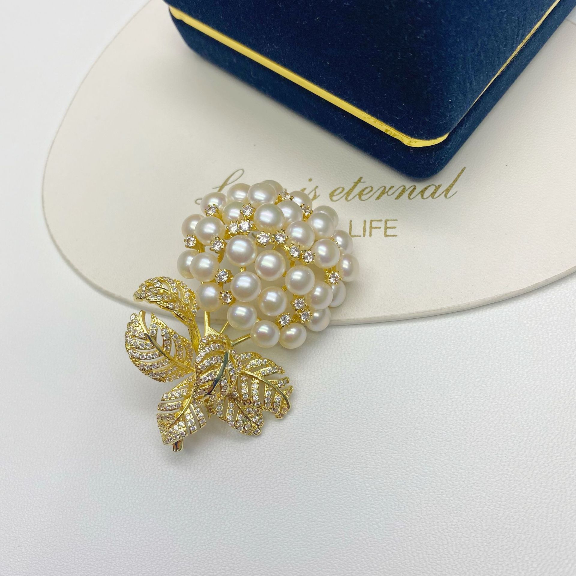 Золотая гортензия* Брошь с пресноводным жемчугом; Серебряная брошь с гортензией* и пресноводным жемчугом; Брошь Crescent* с пресноводным жемчугом; Брошь с несколькими листьями* из пресноводного жемчуга; Значок*Брошь с пресноводным жемчугом