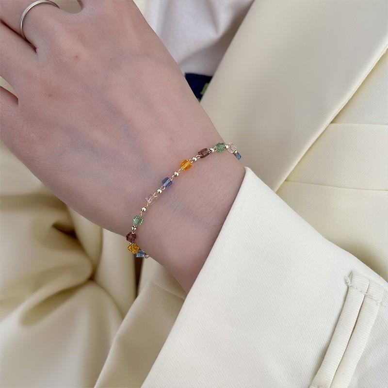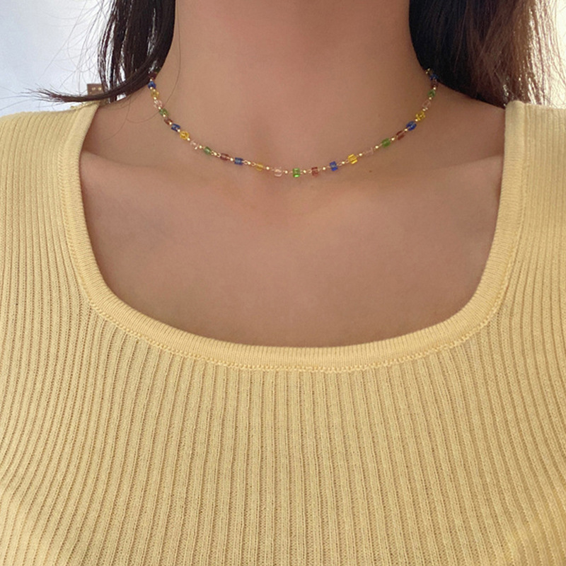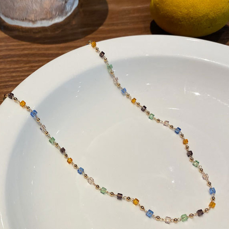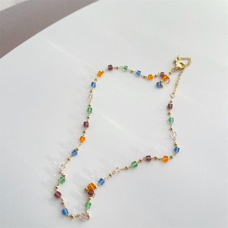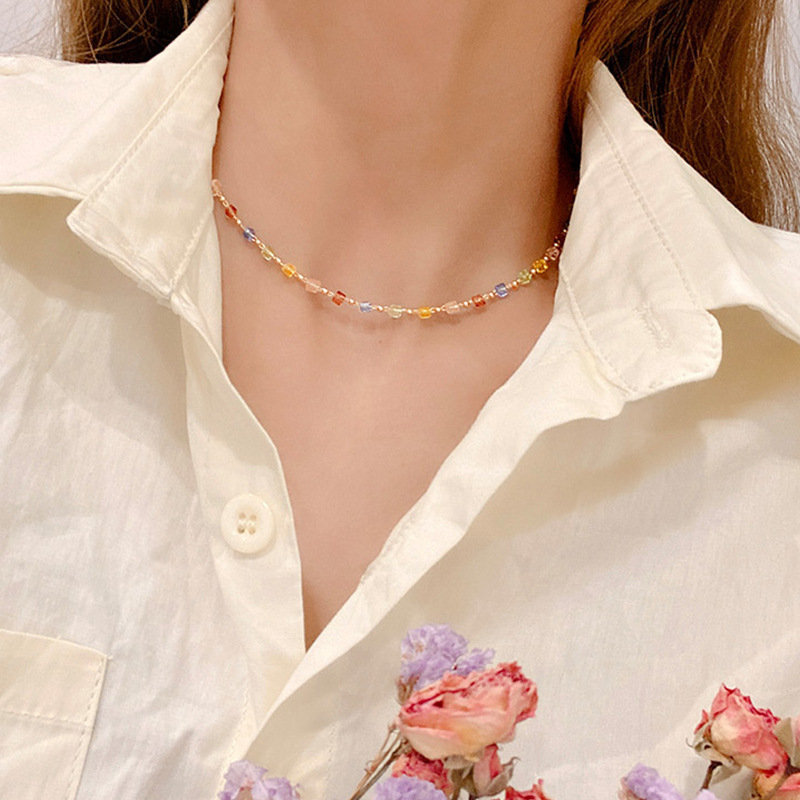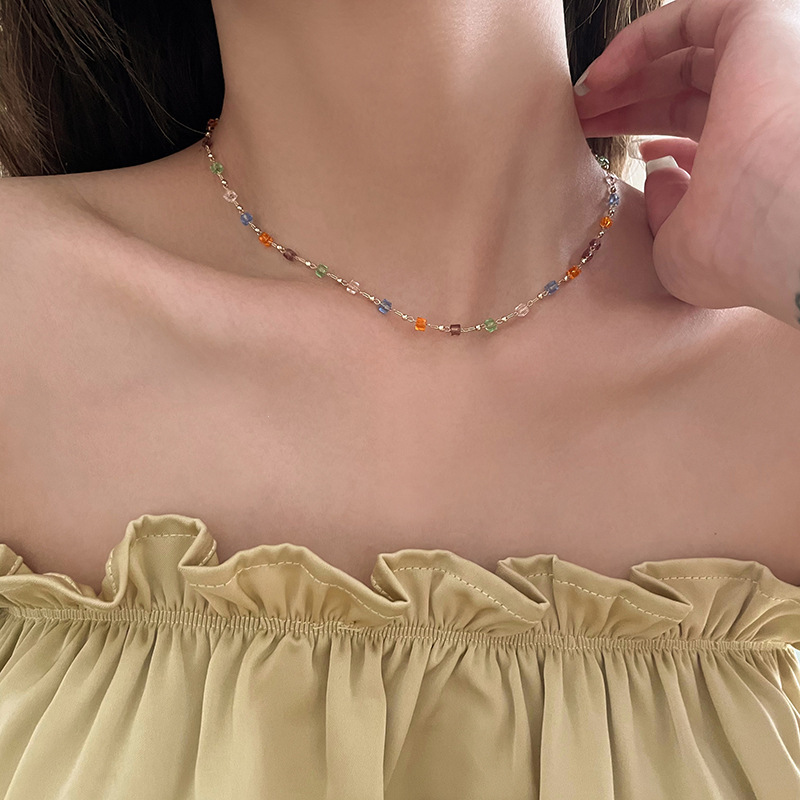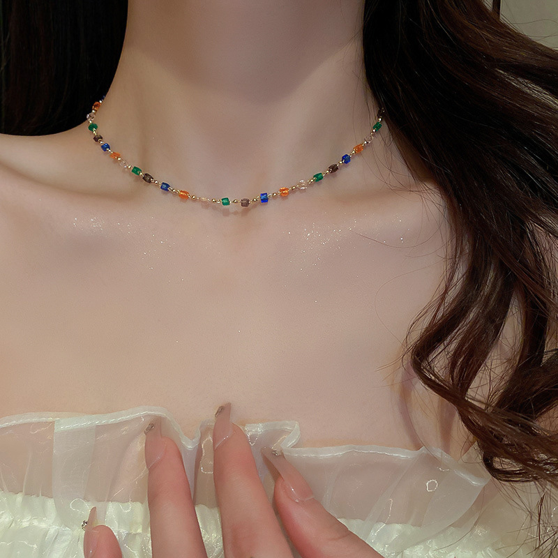 Японские и корейские трансграничные ювелирные изделия ниша дизайн чувство Цвет Кристалл ожерелье женская простая личность маленькое свежее ожерелье на шее