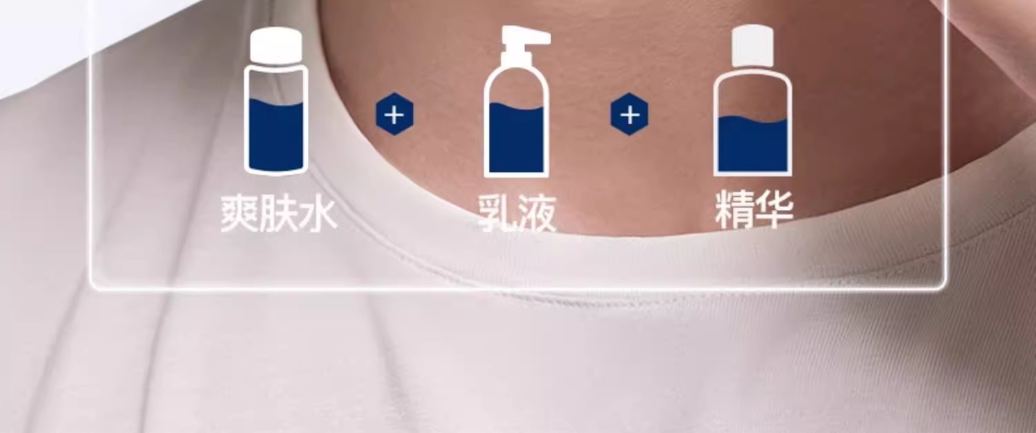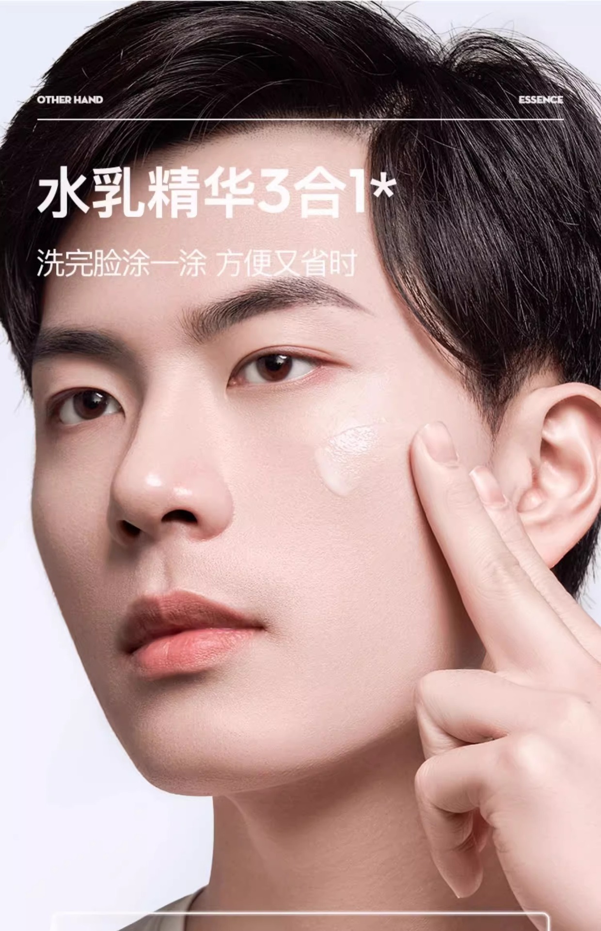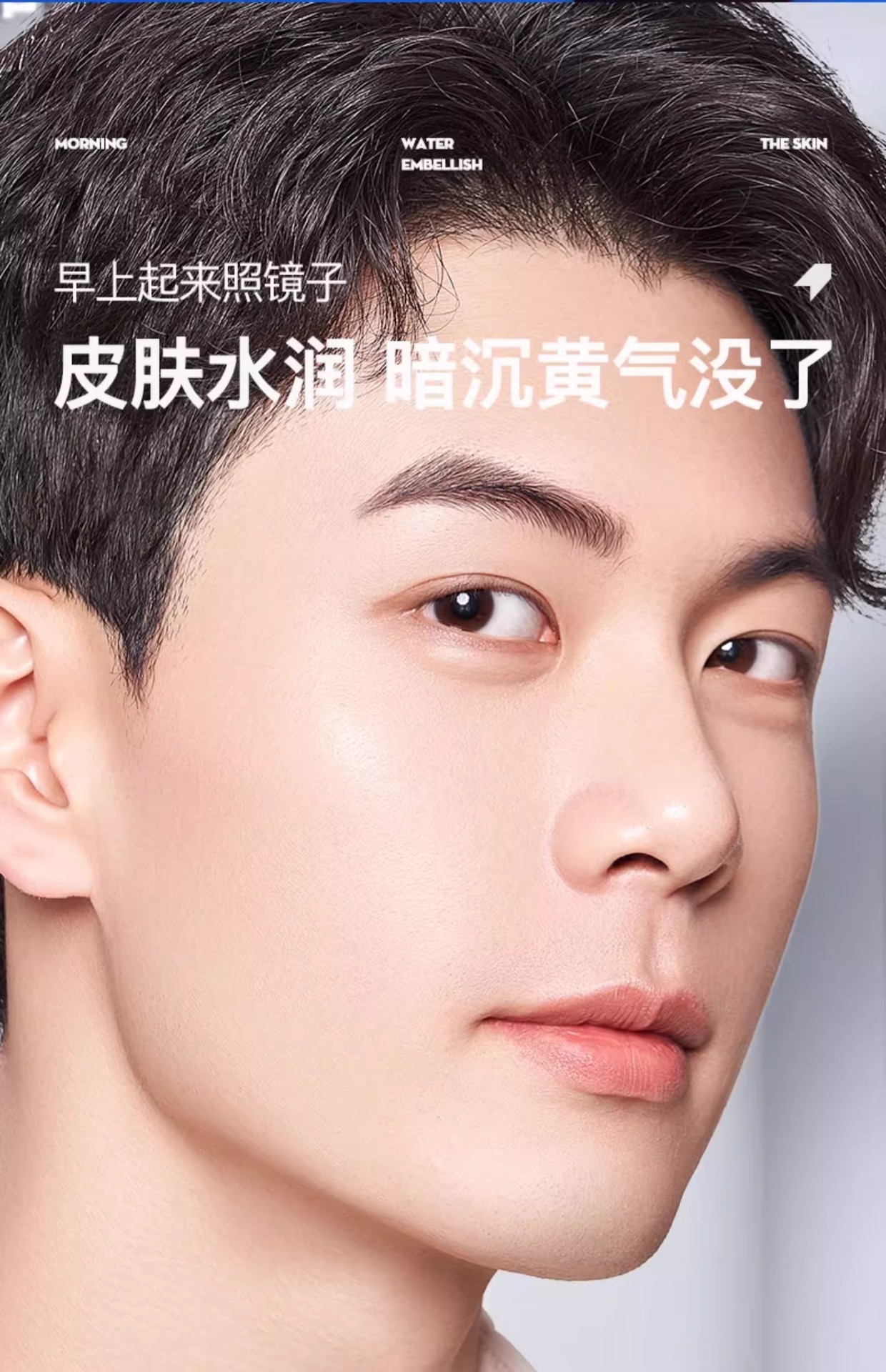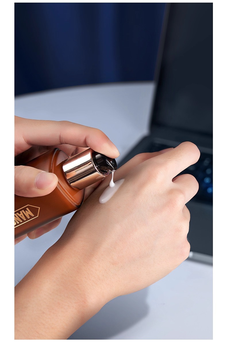 Мужская увлажняющая эссенция-молочко с гиалуроновой кислотой и ниацинамидом для осветления, подтягивания и уменьшения морщин (левая часть лица)