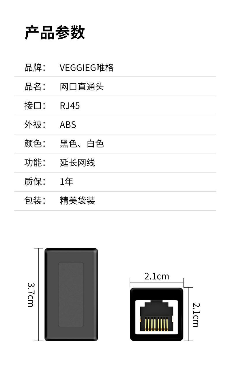 Weige RJ45 Сетевой гигабитный сетевой кабель с прямой головкой Соединительный разъем Удлинитель Высокоскоростная преобразовательная головка с двойной головкой