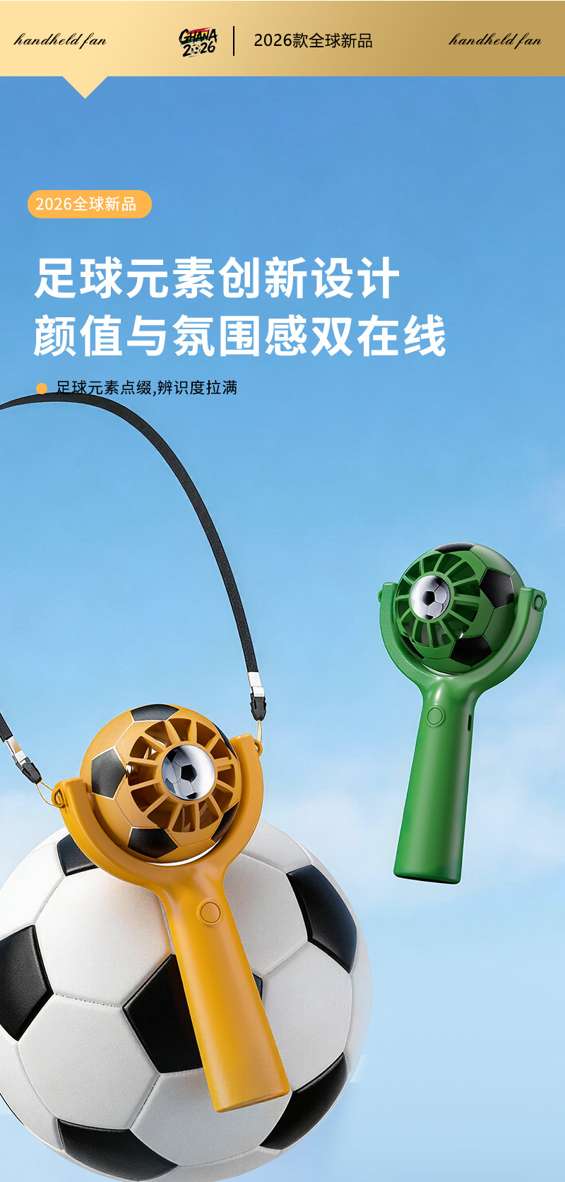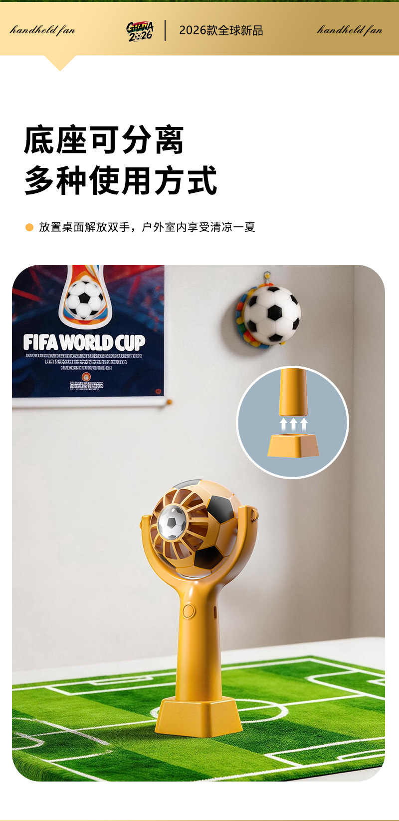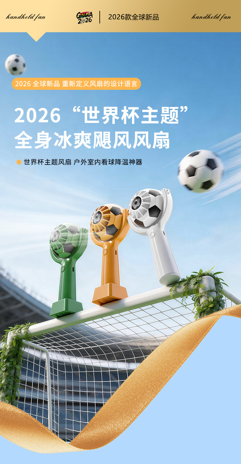 Портативный USB-вентилятор для болельщиков Чемпионата мира по футболу 2026 года, мини-вентилятор с функцией зарядки, пользующийся большим спросом за рубежом в США, Канаде и Мексике.