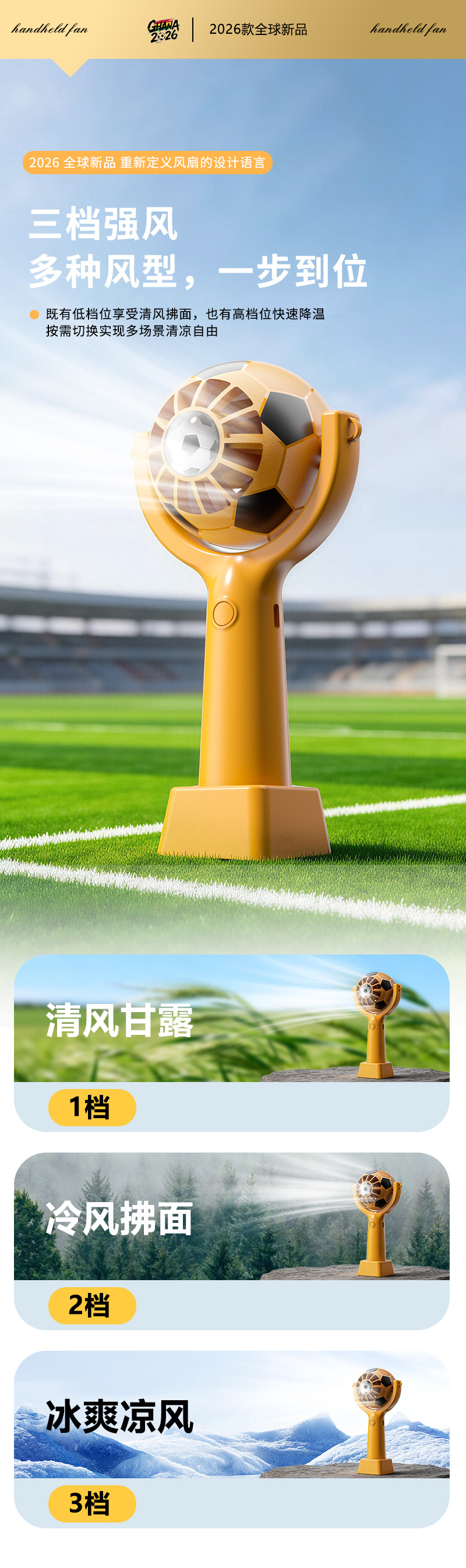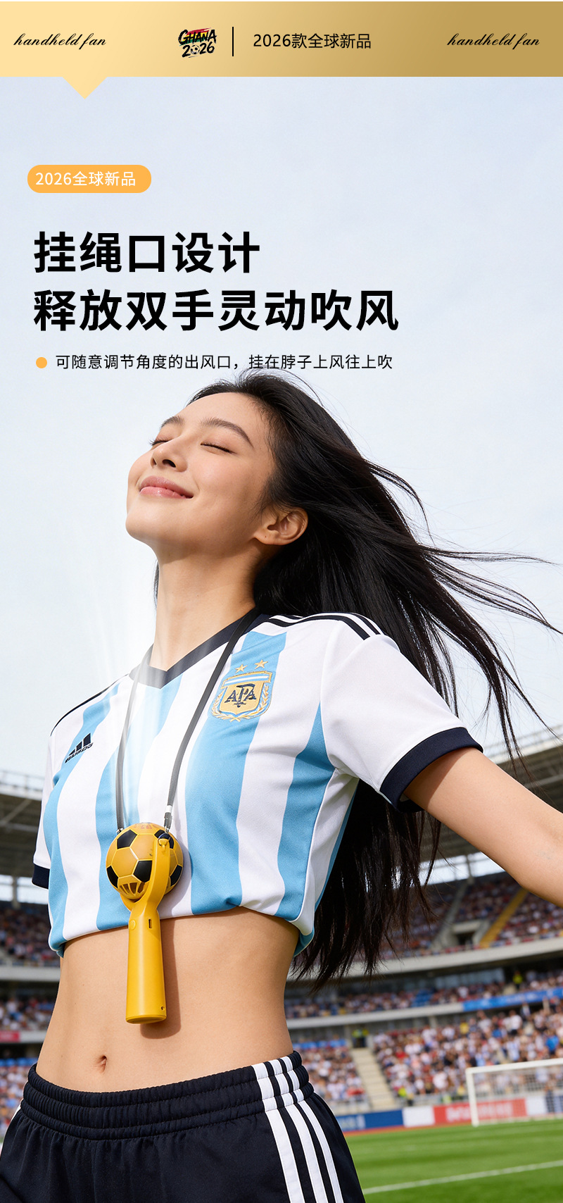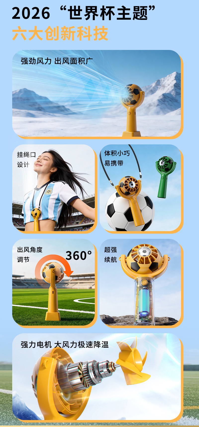 Портативный USB-вентилятор для болельщиков Чемпионата мира по футболу 2026 года, мини-вентилятор с функцией зарядки, пользующийся большим спросом за рубежом в США, Канаде и Мексике.