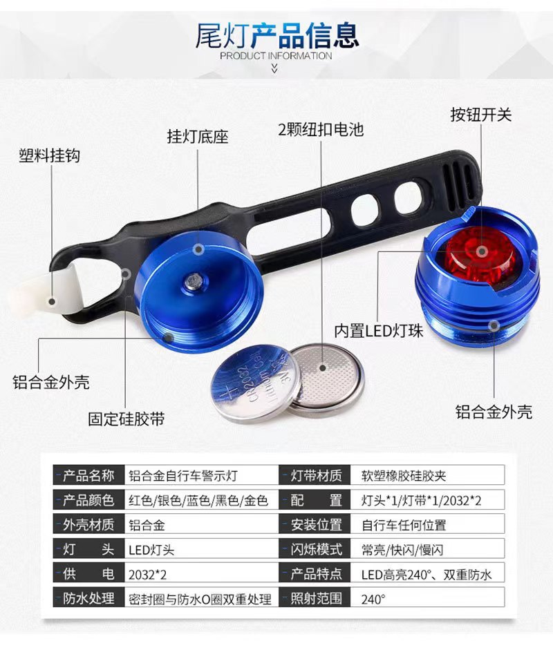 Велосипедный фонарь, задний фонарь из алюминиевого сплава, светоотражатель для велосипеда, фонарь для горного велосипеда, фонарь для шоссейного велосипеда, фонарь для ночной езды