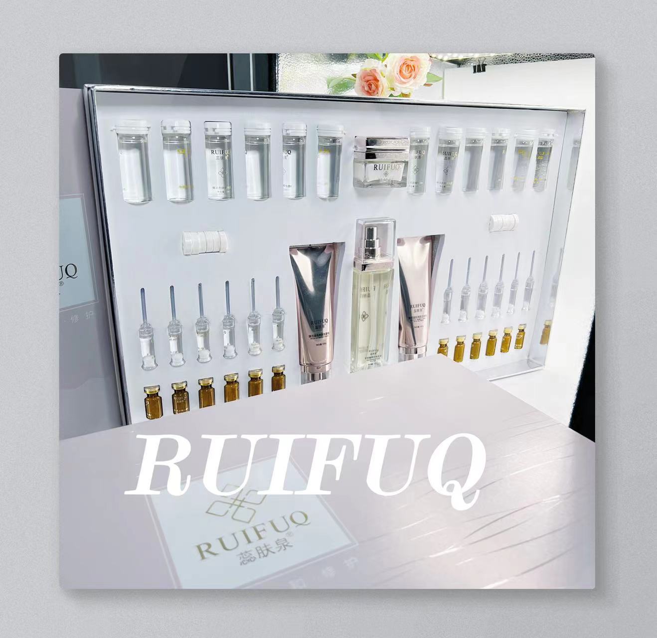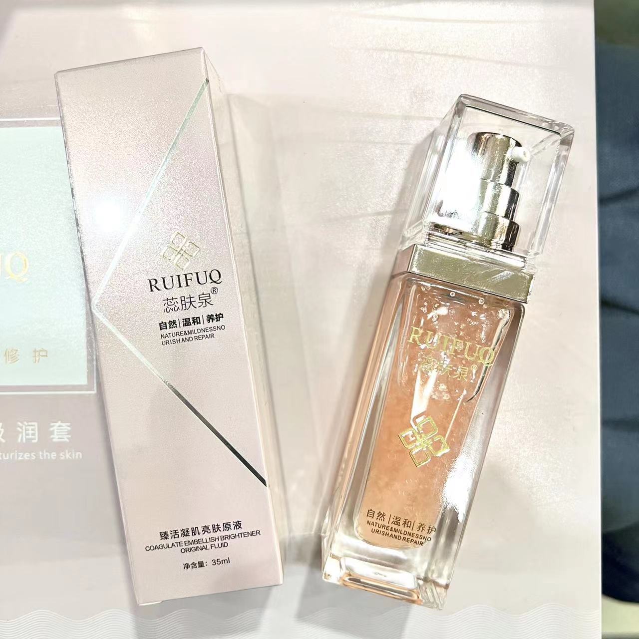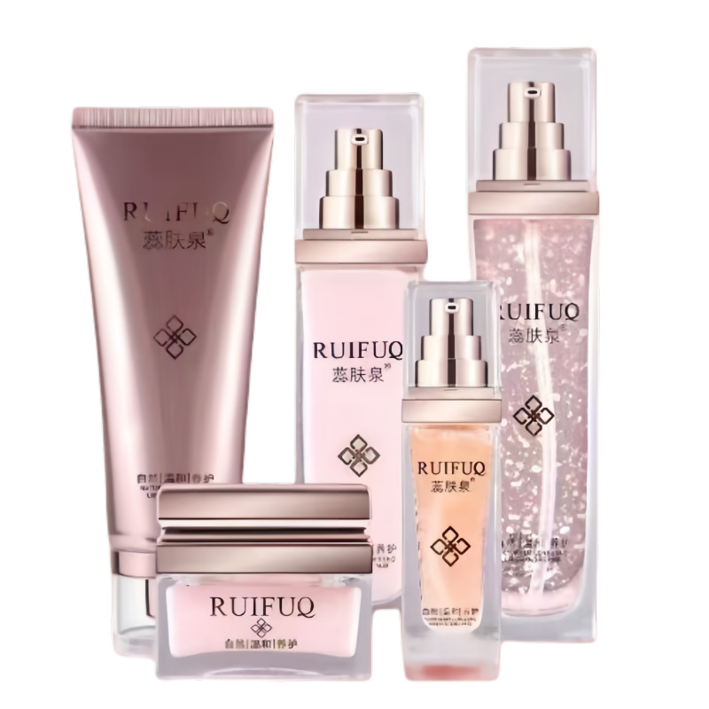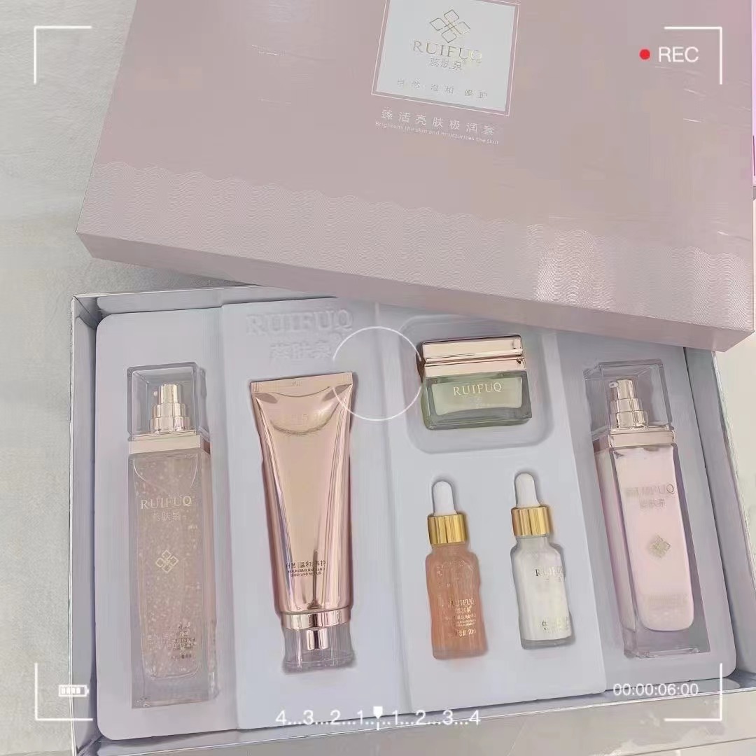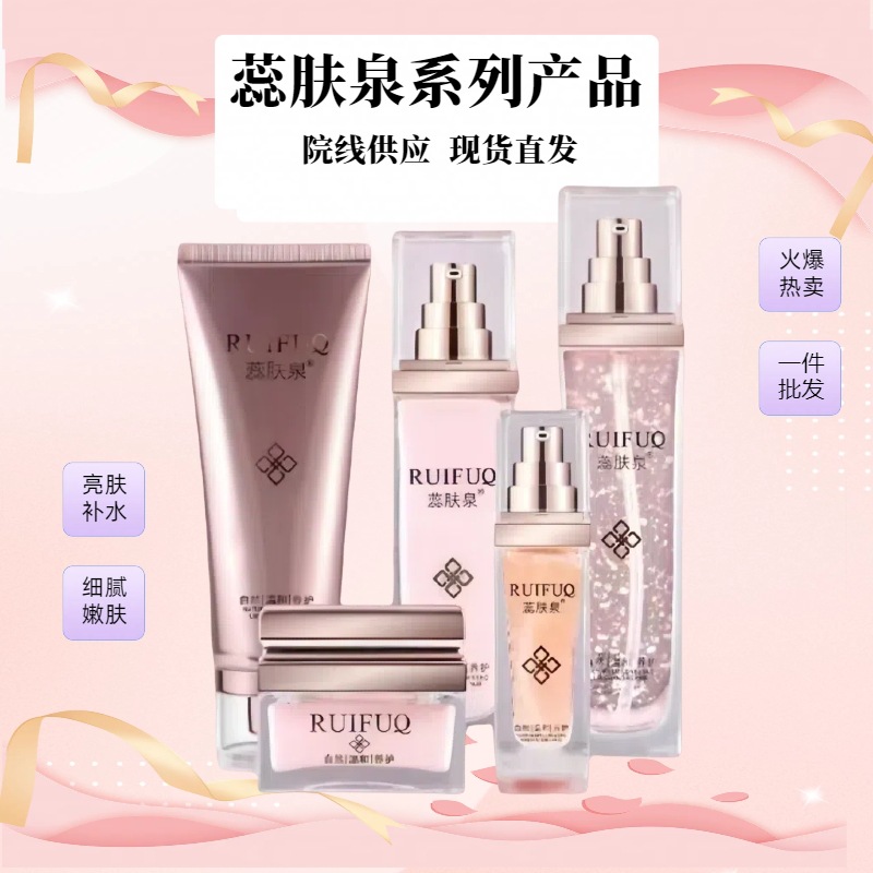 Набор серии больниц Ruifuquan содержит большое количество увлажняющих, увлажняющих, заботливых, осветляющих, эластичных и очищающих водных кремов-эссенций.