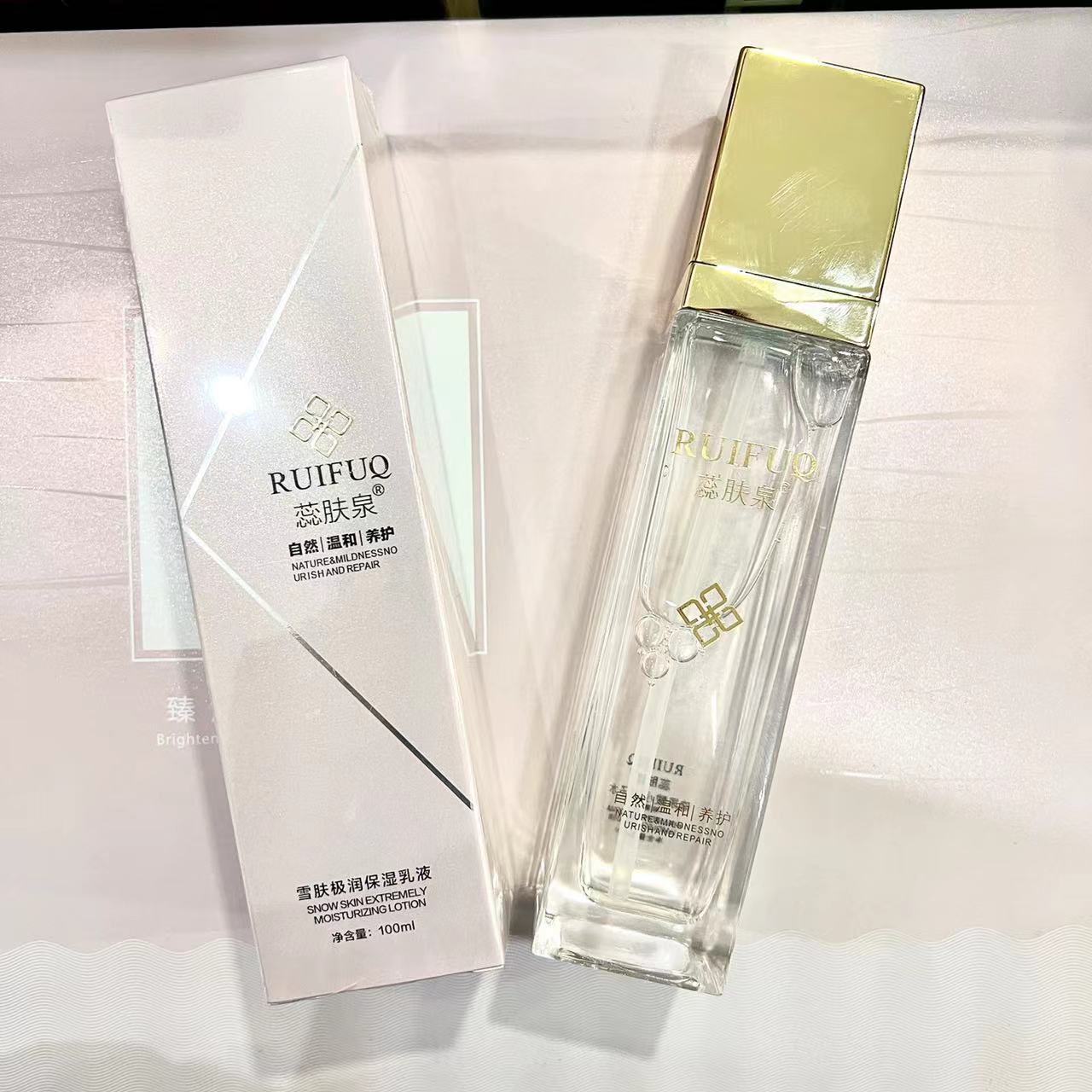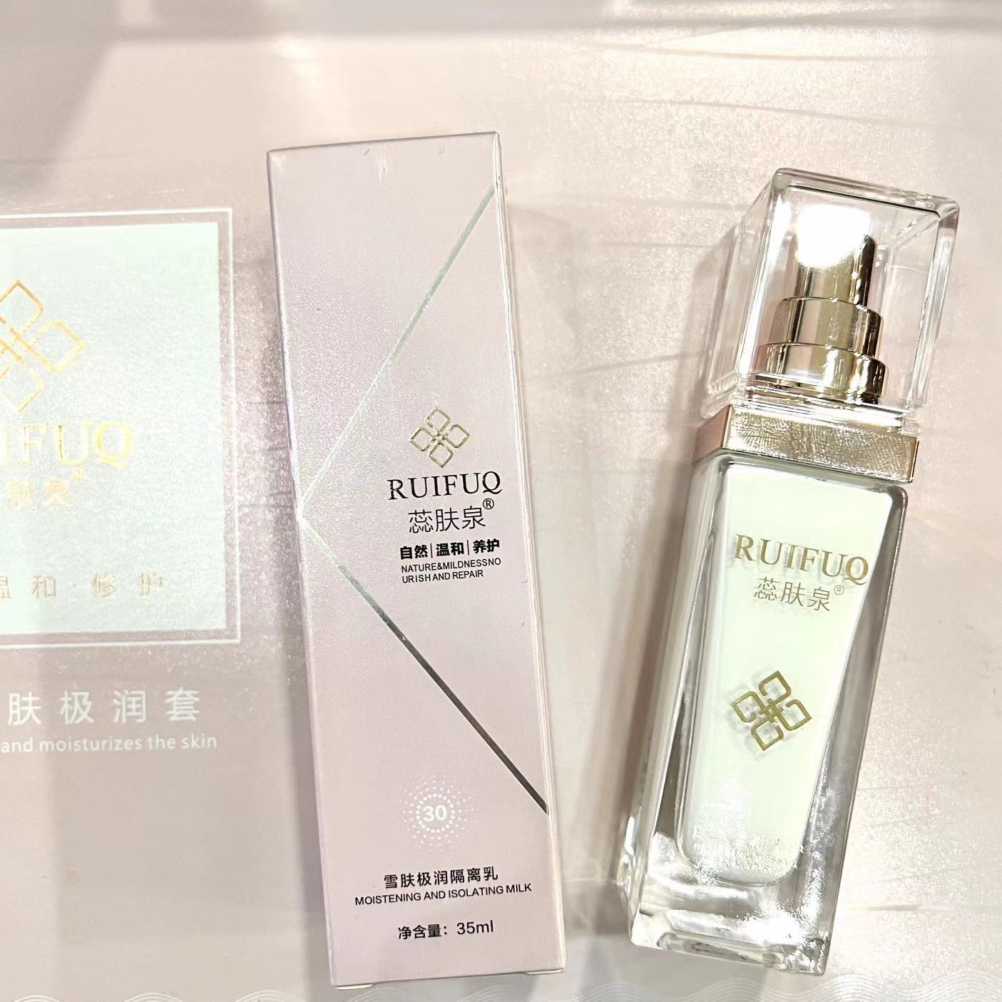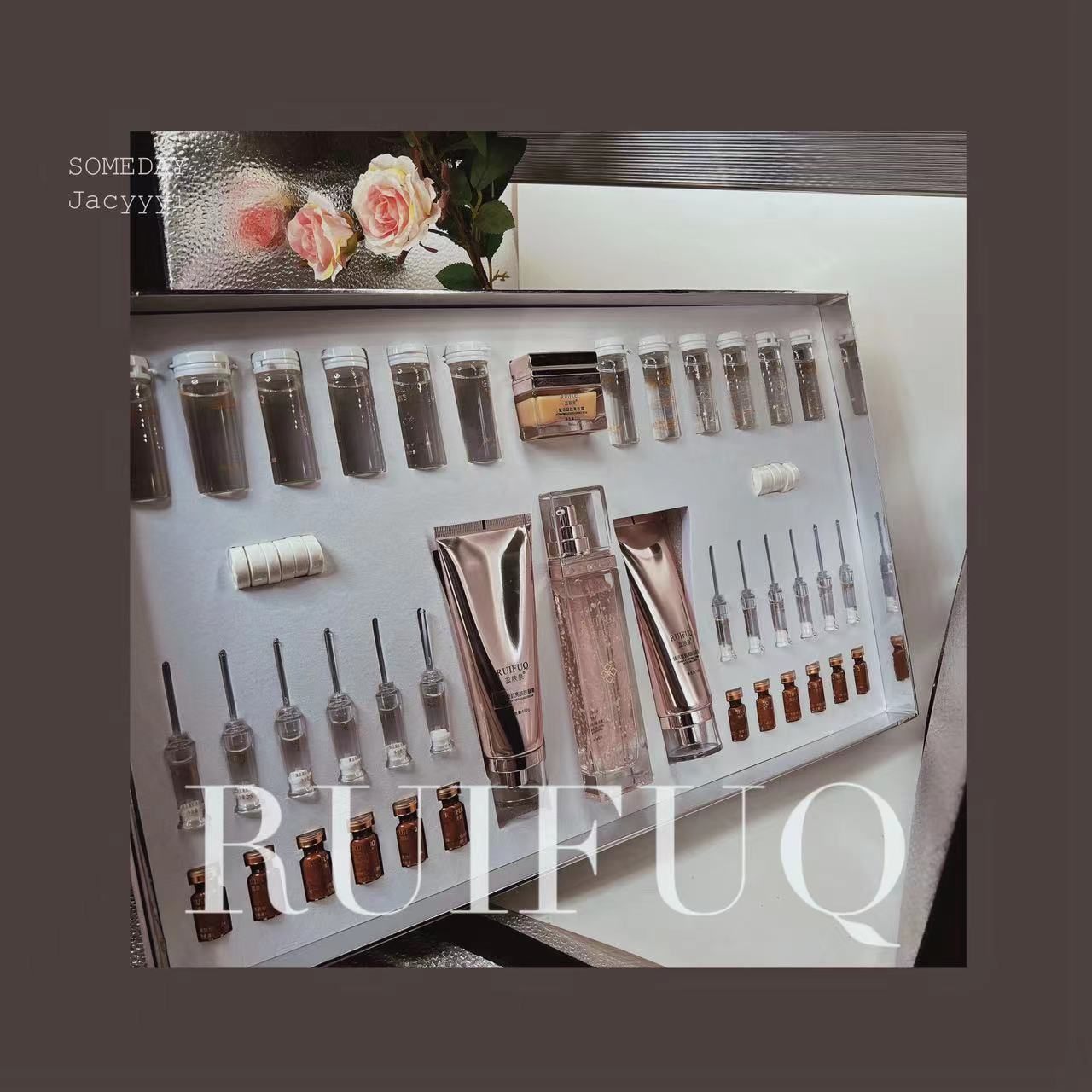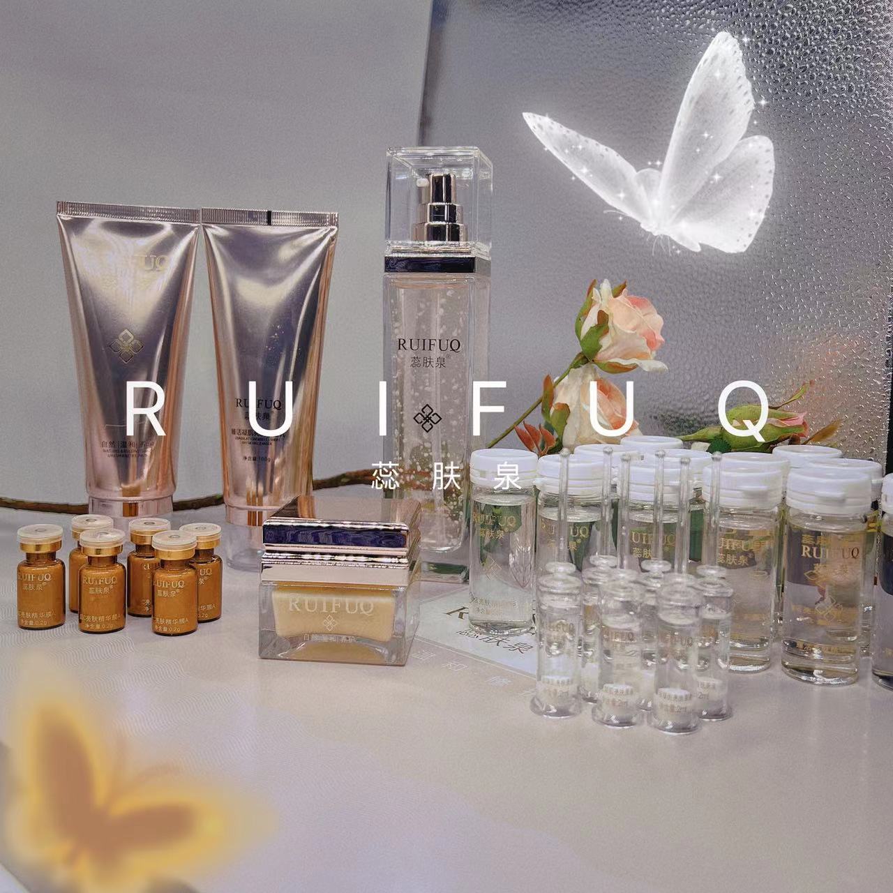 Набор серии больниц Ruifuquan содержит большое количество увлажняющих, увлажняющих, заботливых, осветляющих, эластичных и очищающих водных кремов-эссенций.