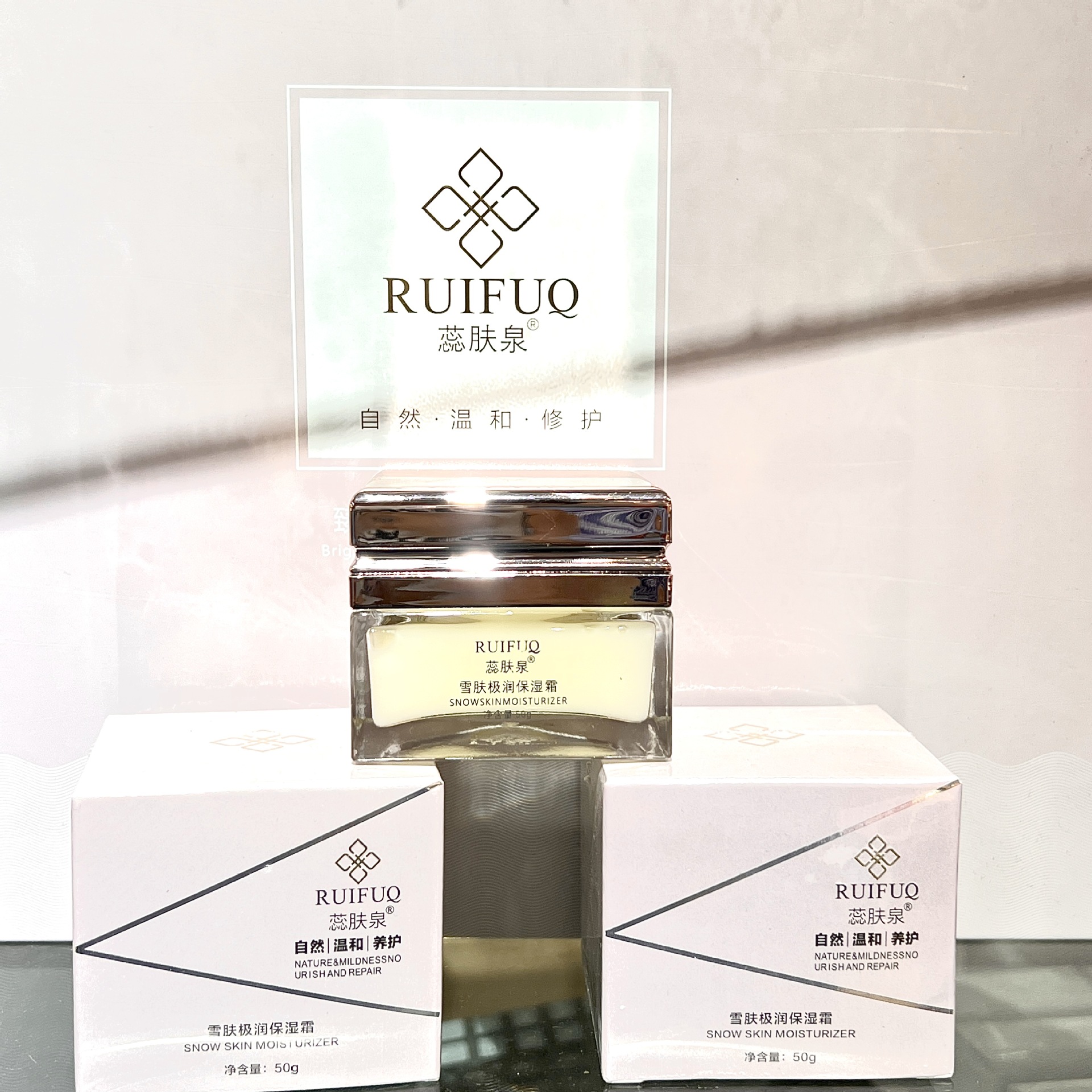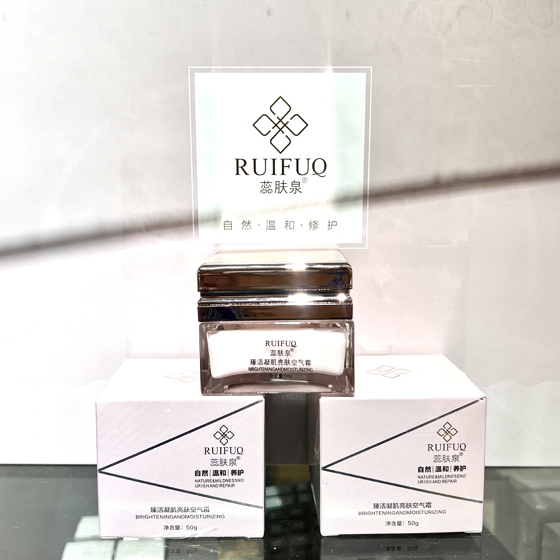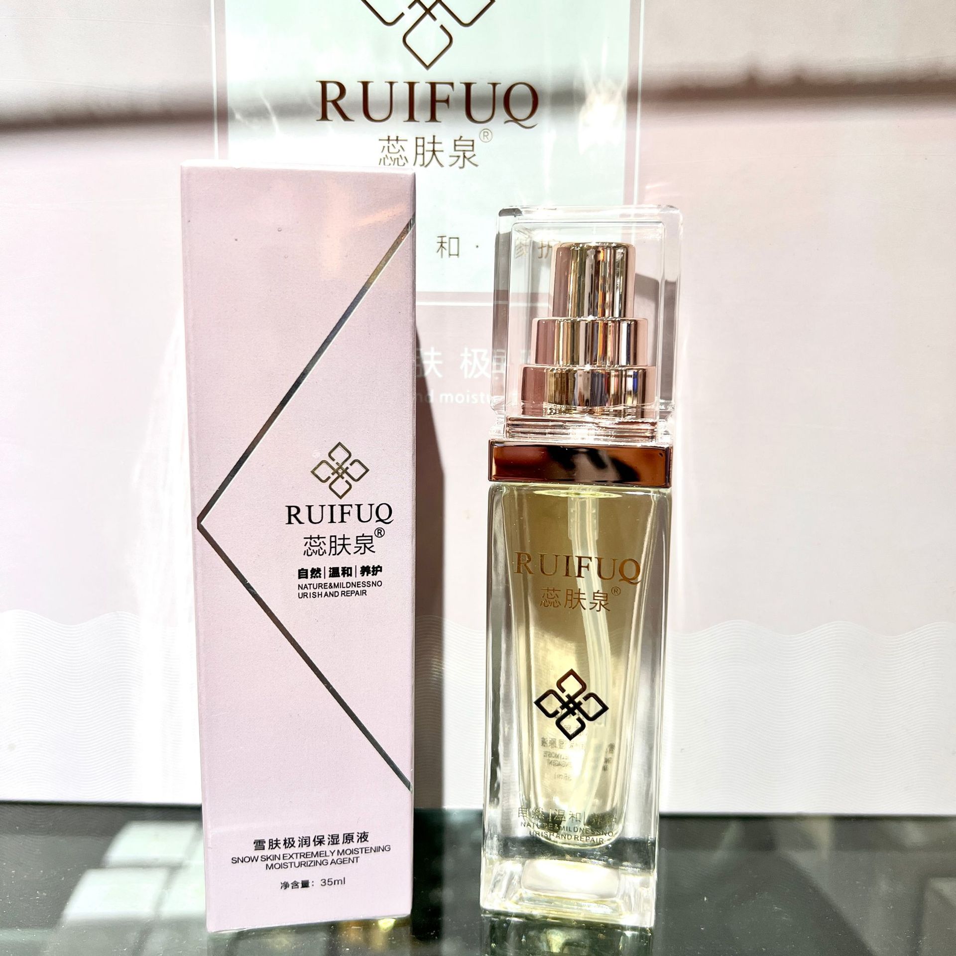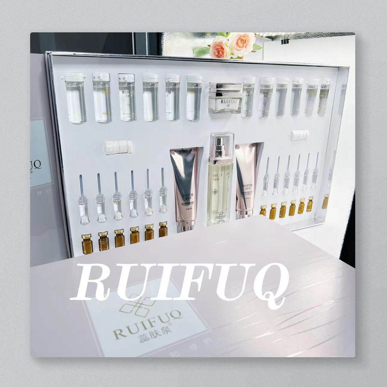 Набор серии больниц Ruifuquan содержит большое количество увлажняющих, увлажняющих, заботливых, осветляющих, эластичных и очищающих водных кремов-эссенций.