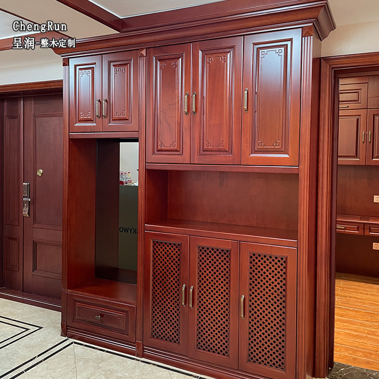 广州呈润实木家具厂是一家专注生产实木门、入户大门、卧室门、子母门、实木柜、实木衣柜、整木衣帽间、实木书柜、整木书房、实木酒柜、整木酒窖、实木吧台、实木鞋柜、储物柜、电视背景墙、木饰面背景墙、整木护墙板、木饰面护墙板、榻榻米等全屋整木家具定制;星级酒店、别墅、豪宅、会所、KTV、餐厅、办公室等固装家具。目前拥有5000方现代化厂房,经过多年积累,形成了10多名专业的整体木作技术研发人员以及100多人高水平生产团队,机器制造设备基本实现高度自动化,结合多年木作师傅等专业人士进行生产制作。