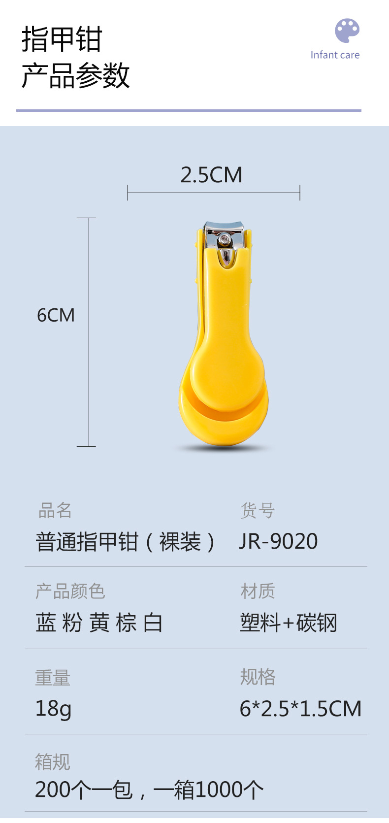 【尺寸】指甲钳尺寸 2.5*6*1.5cm 200一包,一箱1000个。