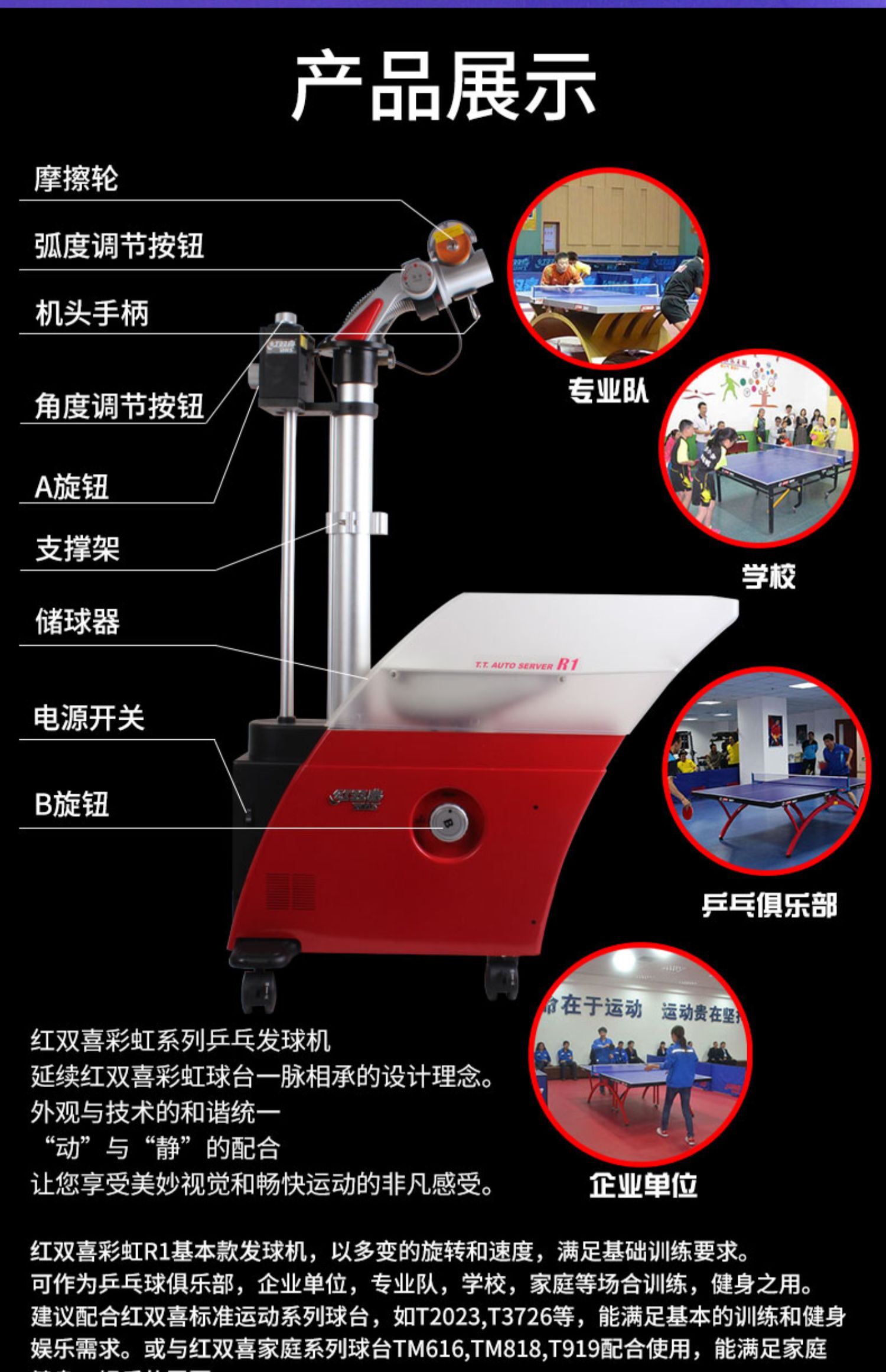 Red Double Happiness Настольный теннис Сервировочный тренажер Домашний Профессиональный автоматический простой Rainbow R1/R2 Одинарный сервировочный аппарат