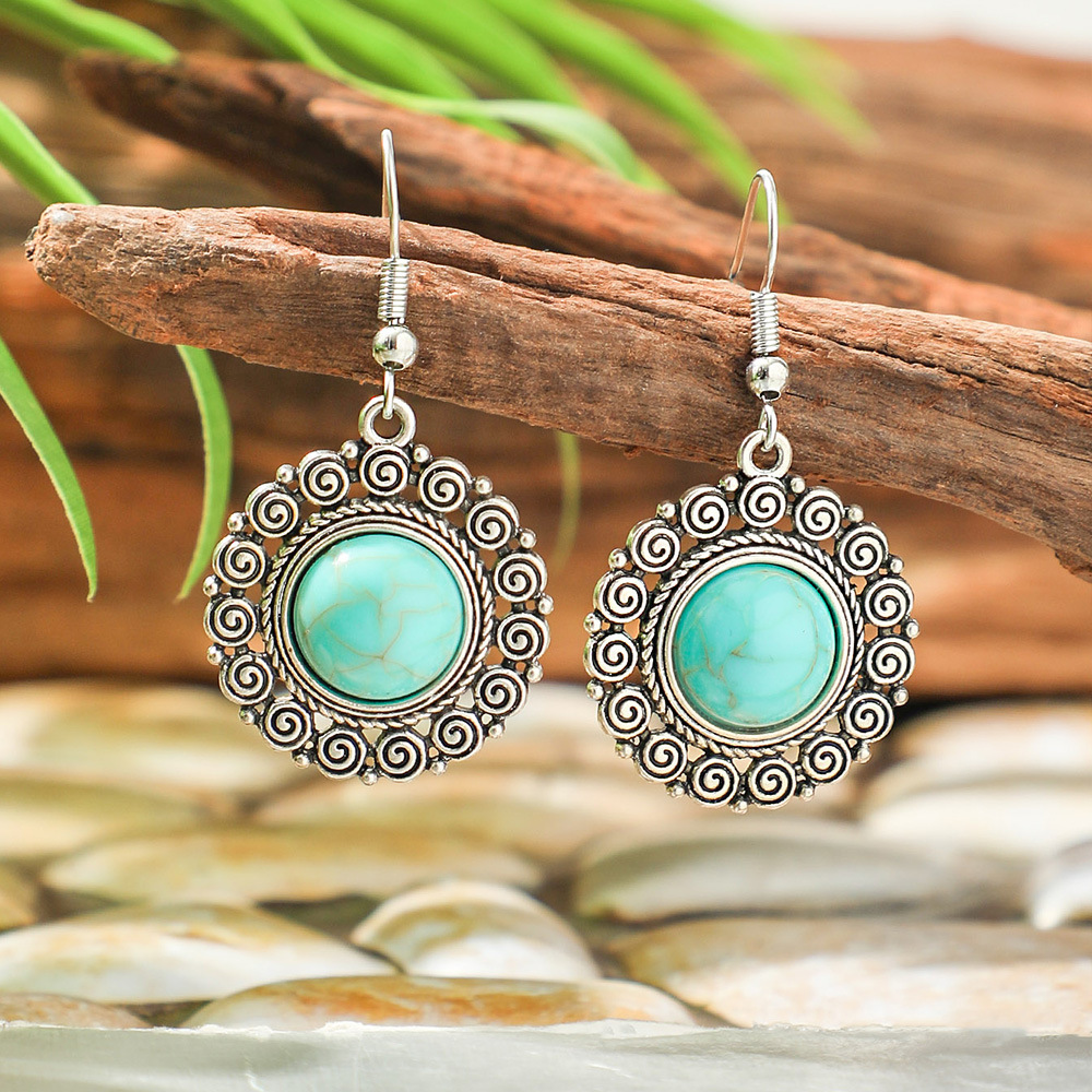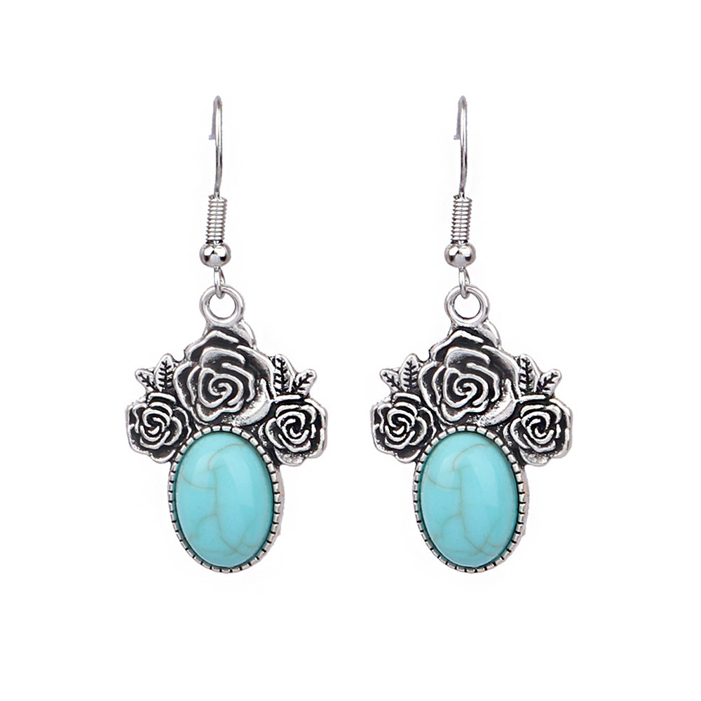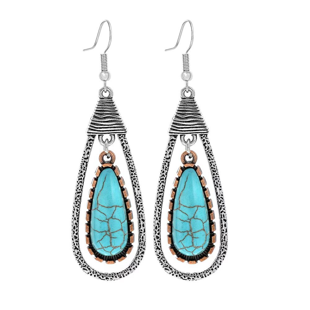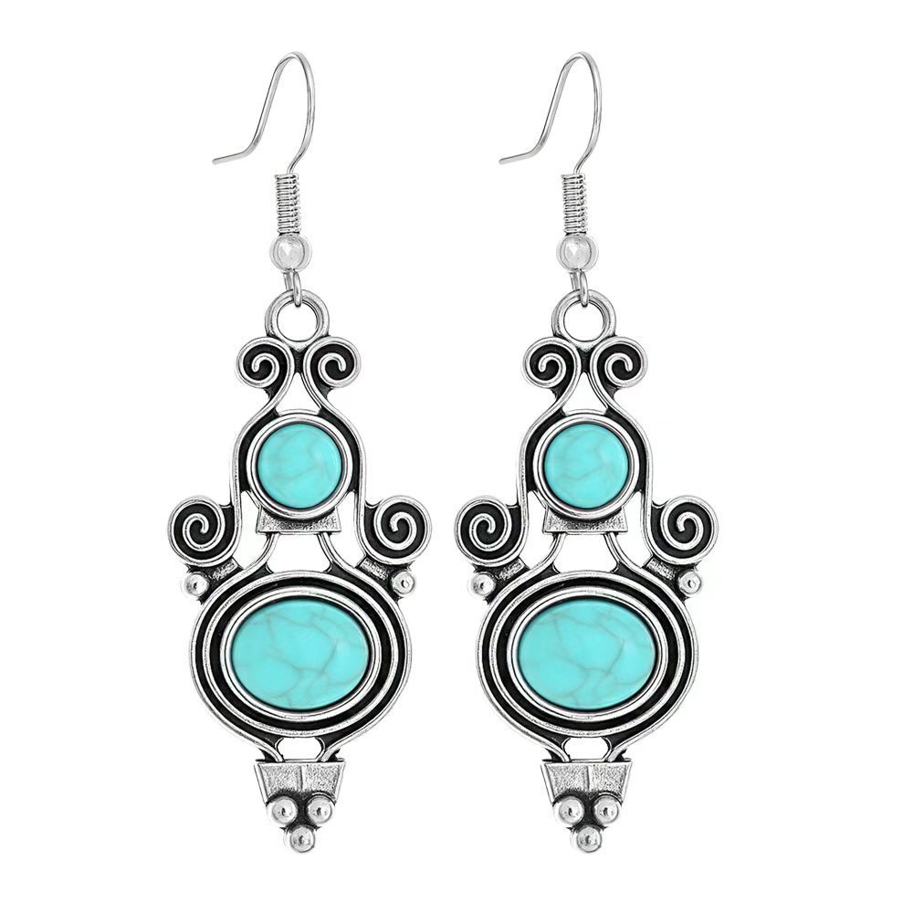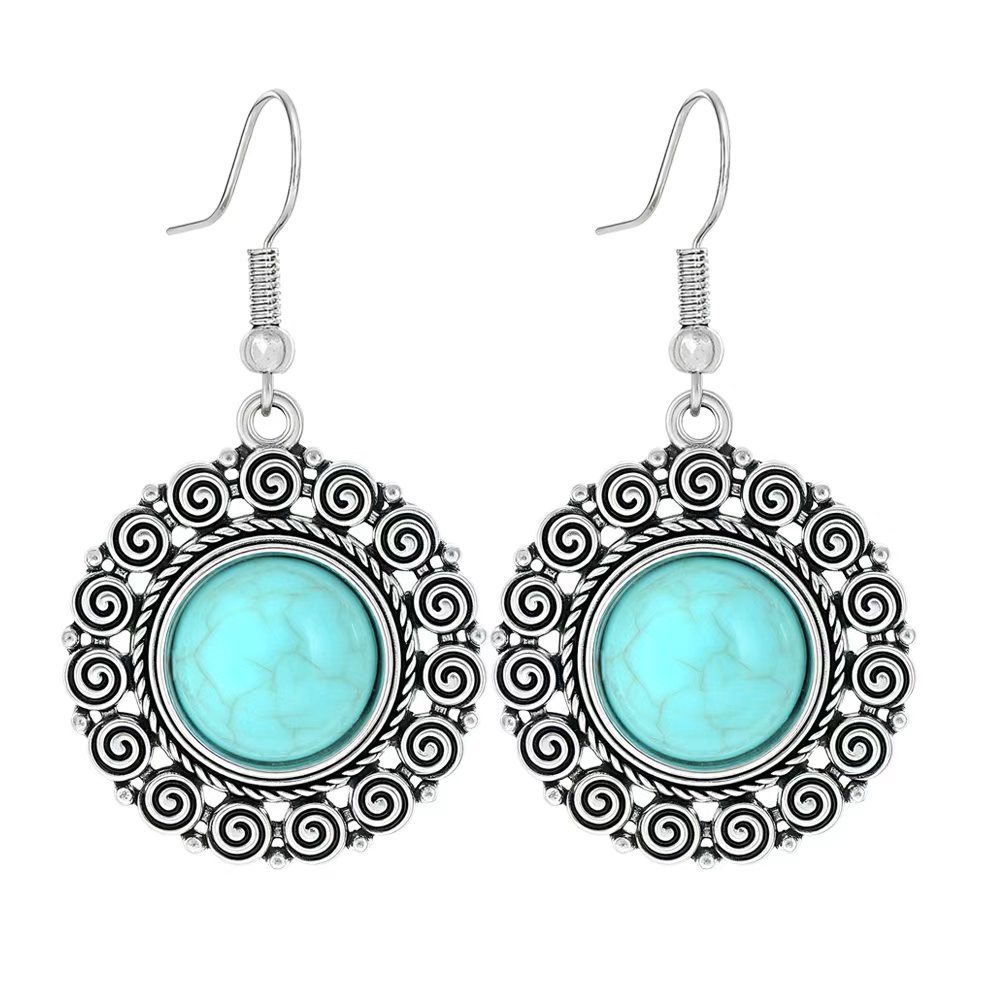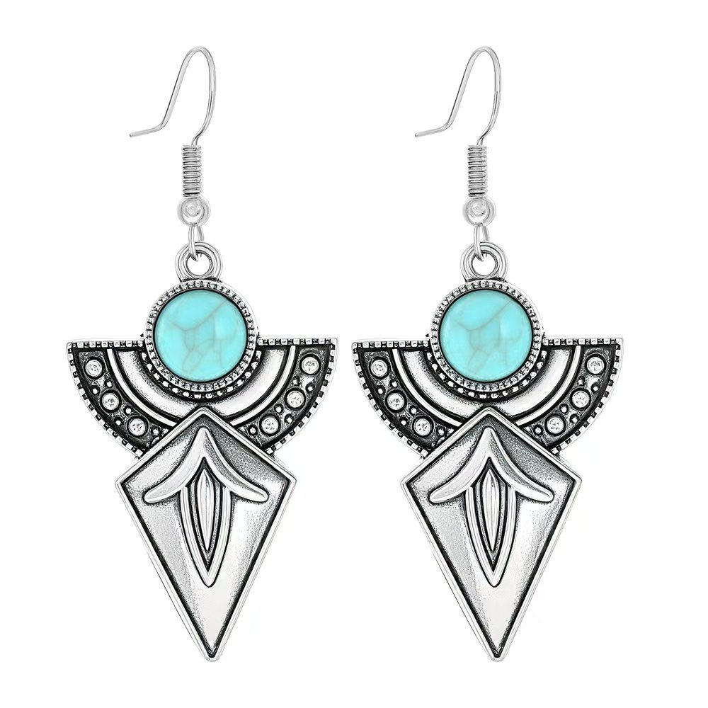 Европейские и американские трансграничные серьги в этническом стиле, серебряные геометрические металлические бирюзовые инкрустированные серьги с кисточками, ювелирные изделия из ушей Amazon