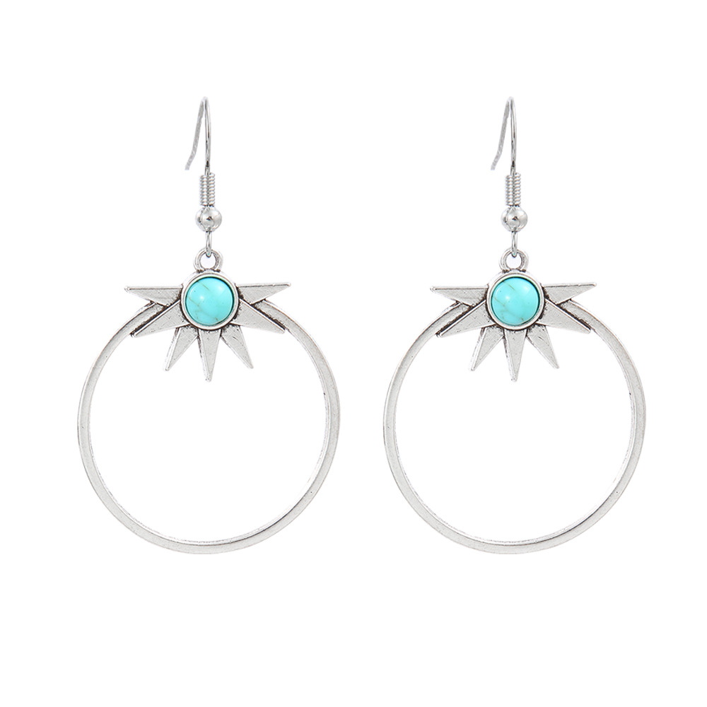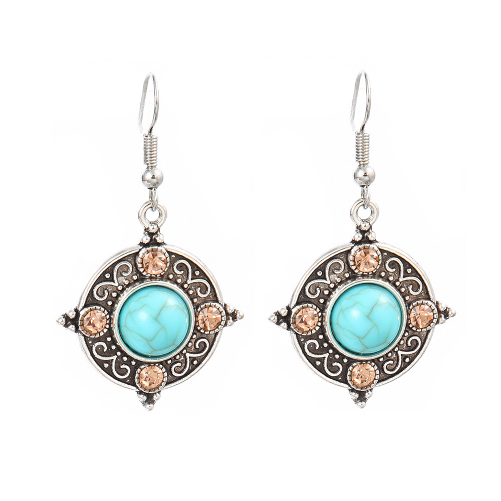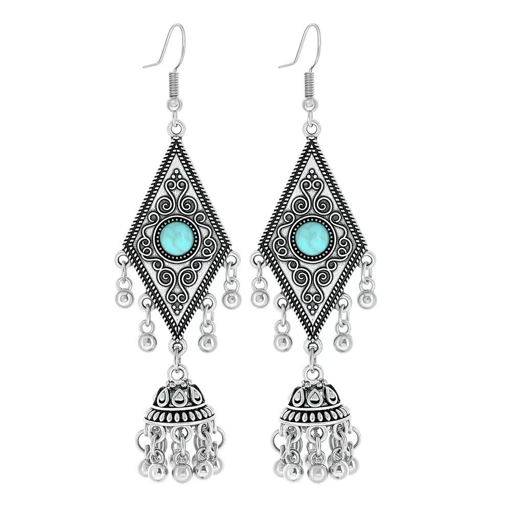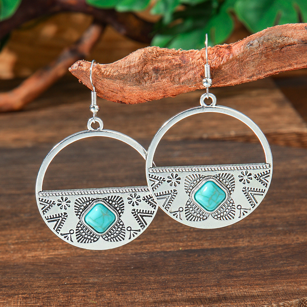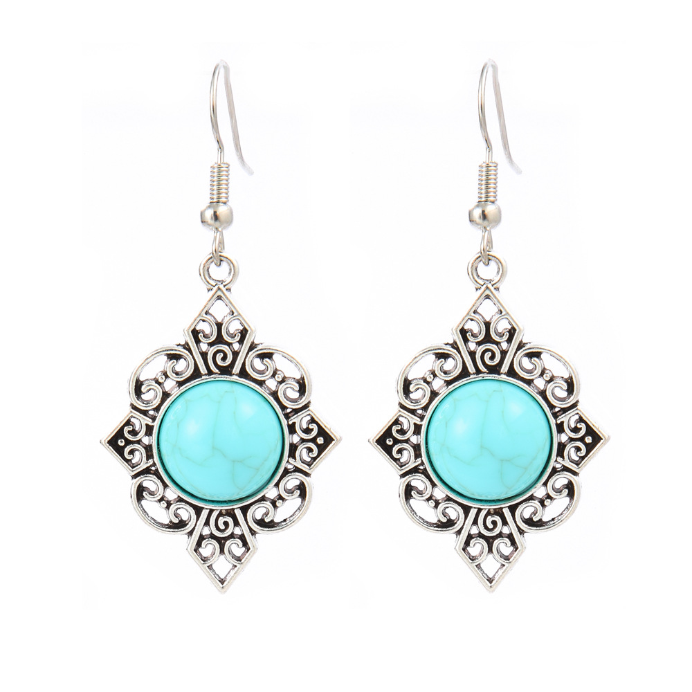 Европейские и американские трансграничные серьги в этническом стиле, серебряные геометрические металлические бирюзовые инкрустированные серьги с кисточками, ювелирные изделия из ушей Amazon