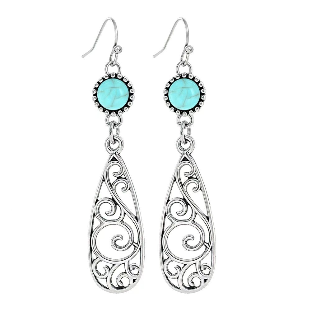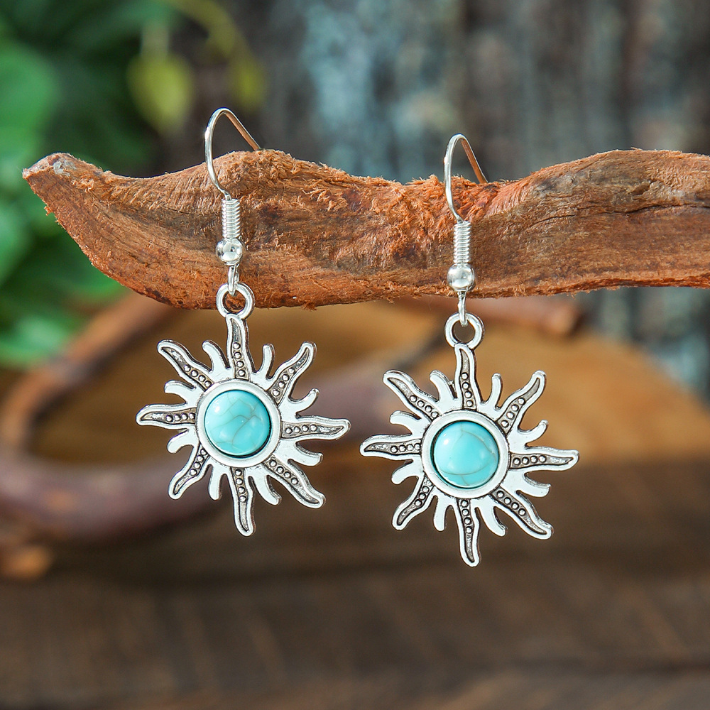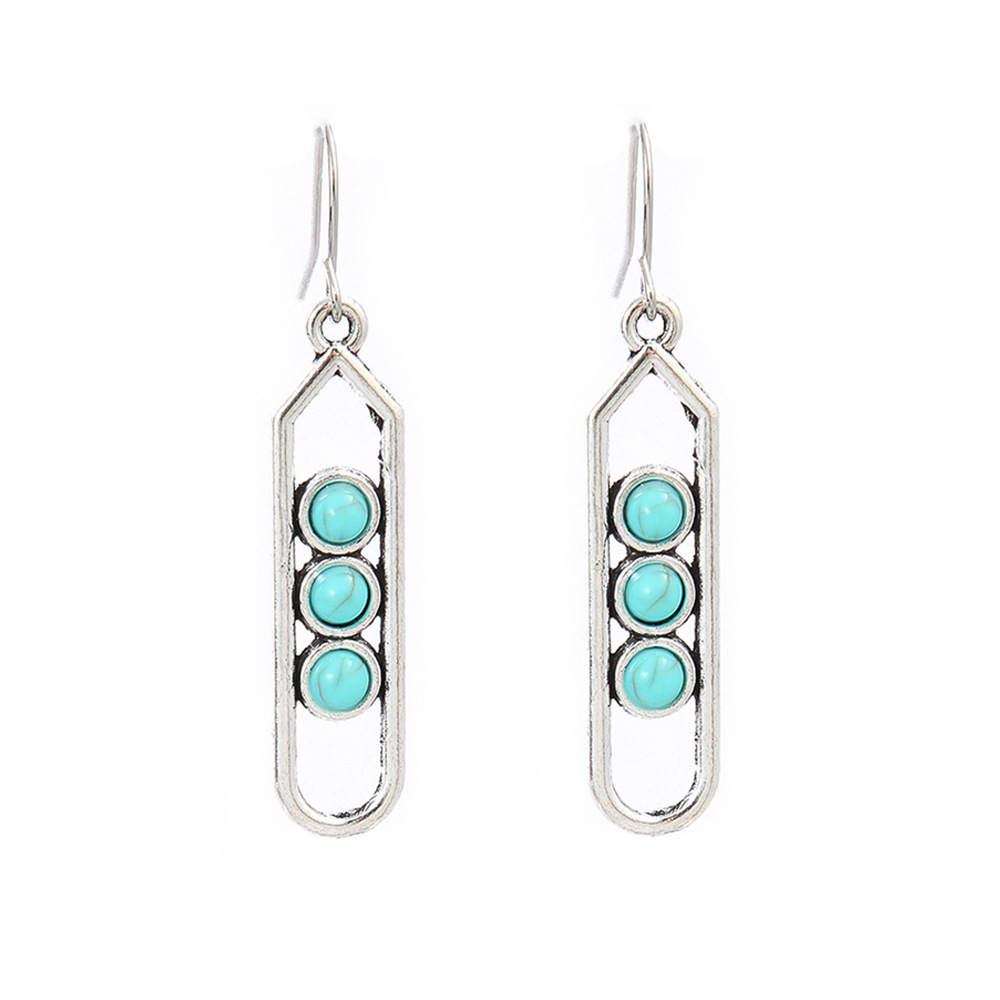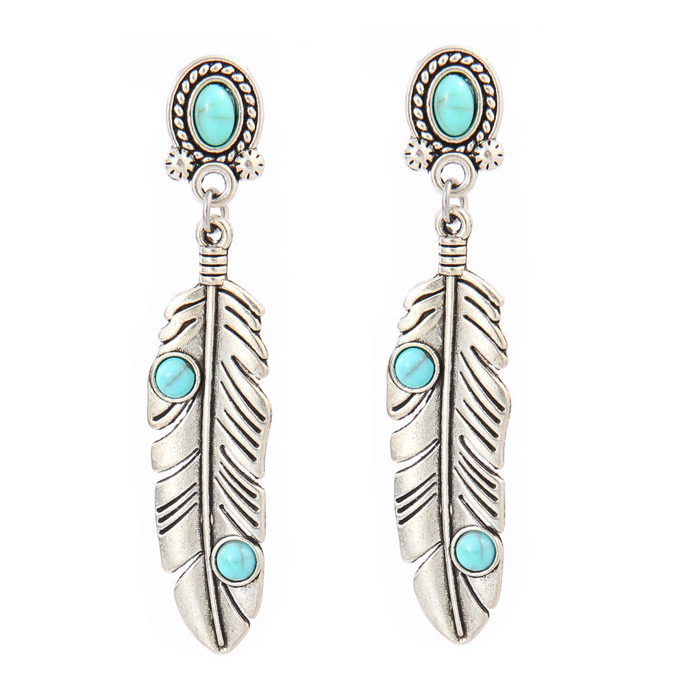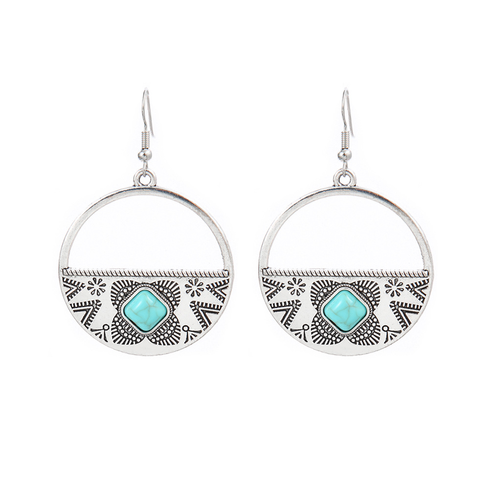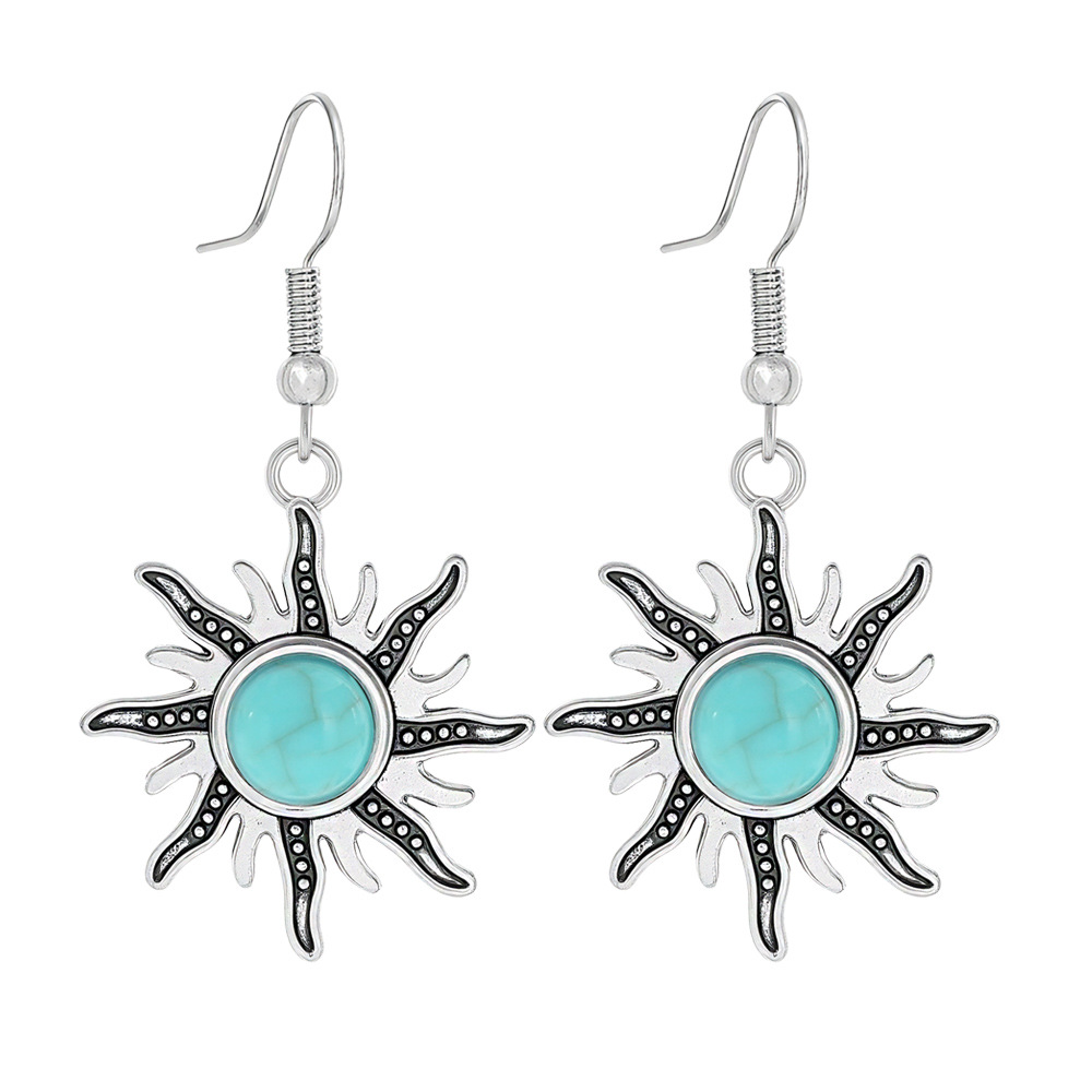 Европейские и американские трансграничные серьги в этническом стиле, серебряные геометрические металлические бирюзовые инкрустированные серьги с кисточками, ювелирные изделия из ушей Amazon
