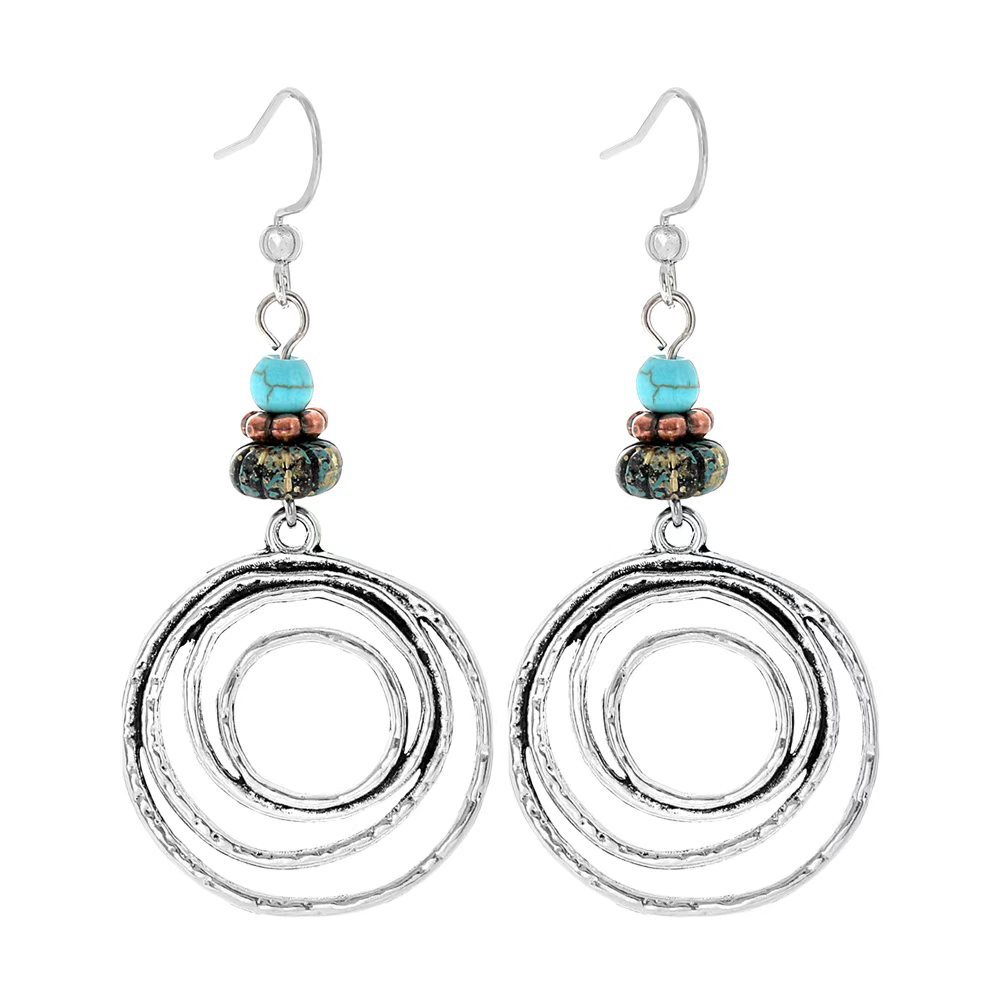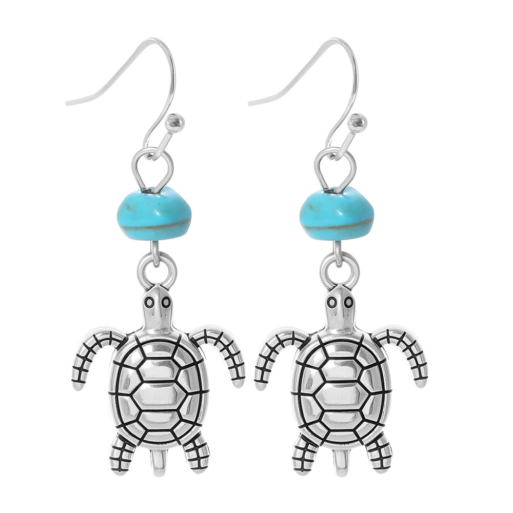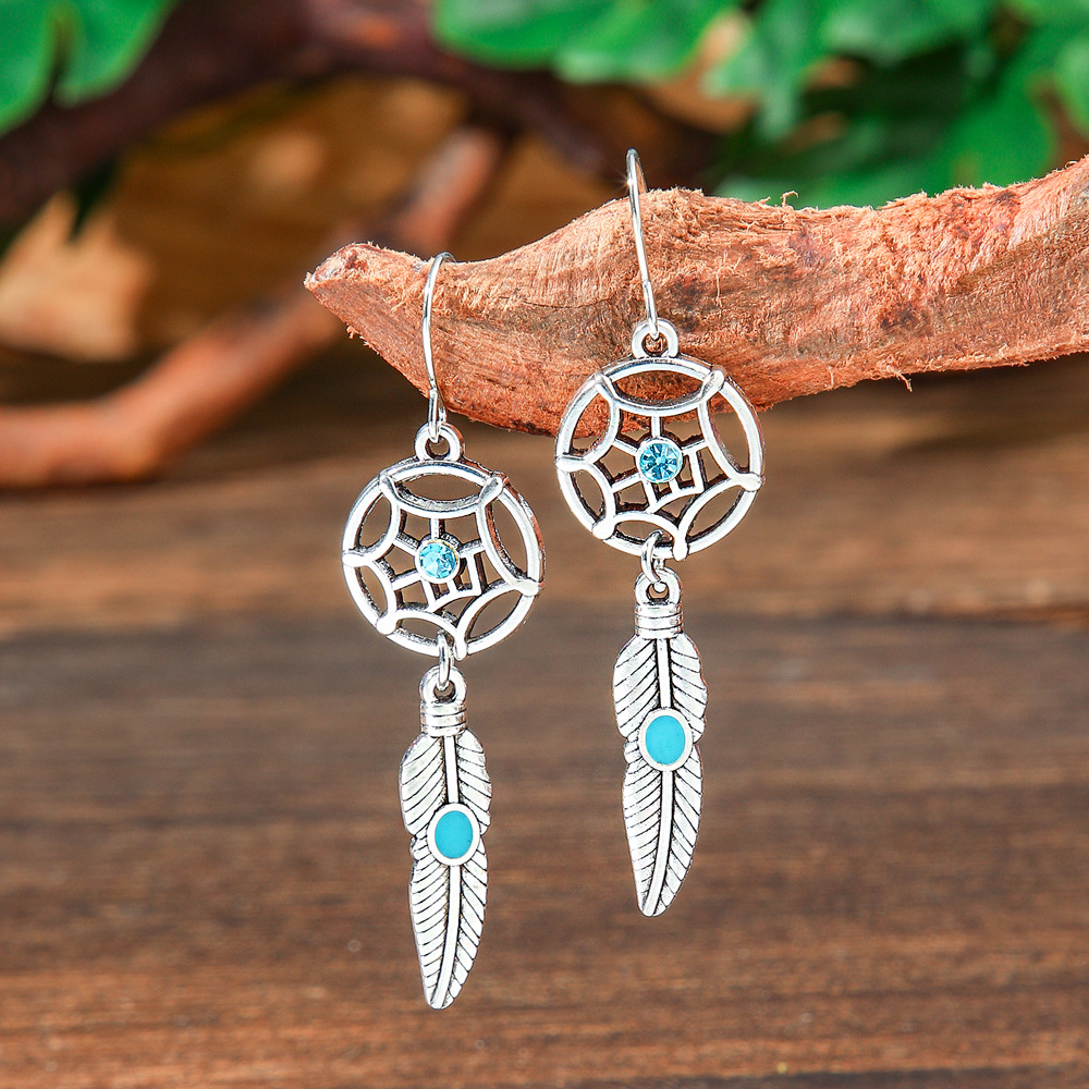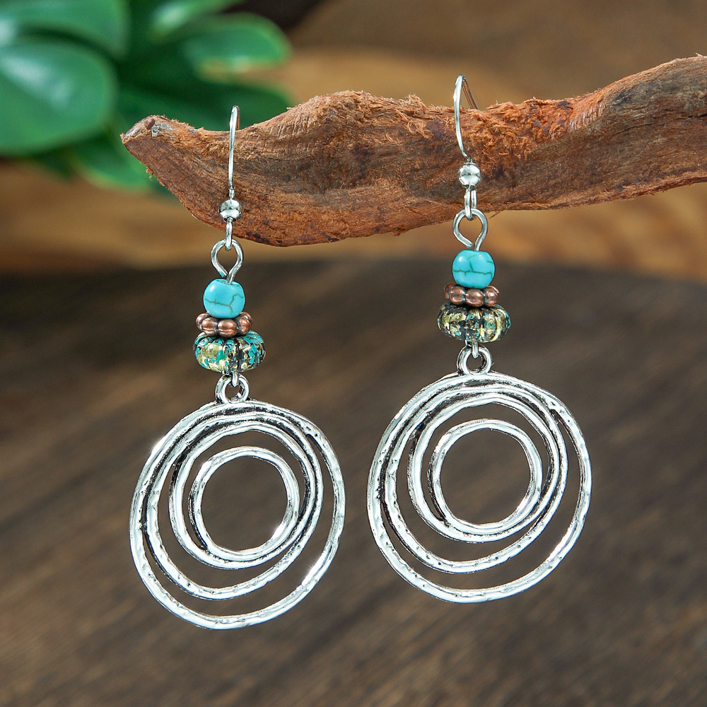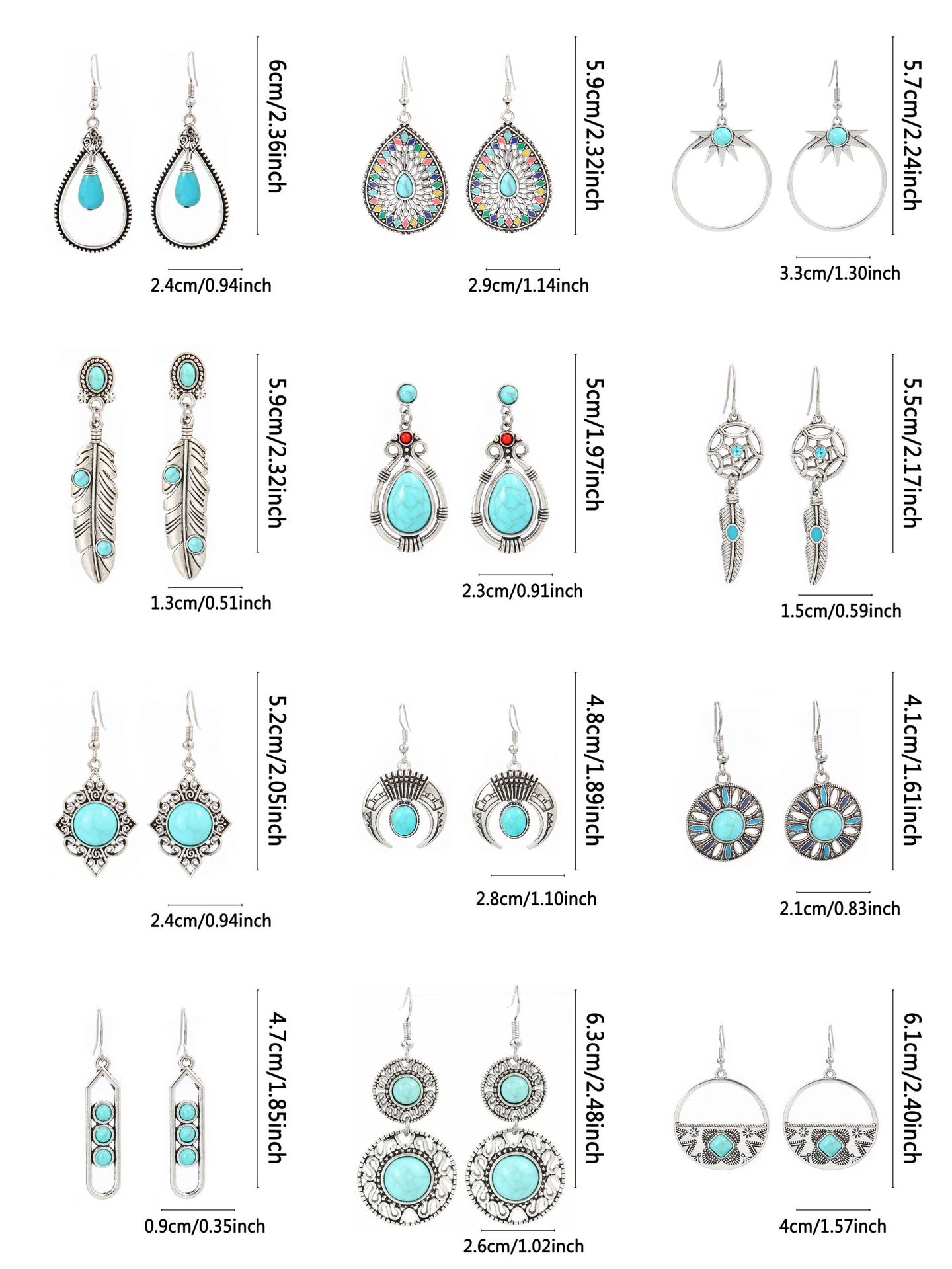 Европейские и американские трансграничные серьги в этническом стиле, серебряные геометрические металлические бирюзовые инкрустированные серьги с кисточками, ювелирные изделия из ушей Amazon