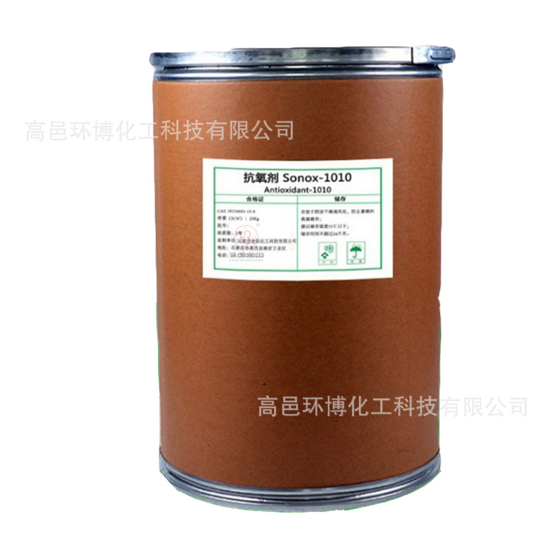 抗氧剂1010白色至微黄色粉末,闪点为297℃,熔点110-125℃,比重1.15g/m3,灰分小于0.1%,挥发度小于0.5%。溶解度(g/100g):水<0.01,丙酮47,乙醇1.5,乙酸乙酯47,正己烷0.3,甲0.9,二氯乙烷63,氯仿71,甲苯60。