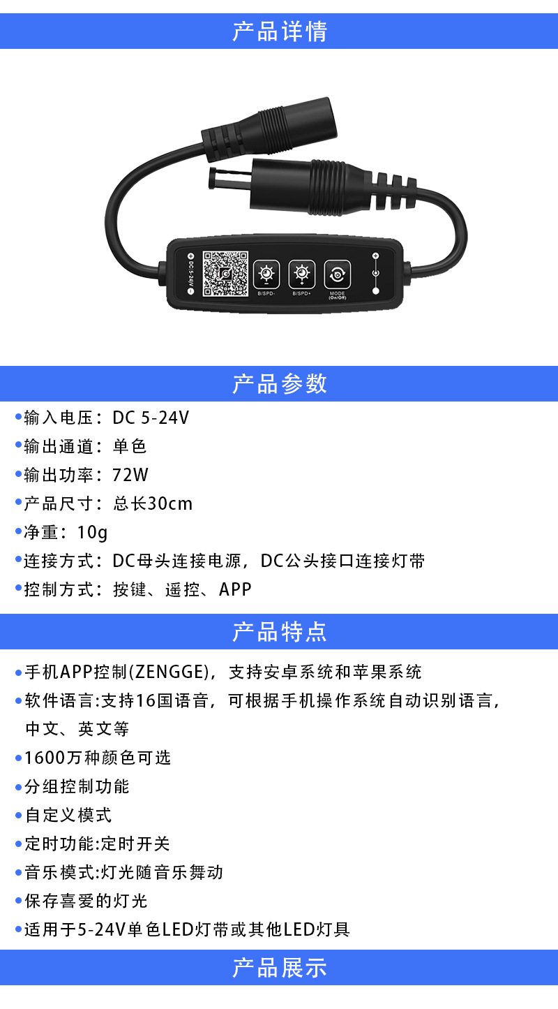 Монохромный контроллер; Пульт дистанционного управления 2.4G; Распределитель DC