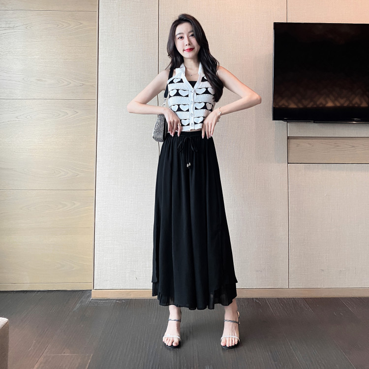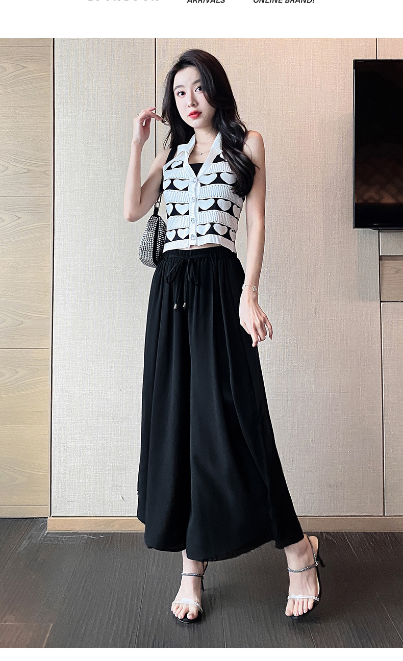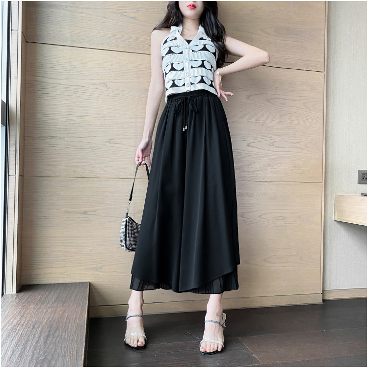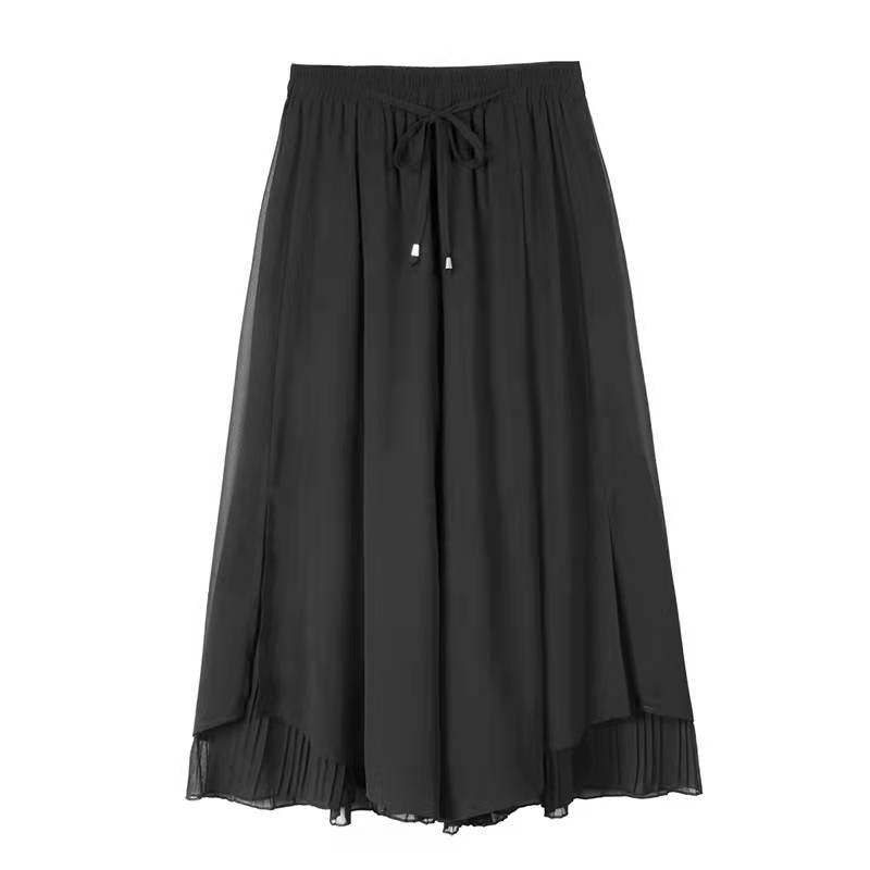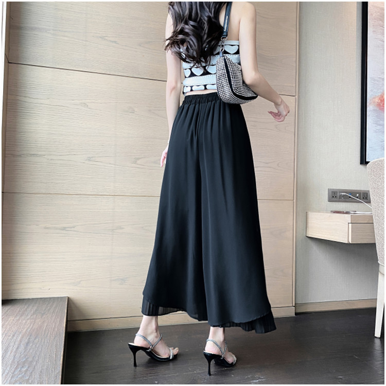 Шифоновые брюки с широкими штанинами, женские летние тонкие брюки с высокой талией и драпировкой, удобные прямые брюки свободного кроя, черные укороченные брюки 8355