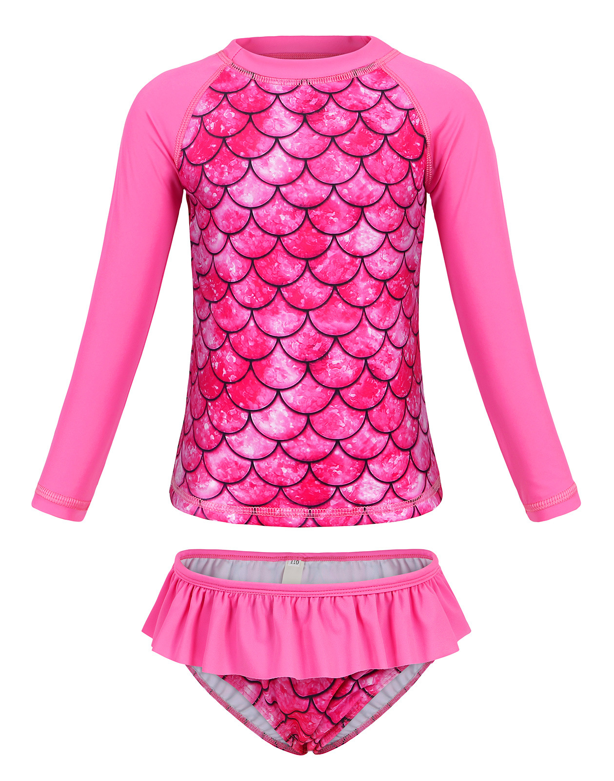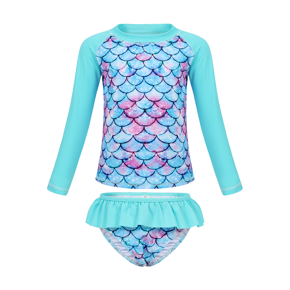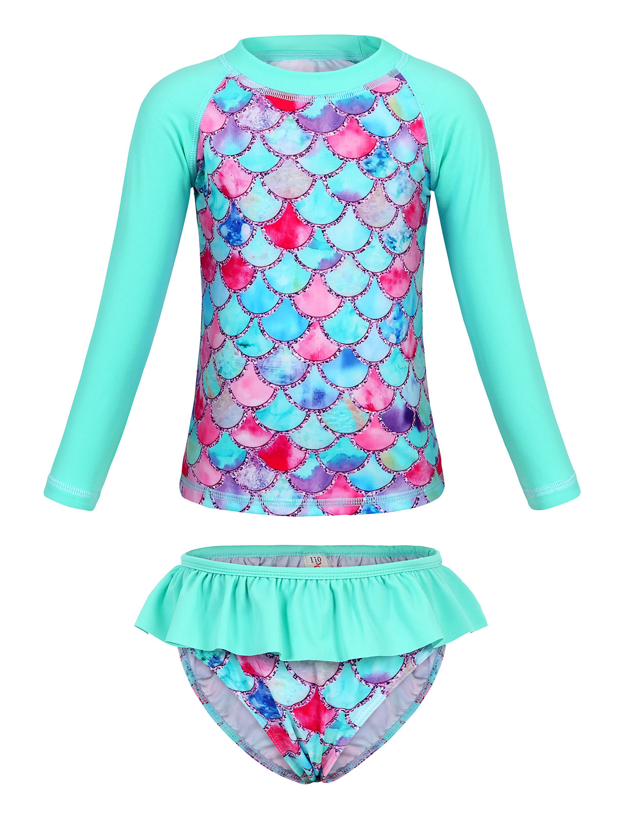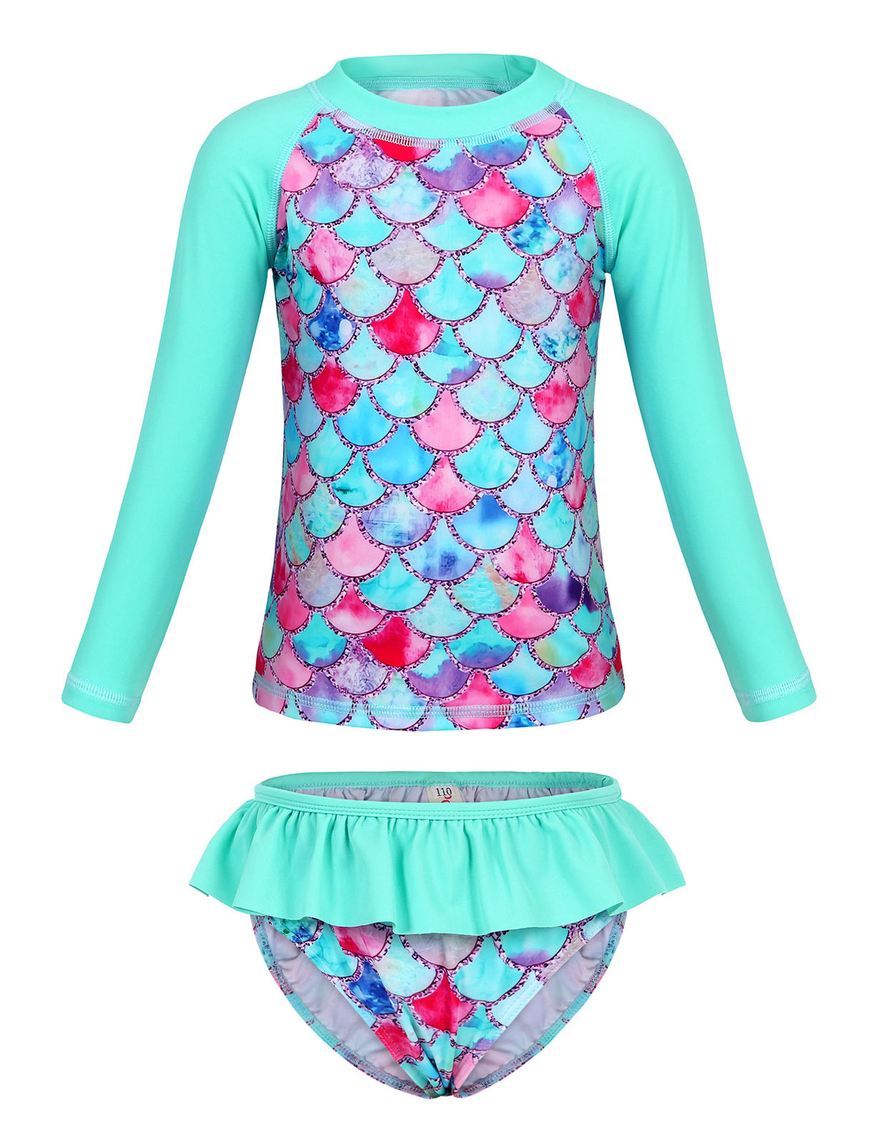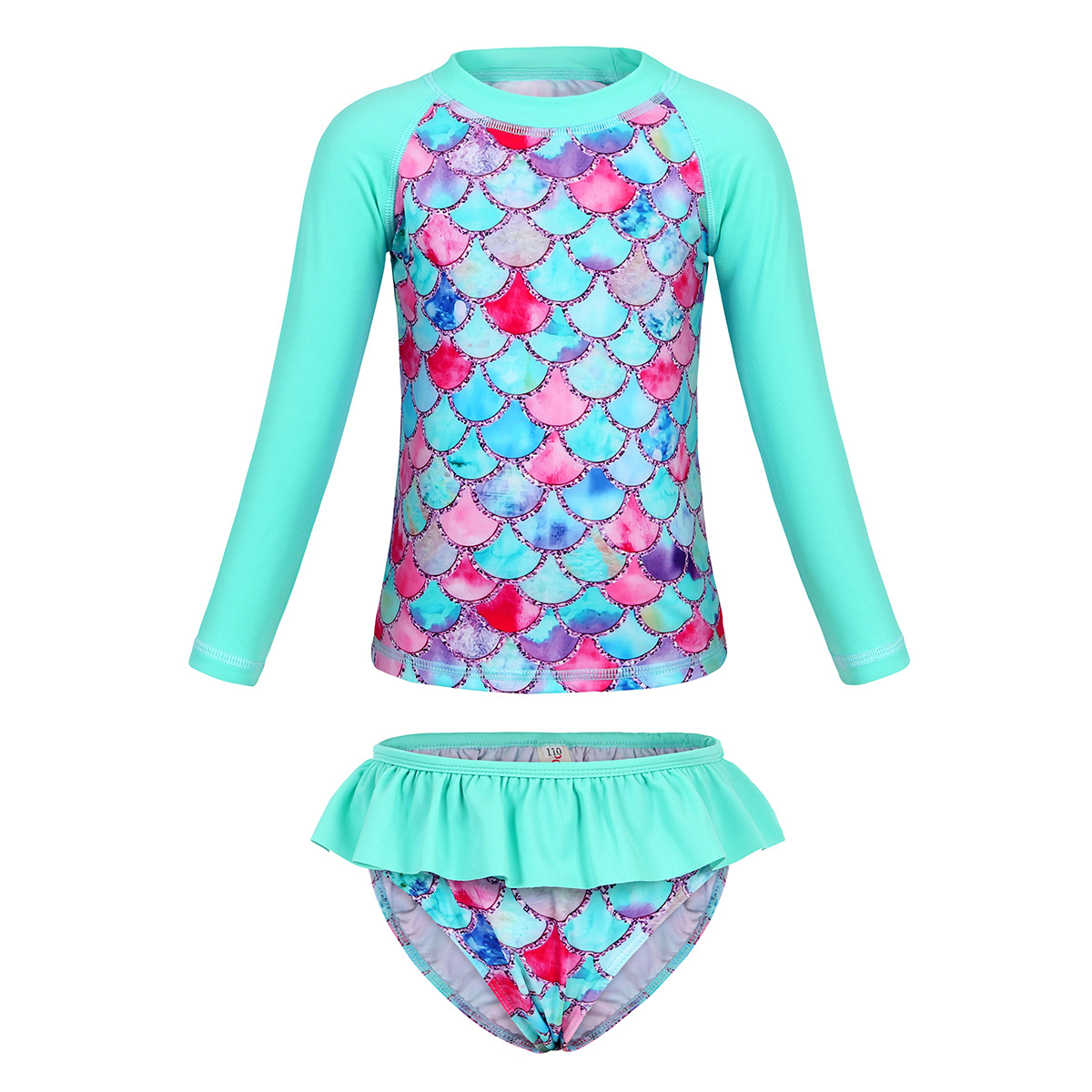 Европейский и американский детский купальник-бикини из двух частей с длинными рукавами, новый стиль, для девочек, с 3D-принтом «русалка», солнцезащитный