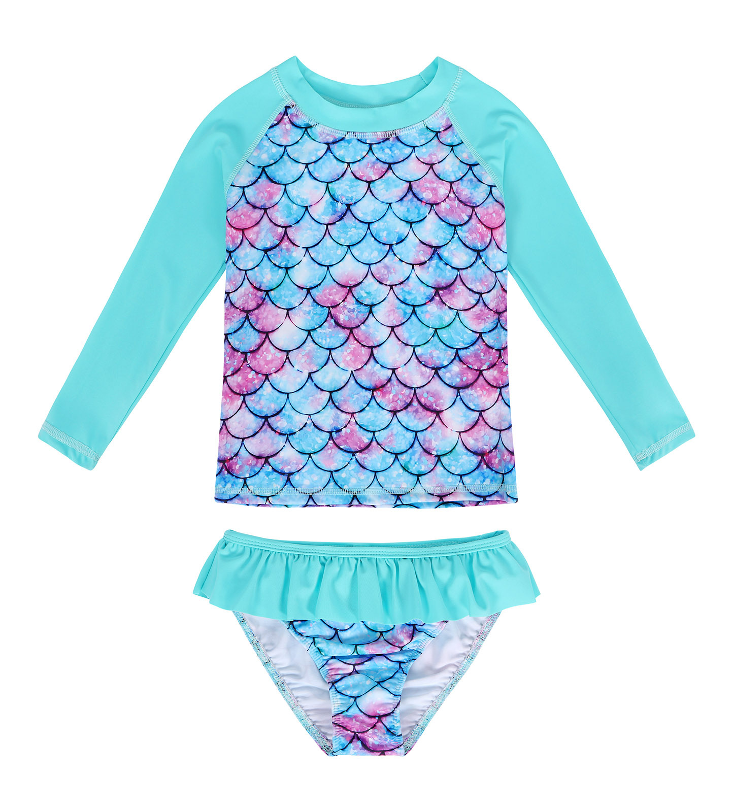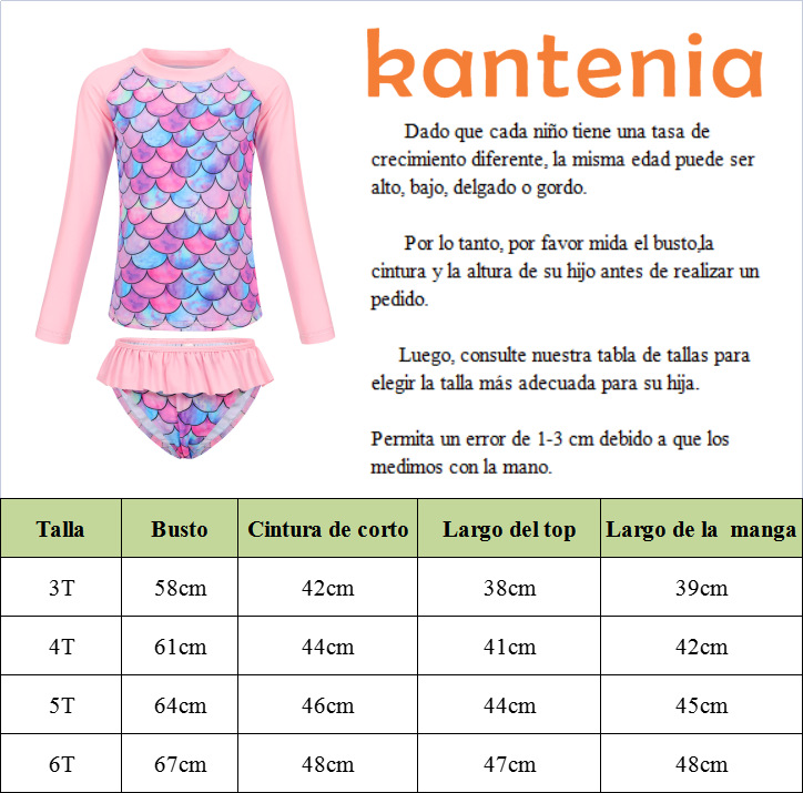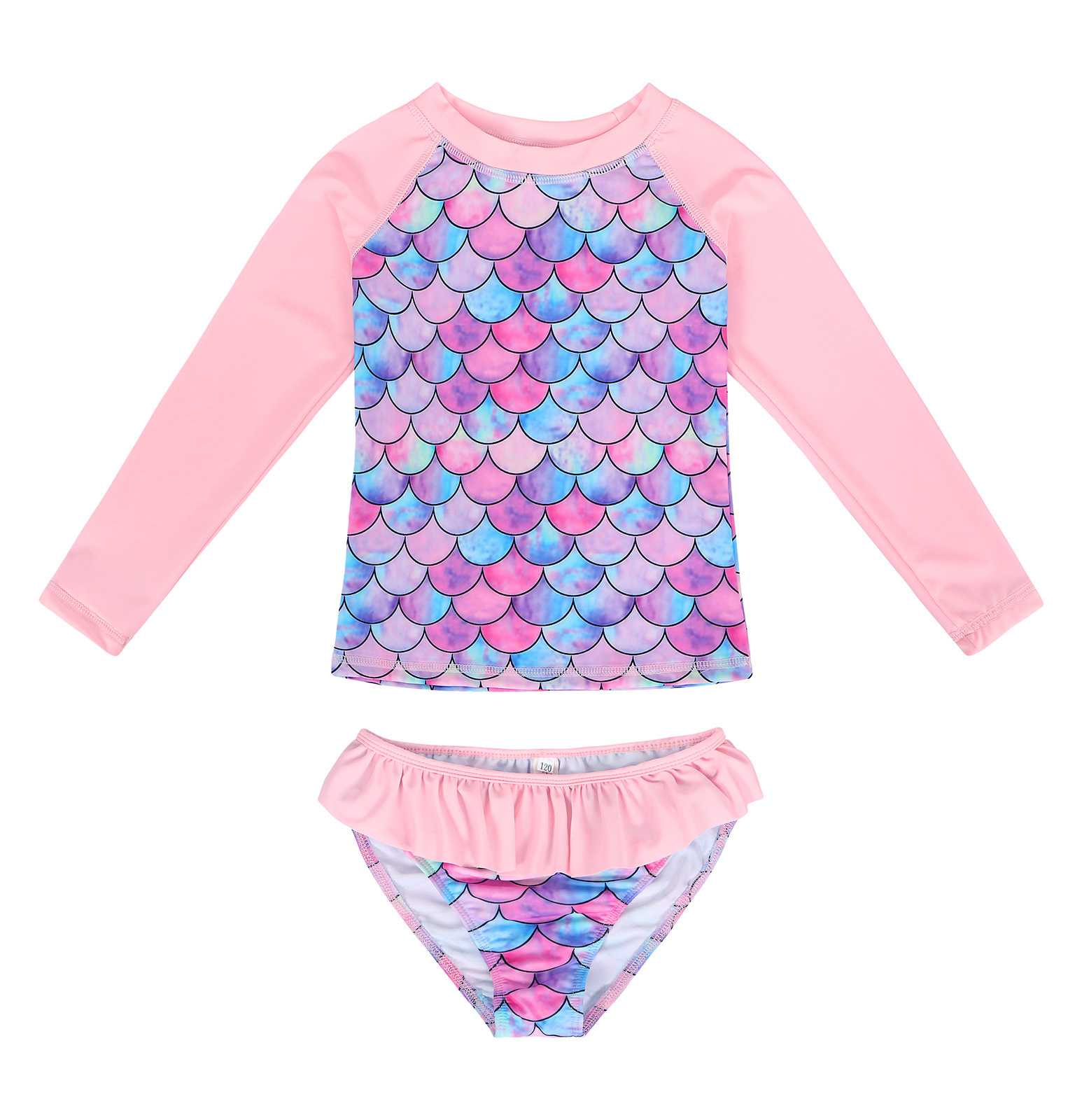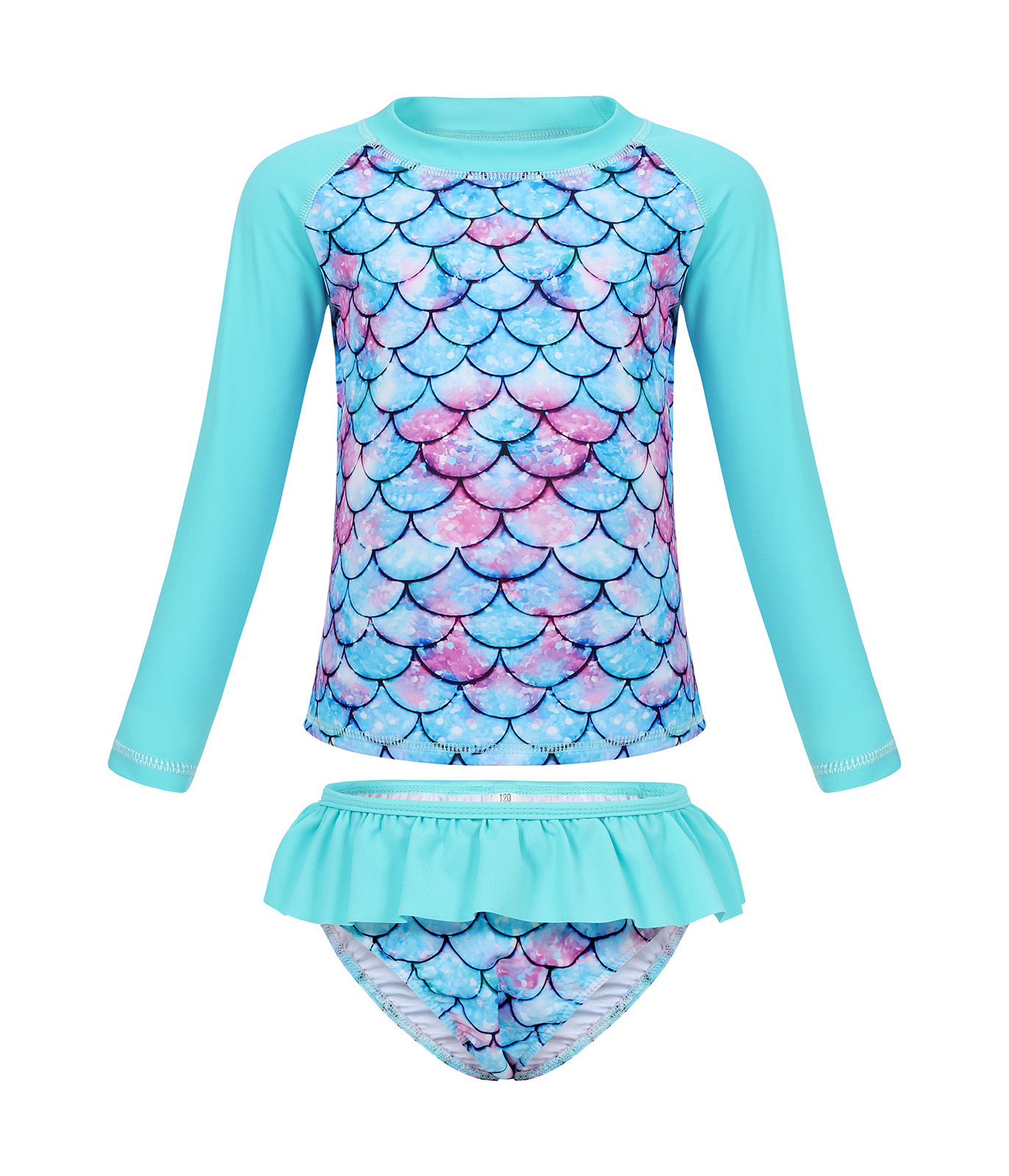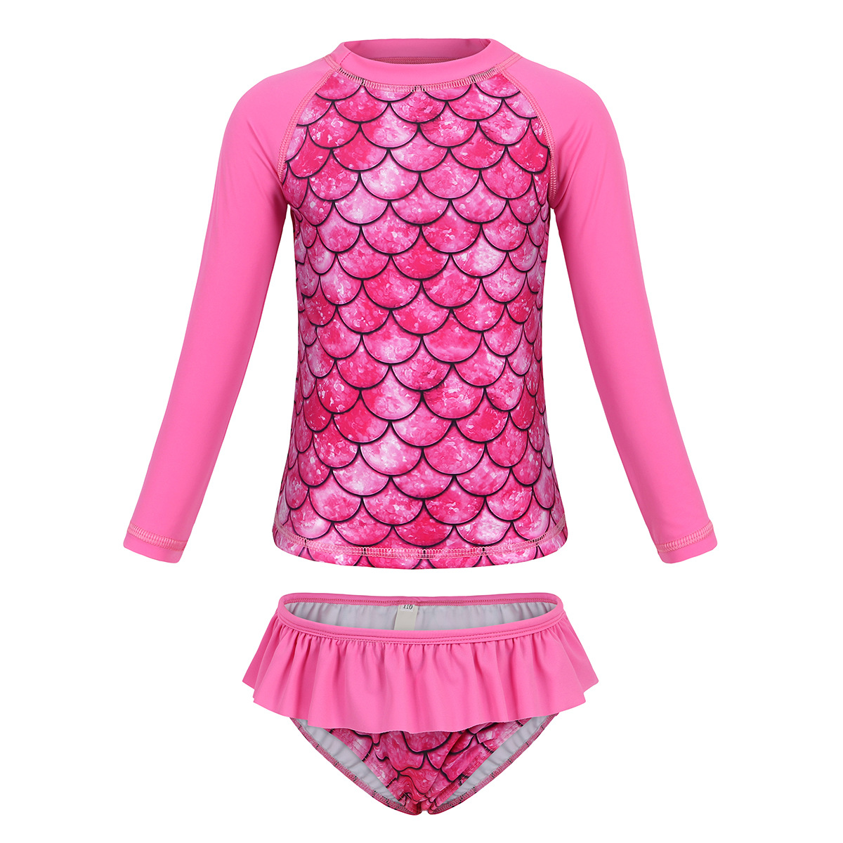 Европейский и американский детский купальник-бикини из двух частей с длинными рукавами, новый стиль, для девочек, с 3D-принтом «русалка», солнцезащитный