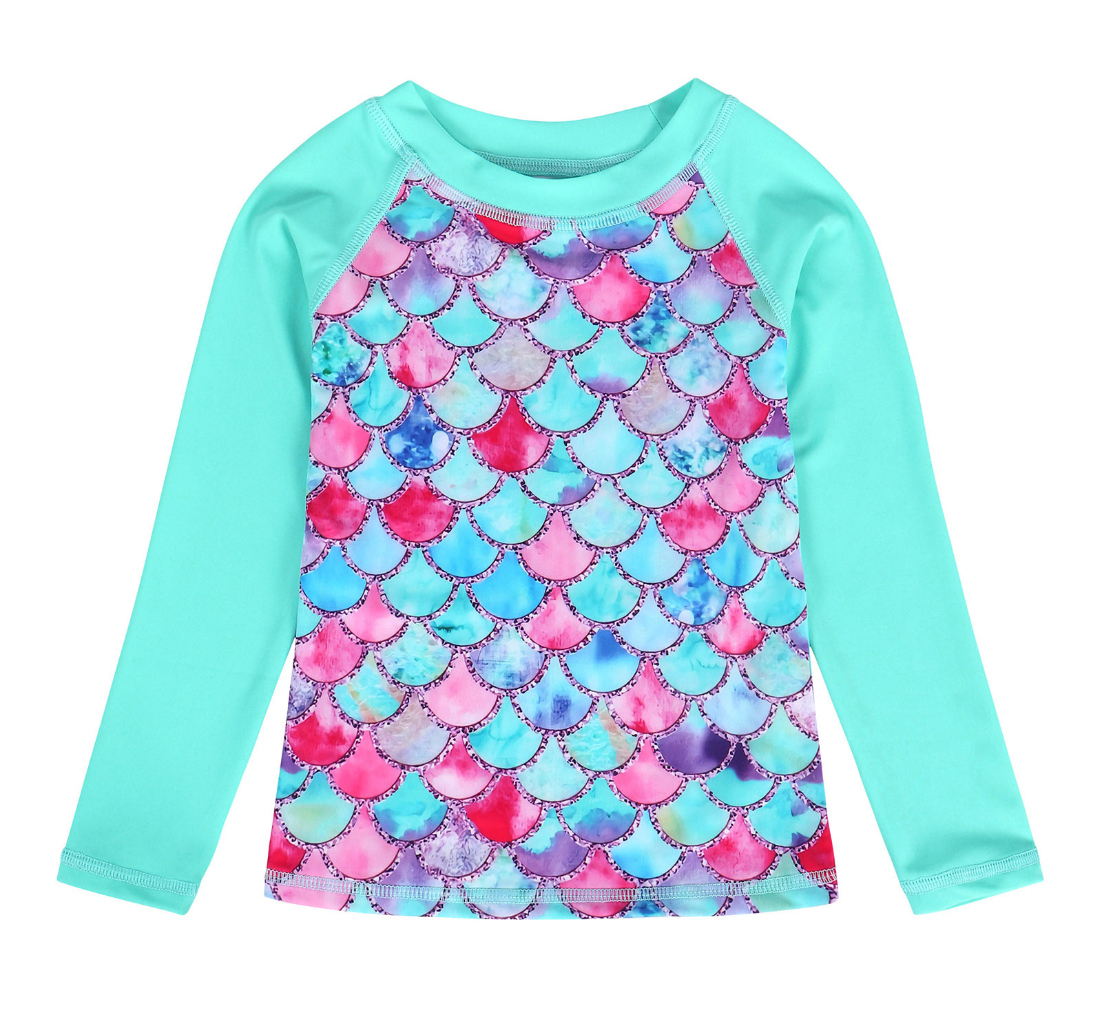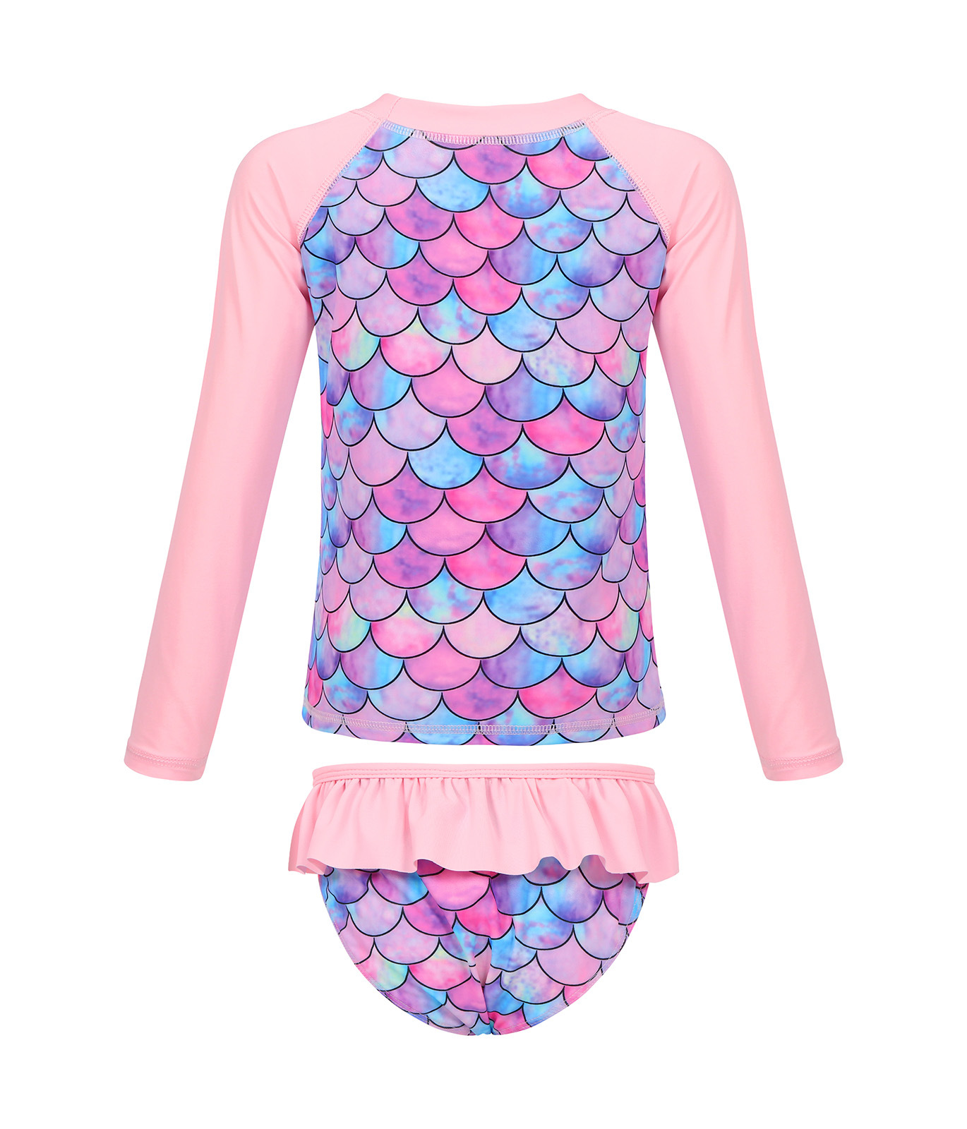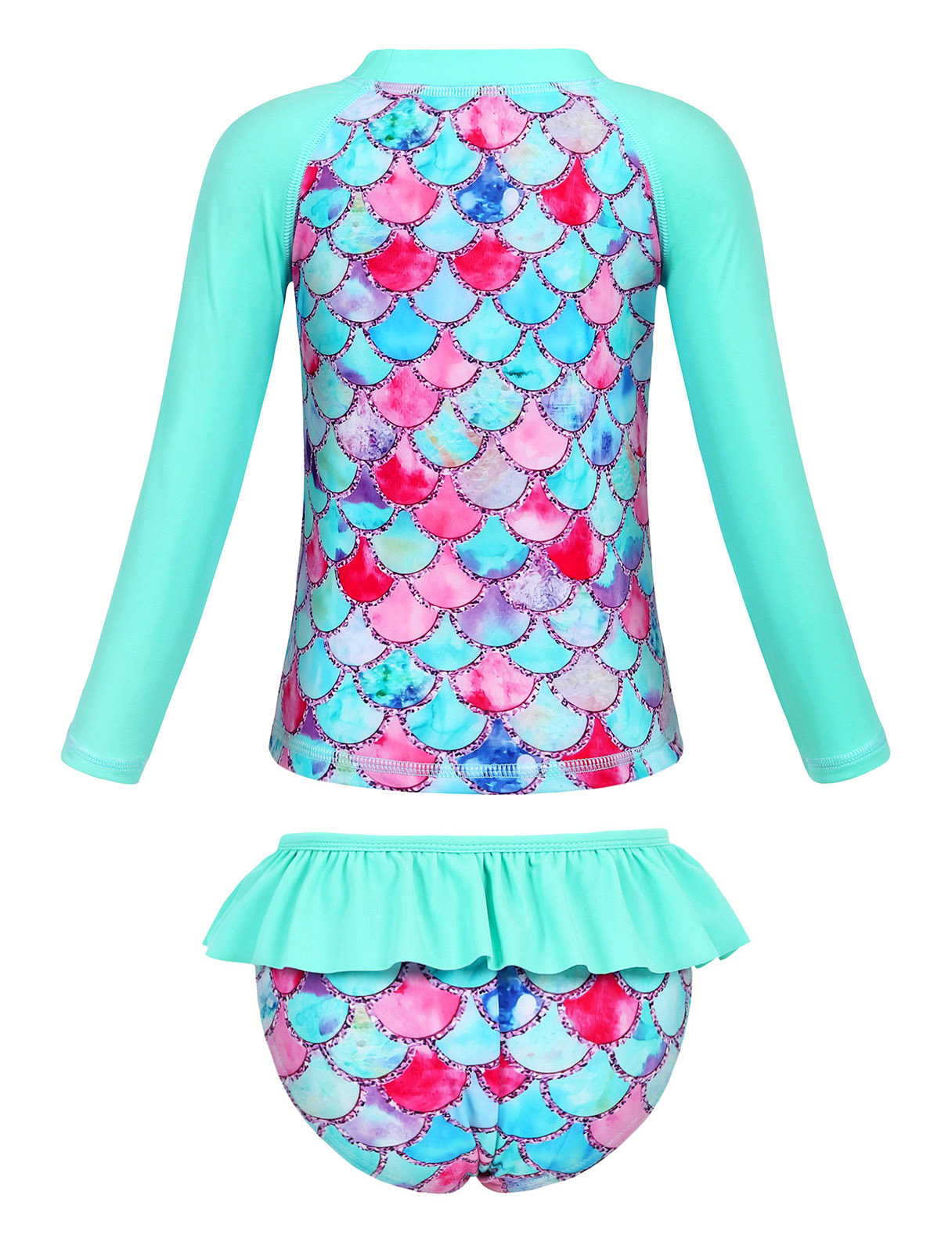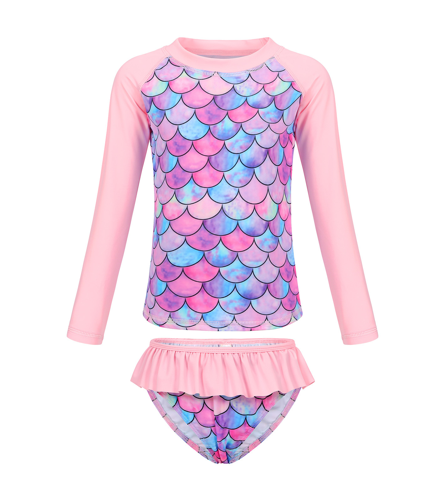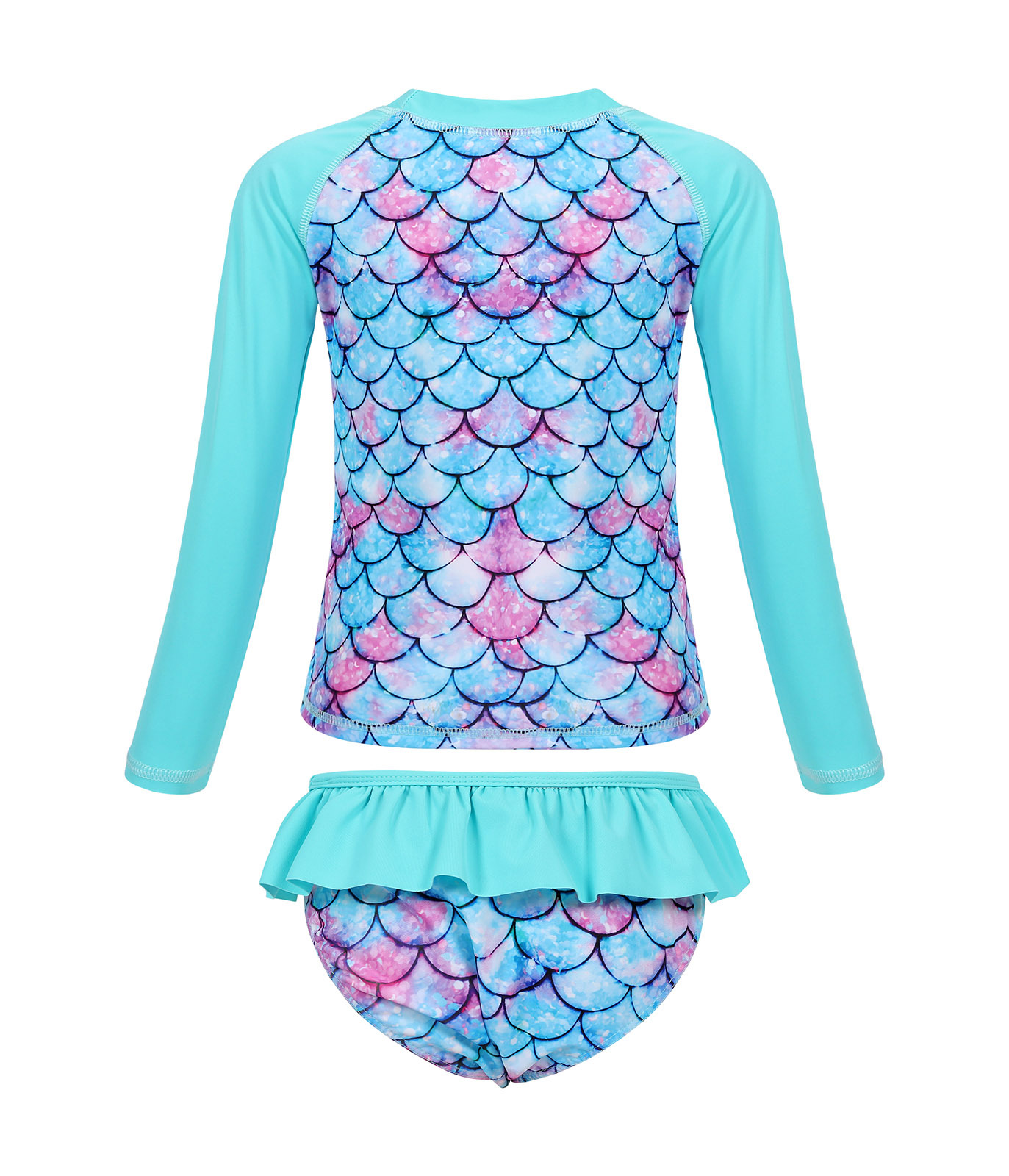 Европейский и американский детский купальник-бикини из двух частей с длинными рукавами, новый стиль, для девочек, с 3D-принтом «русалка», солнцезащитный