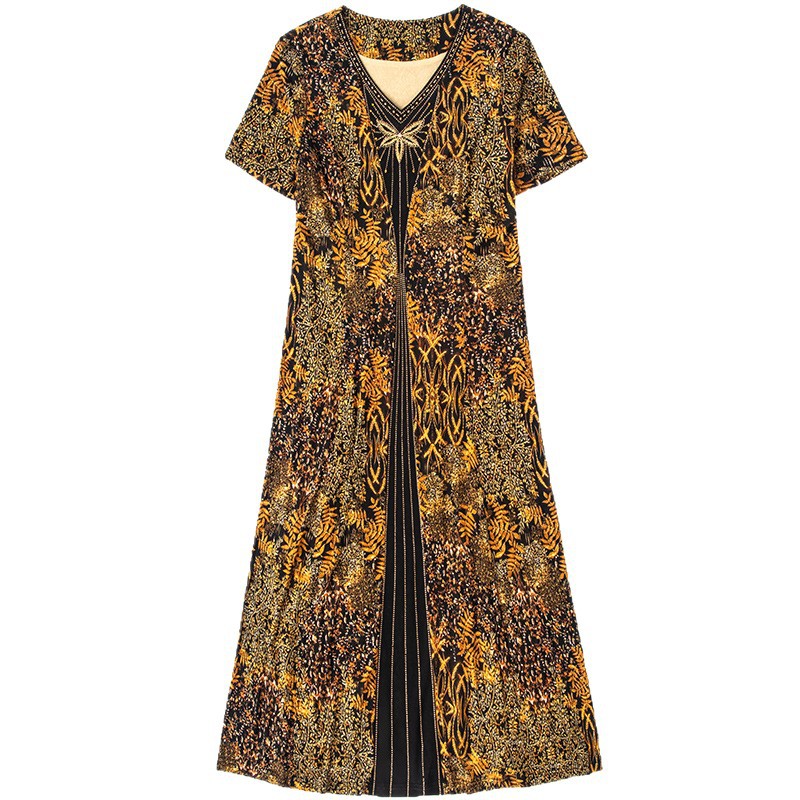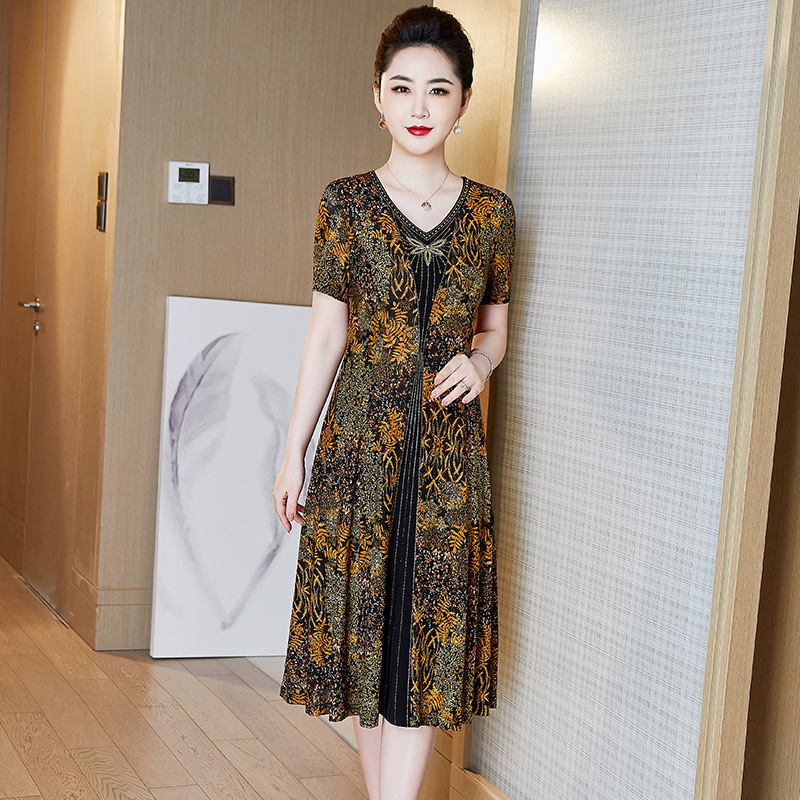 Молодая мама летнее цветочные платья благородный средний и пожилой шифоновая юбка с короткими рукавами темперамент женщина среднего возраста поставляет Шэньчжэнь